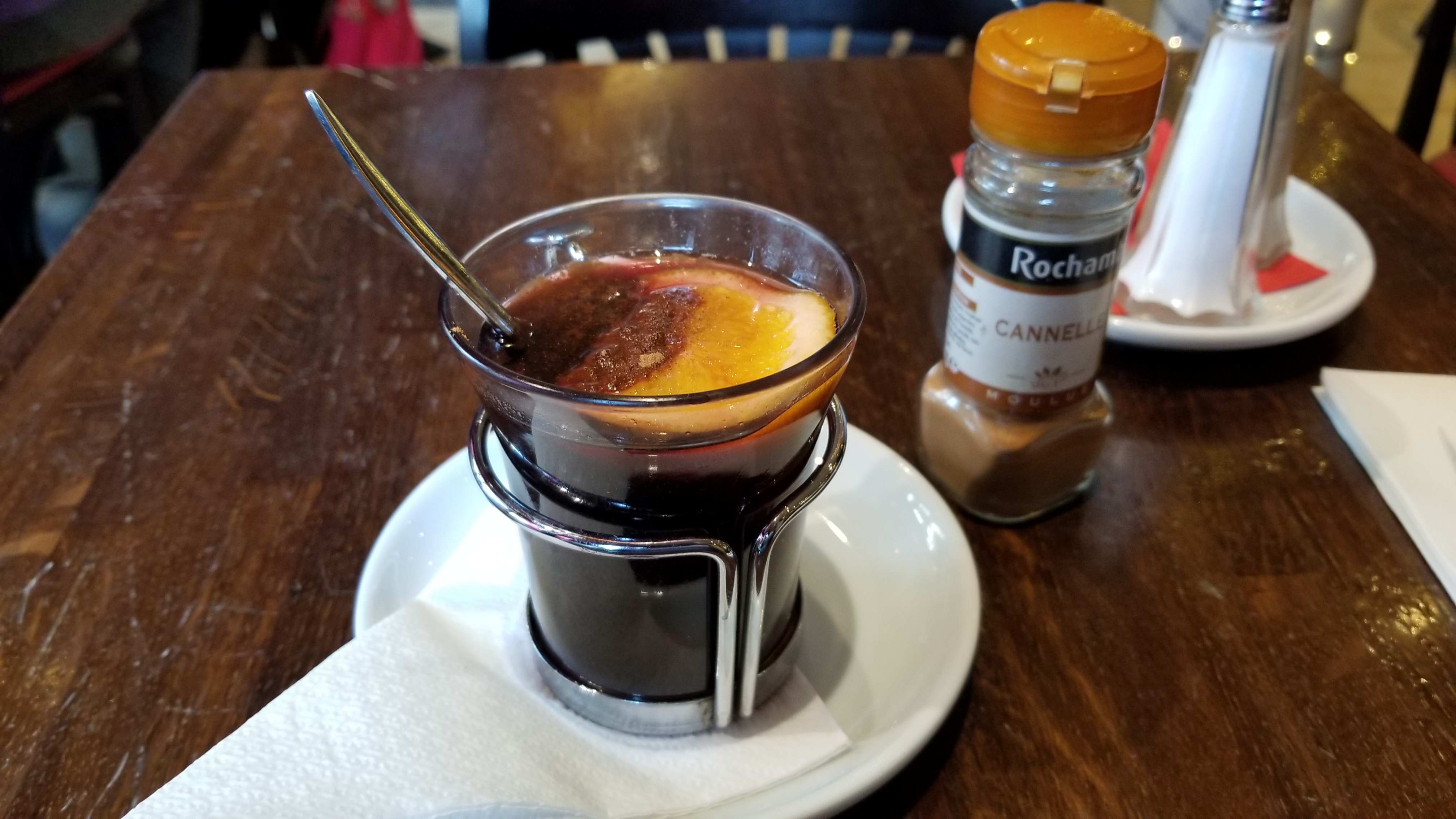 J'ai commandé un Croque Monsieur et un vin chaud. C'était un repas simple qui ne nécessitait pas grand-chose à préparer. Le sandwich était bon et le vin s'améliorait vers le fond du verre. Le service était sympathique et hors des sentiers battus. Ça vaut le coup d'essayer au moins une fois