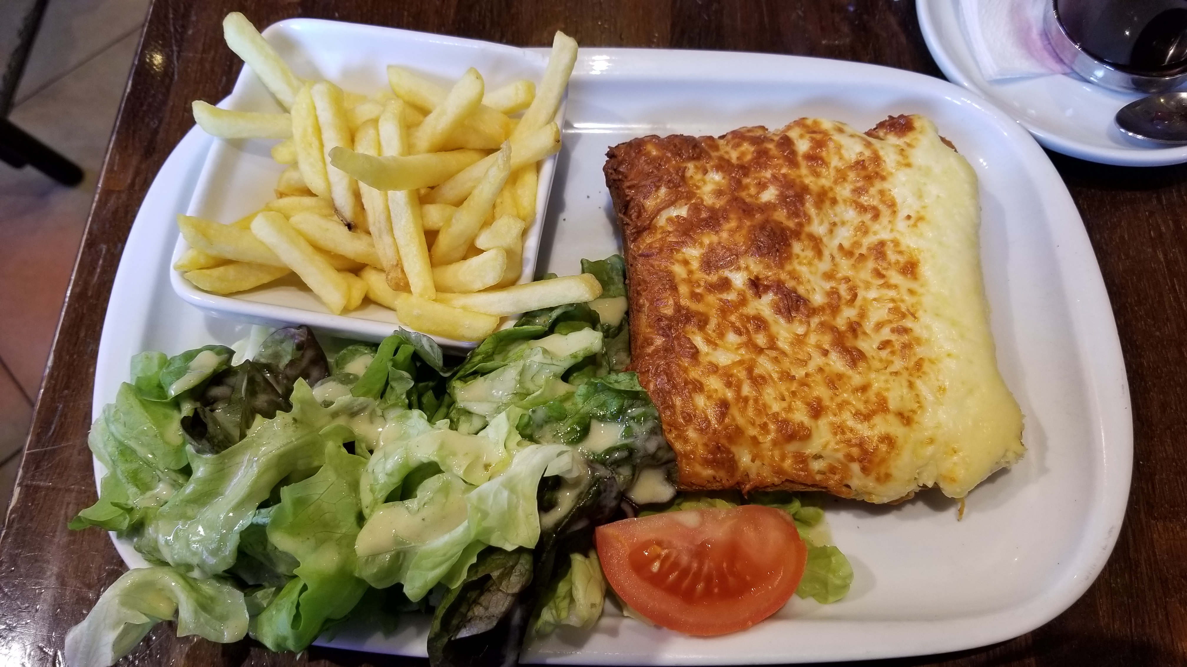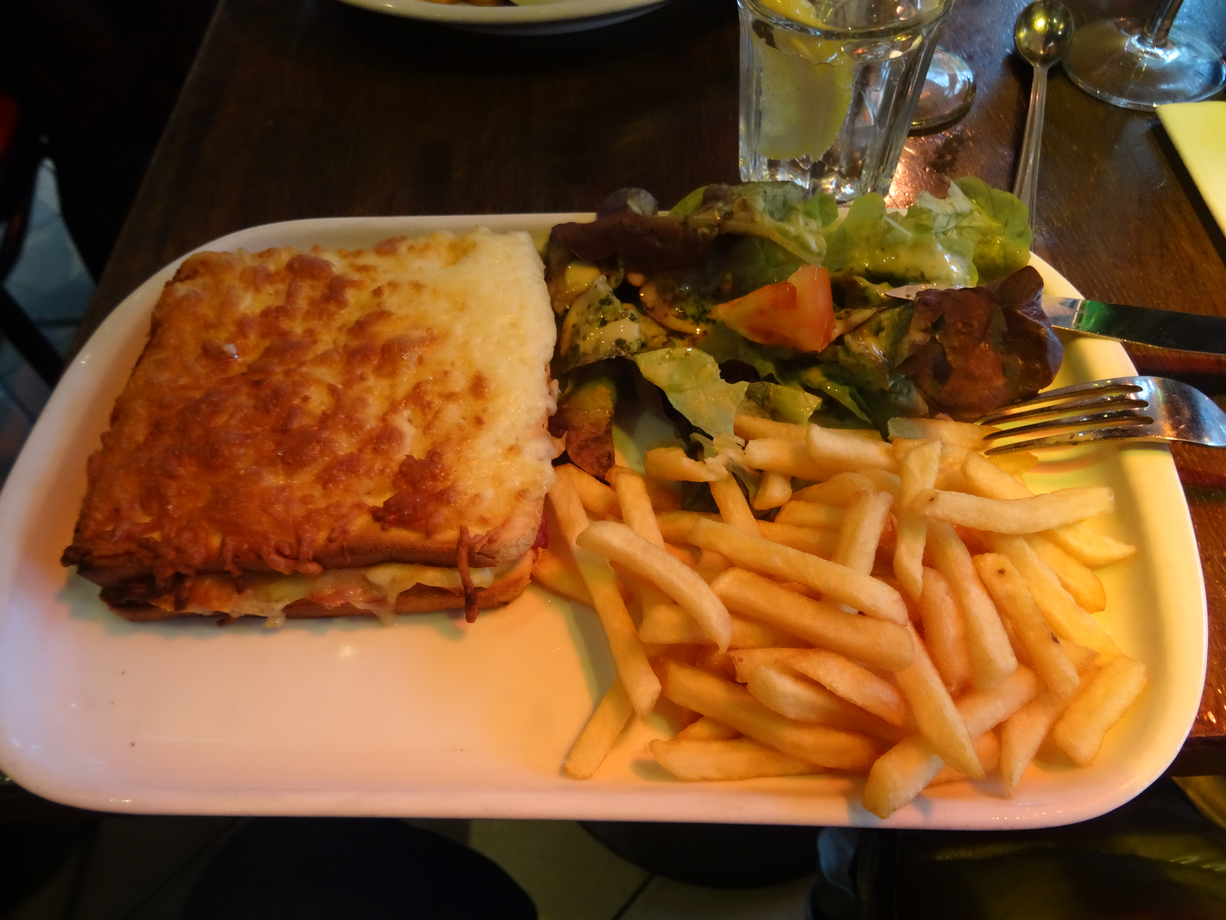 La nourriture n’etait Pas fraîche : tomates sans goût et incipides, pain du croque monsieur grillé et de mauvaise qualité, frites trempées de l’huile et qui à mon avis datait de plusieurs jours, vin d’une qualité médiocre, pas mieux qu’une bouteille de villageoise à l’épicerie. En résumé : je ne comprends pas que de tels établissements puissent encore servir dans notre si belle vie qu’est Paris.