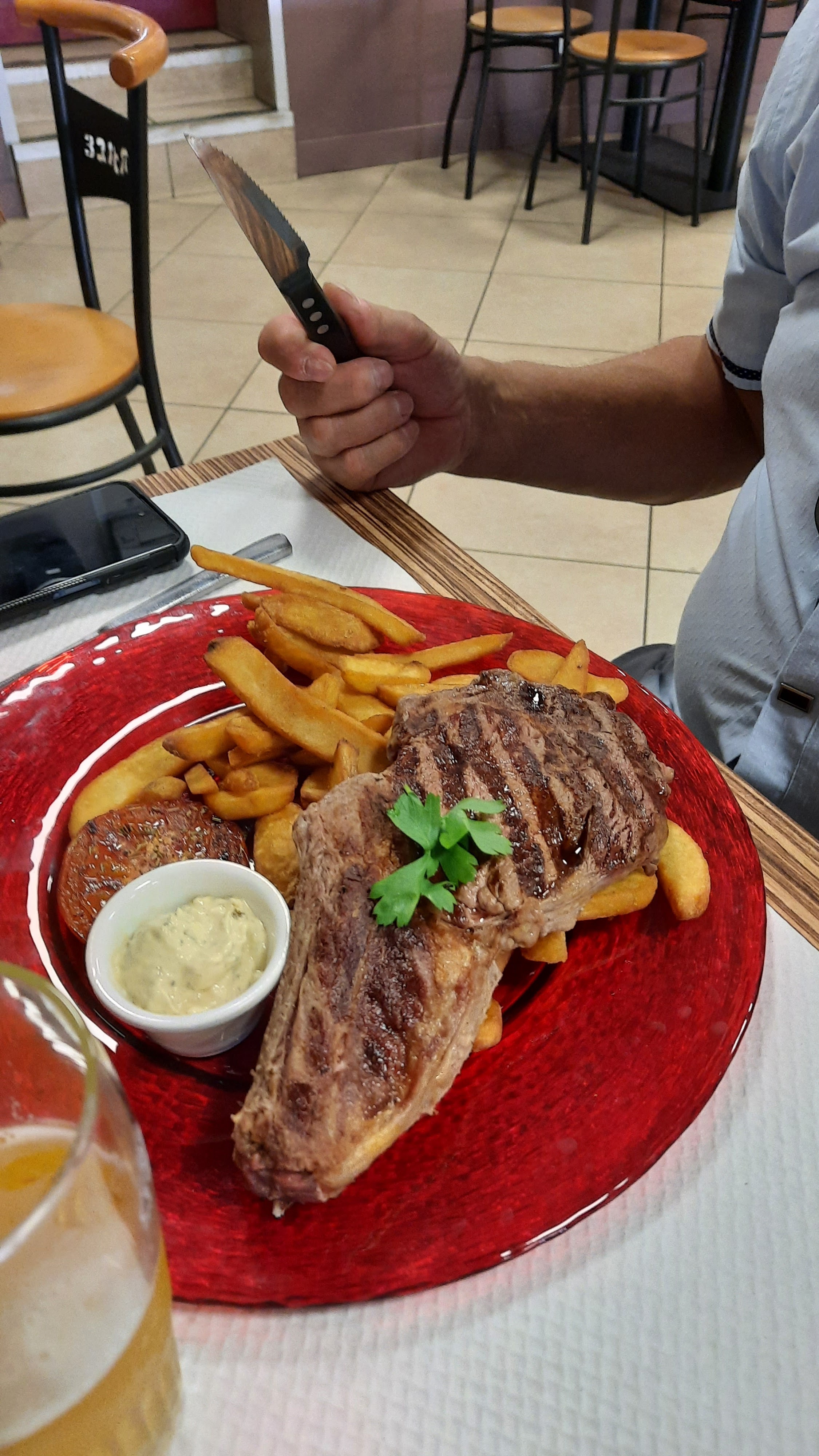 Service agréable et personnel souriant. Repas rapide et menu local (taureau). Prix très correct.