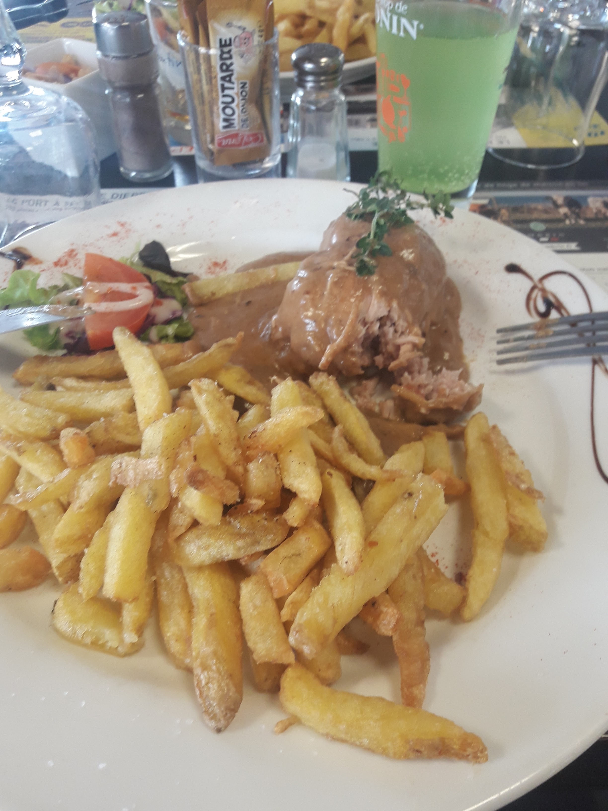 Cuisine simple mais super bonne. La viande fond dans la bouche et les frites sont maison. Le dessert est également maison et si vous prenez 1 fromage blanc c est de la ferme et pas celle en pot que l on achète au supermarché