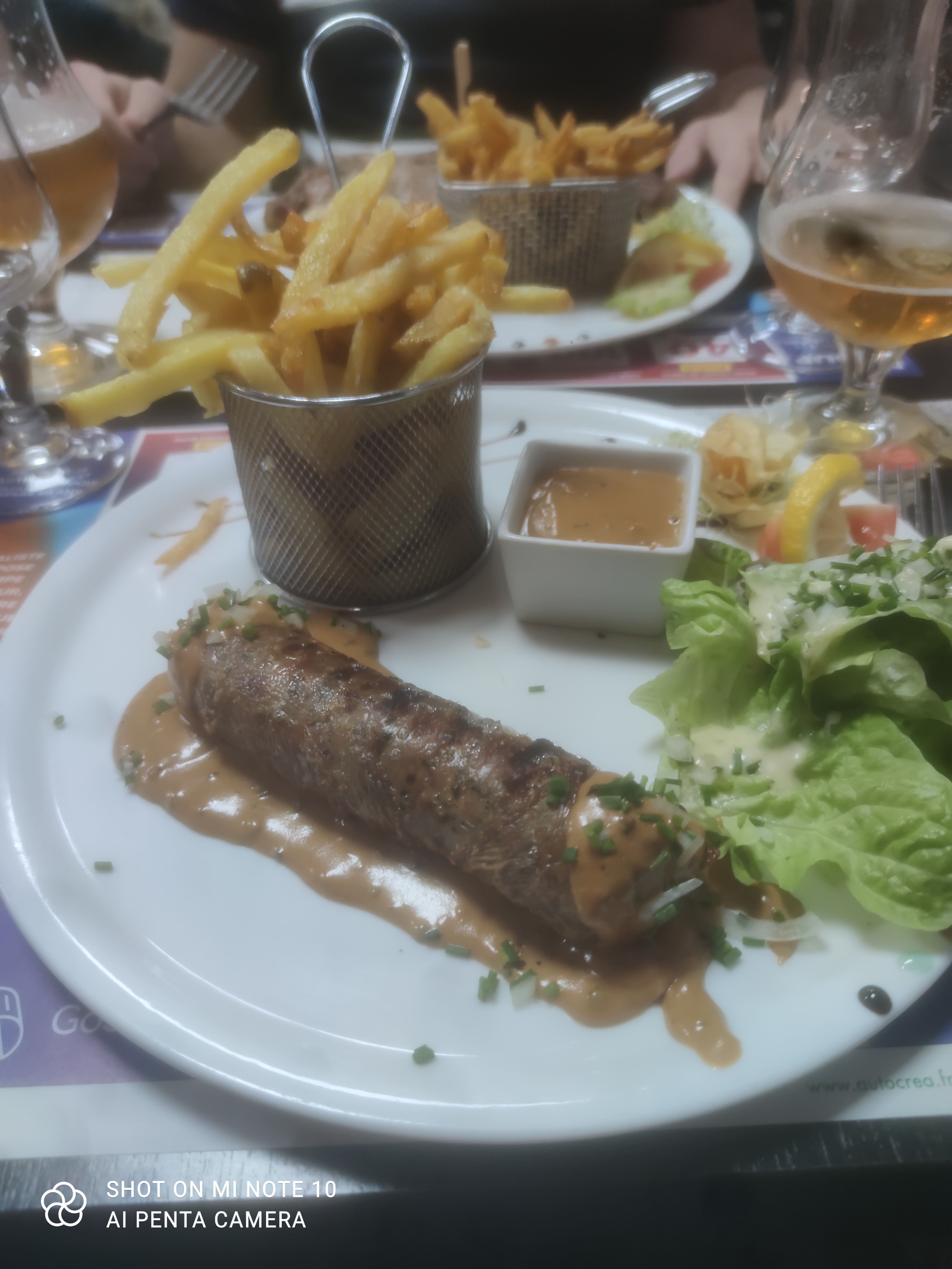 Accueil et service excellent et repas au top viande et andouillette très bonne un délice très contente d'être venue avec mon chéri je reviendrais avec plaisir merci aux personnes qui nous ont servis