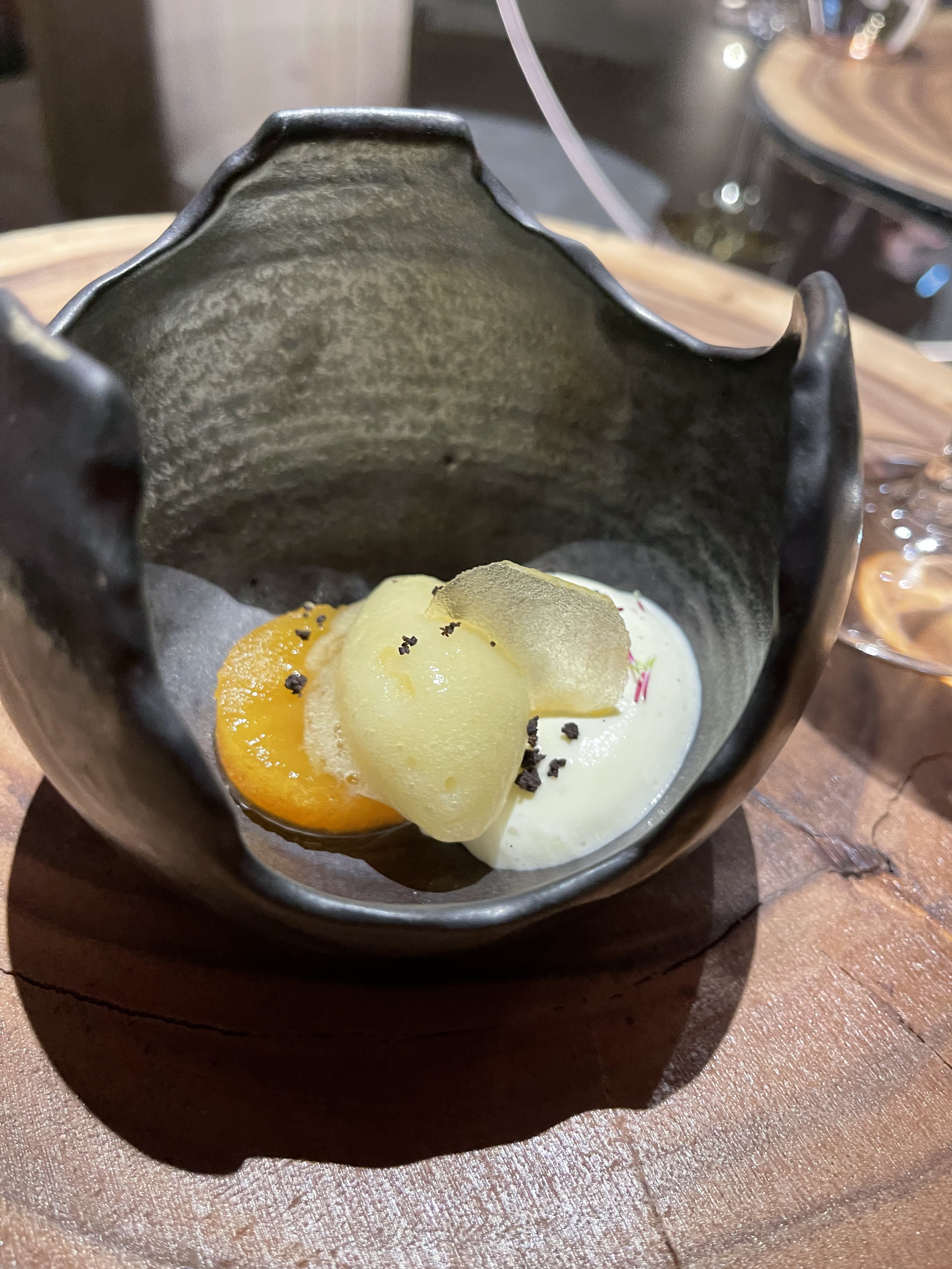 C'était notre quatrième visite au restaurant Le Chabichou et c'était probablement la dernière depuis qu'ils sont passés de la cuisine conventionnelle à la cuisine fusion que nous aimions autrefois. Quel dommage de s'inscrire dans ce thème fusion !