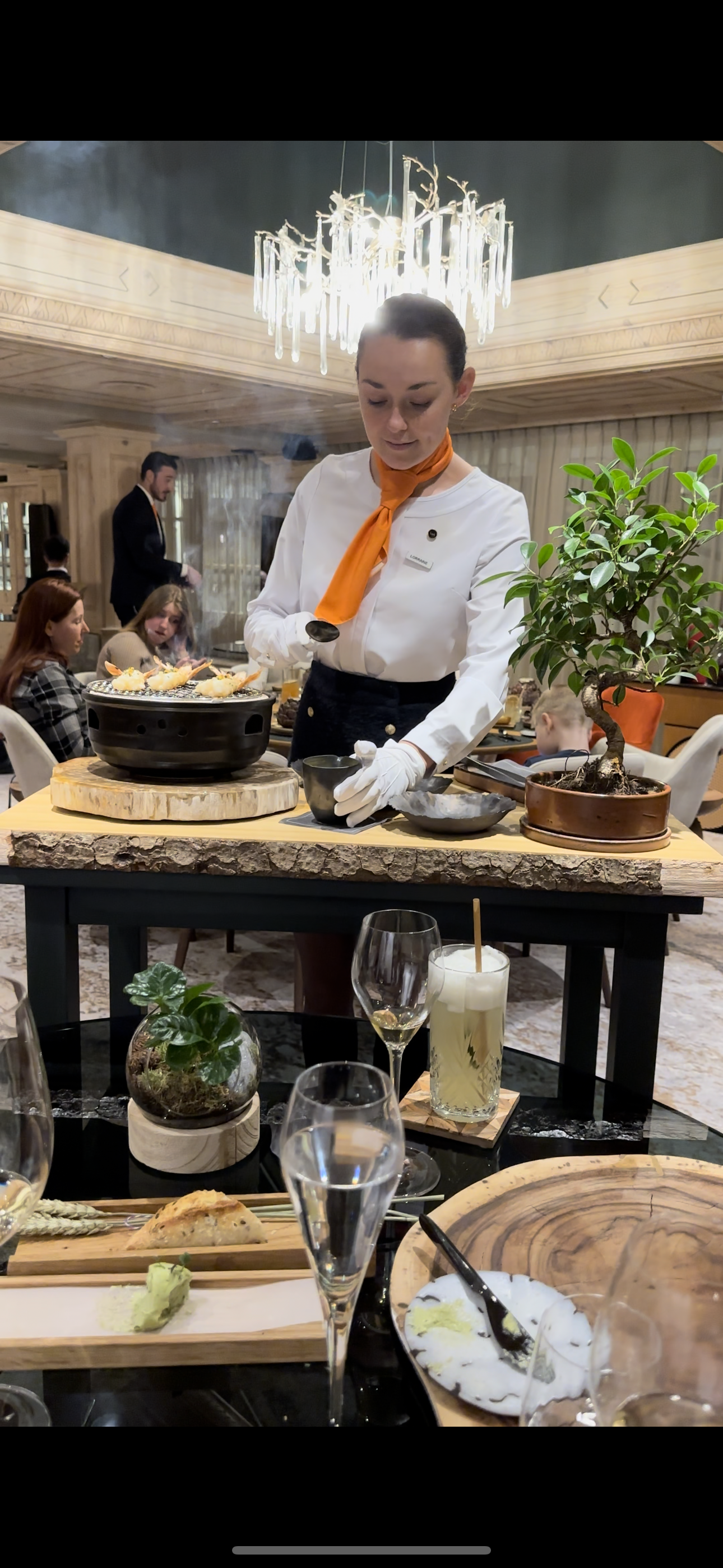 Bonne table mais accueil incompétent, prétentieux et méprisant. A fuir, il y a bien mieux à Courchevel (Airelles et Cheval Blanc notamment).