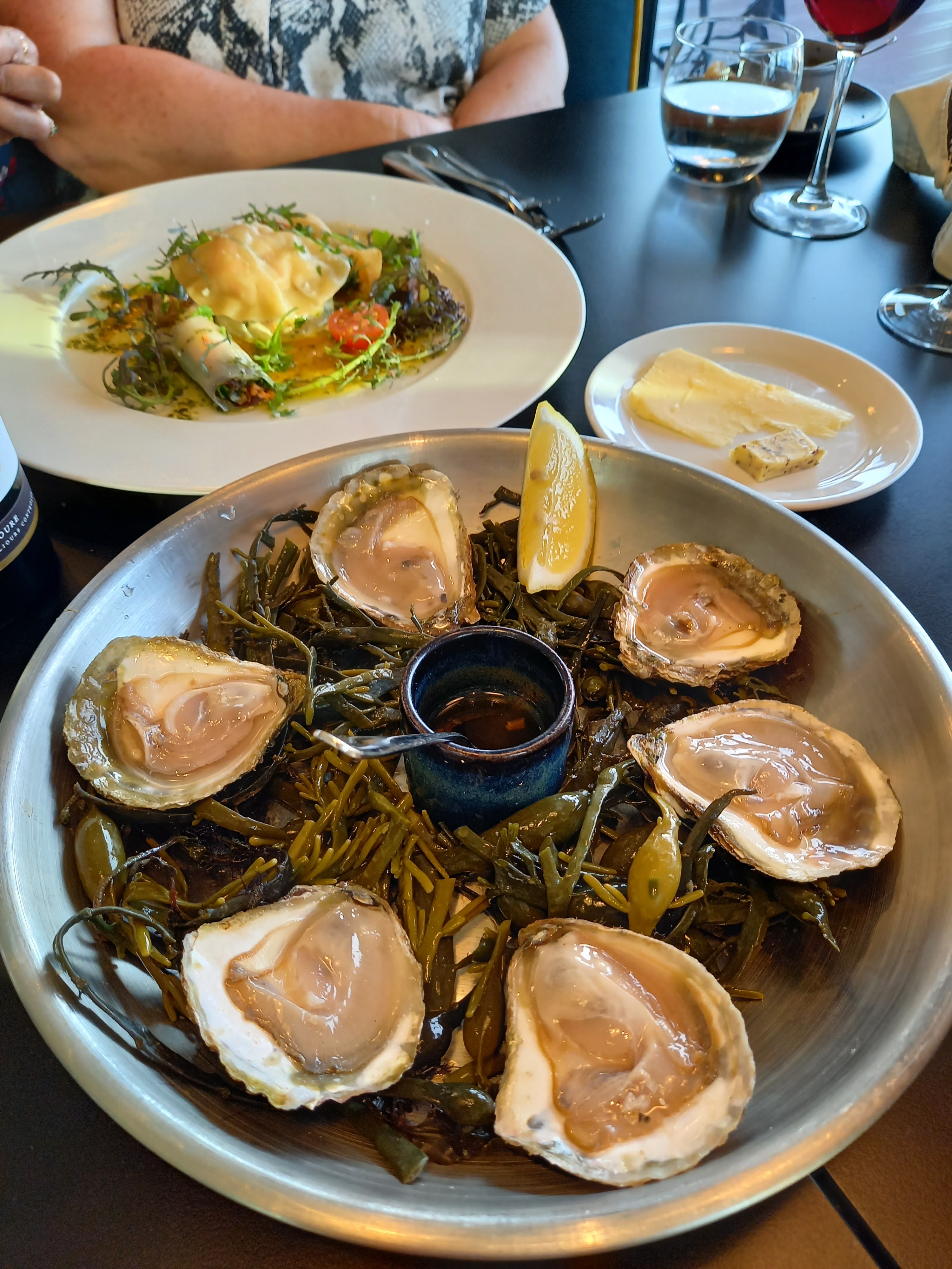 Des délices pour le palais.. Des huitres plates de Cadoret, une aile de raie parfaite à efilocher avec le dos de la fourchette. Le service est souriant et fort agréable. Et le dessert, que dire ? L'éclair au chocolat mérite d'être rebaptisé.. Quant à la pavlova, c'est une entrée vers l'enfer tant on sent le pêcher nous emporter l'âme.. On ne peut que craquer et imaginer revenir pour fondre..