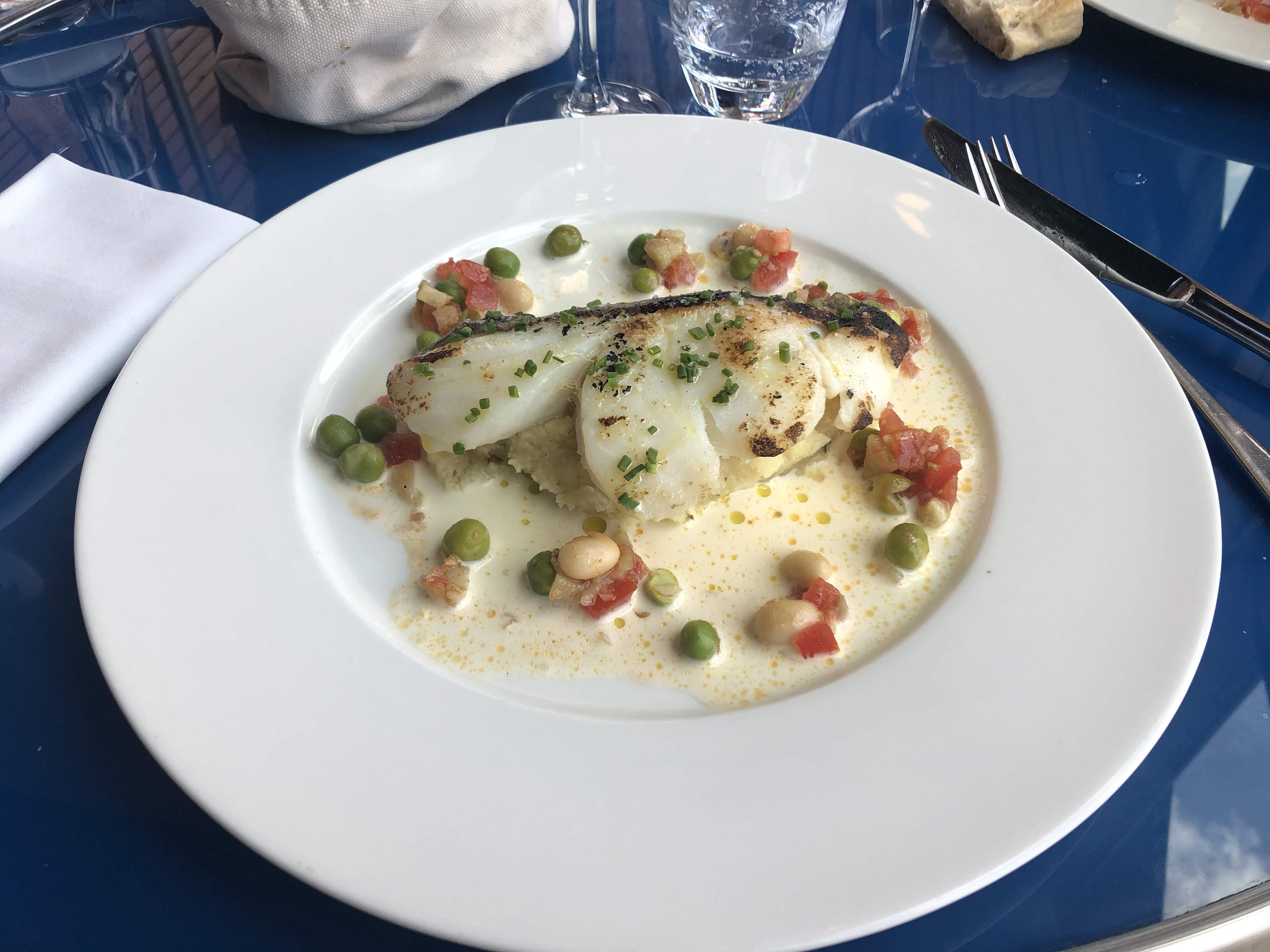 Un dos de cabillaud parfaitement cuit sur son écrasé de pommes de terre et une assiette végétarienne avec ses feuilles d'épinard croquantes ont fait notre régal...une fois de plus!