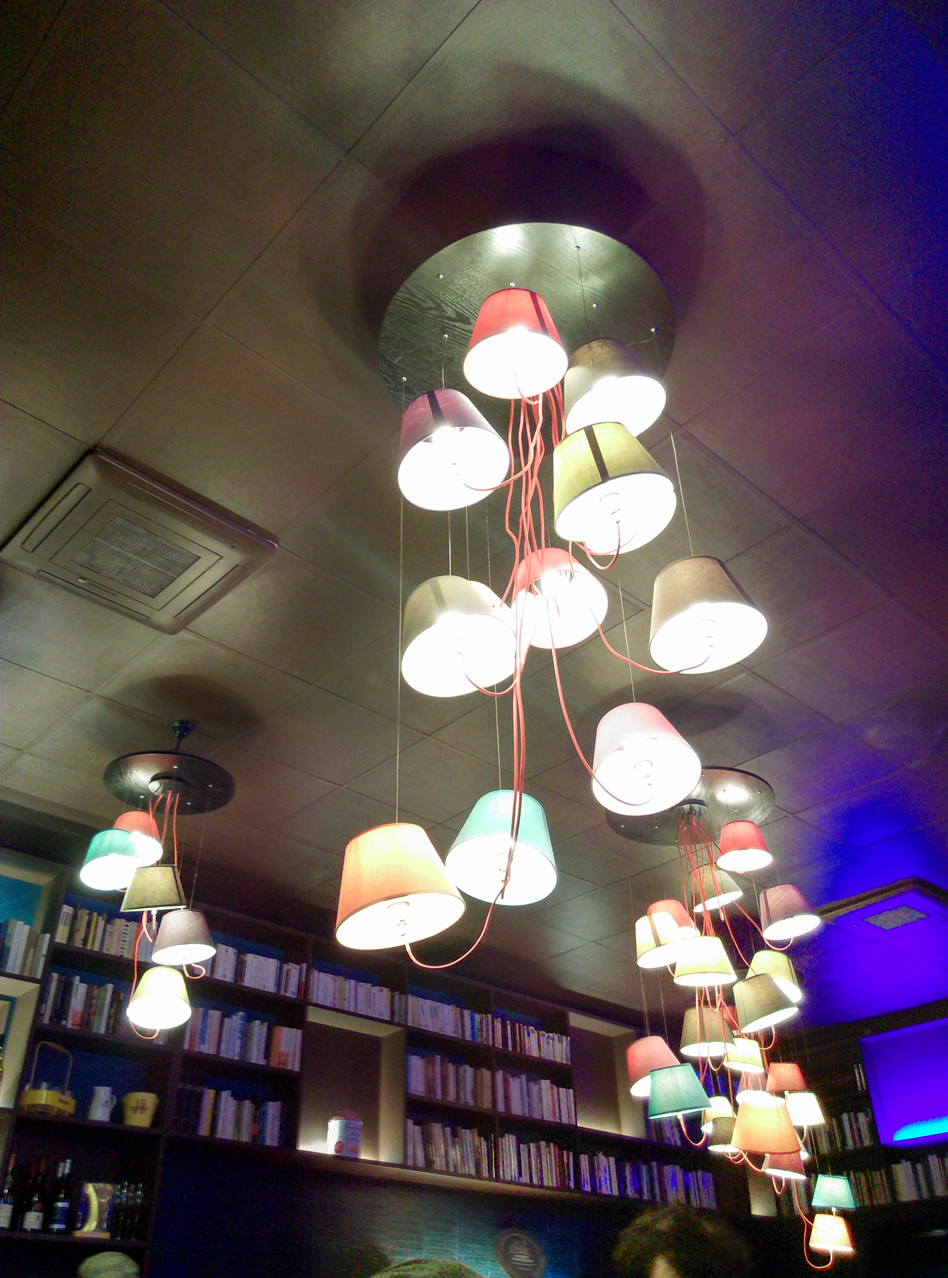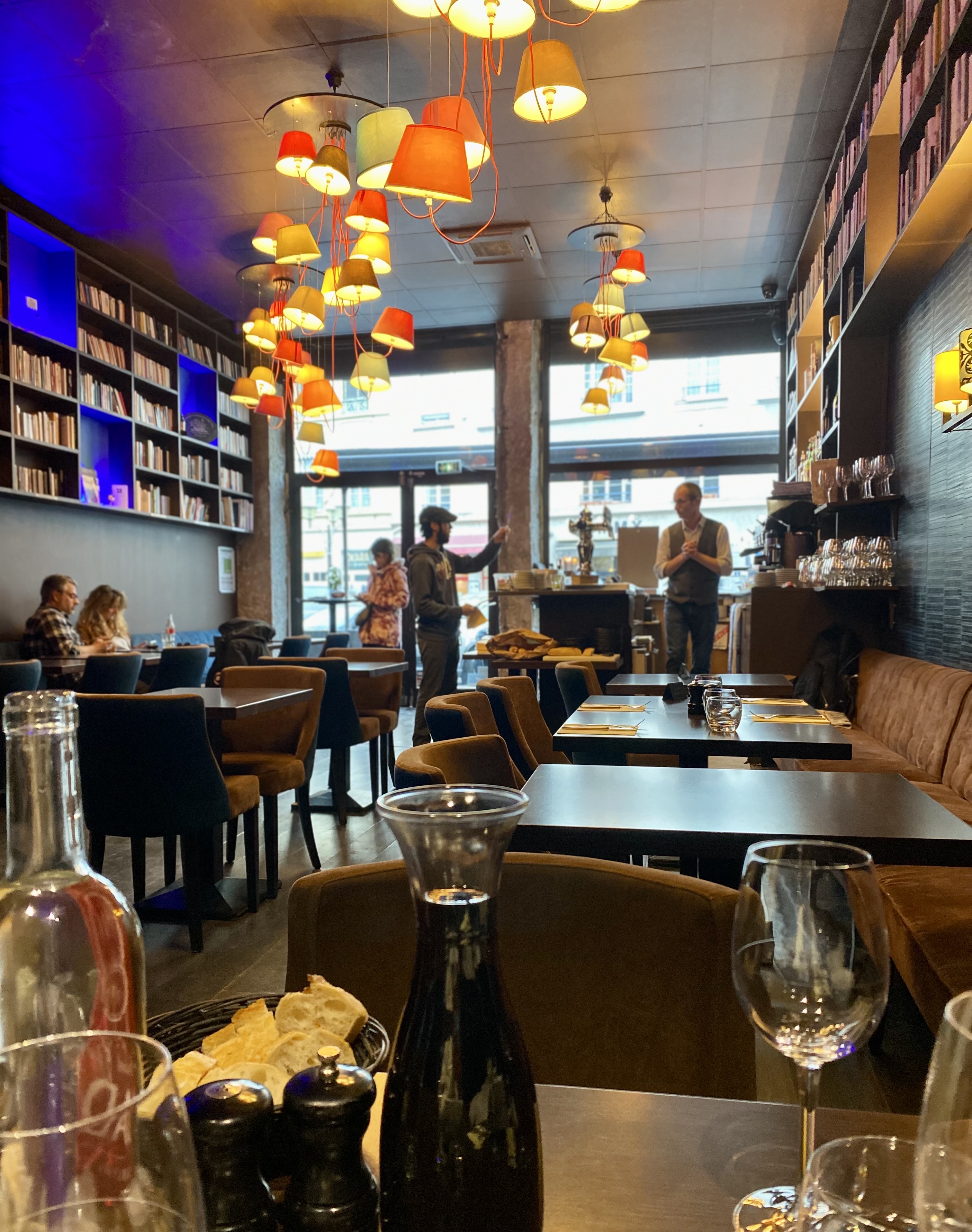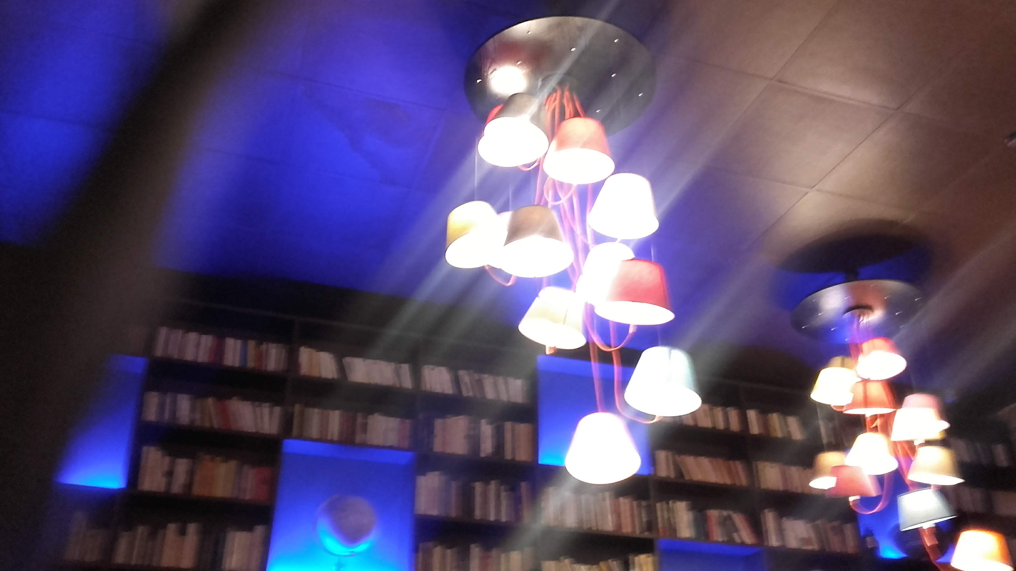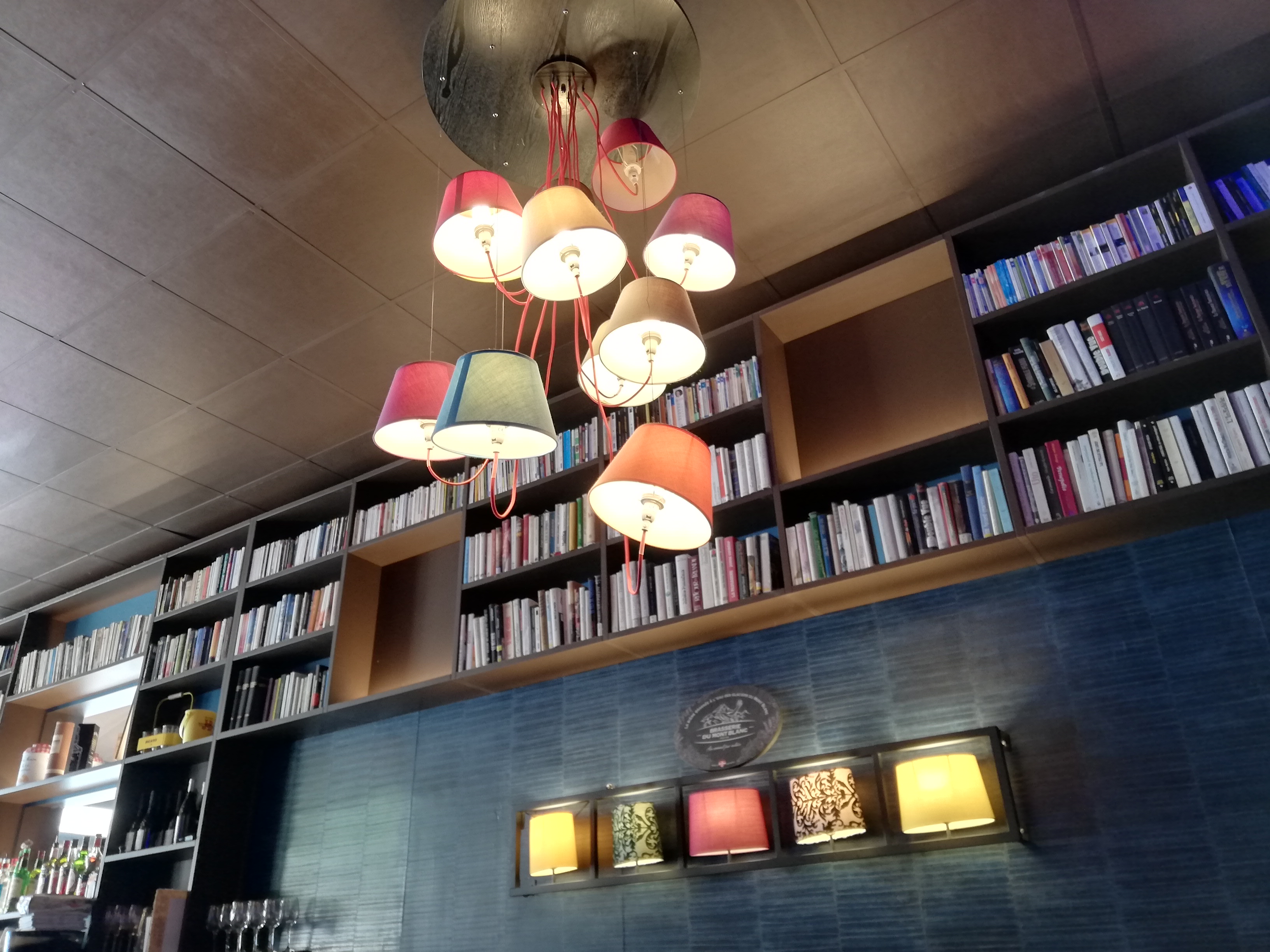 Ambiance cosy dans ce bar. L'aspect libraire apporte un confort inattendu