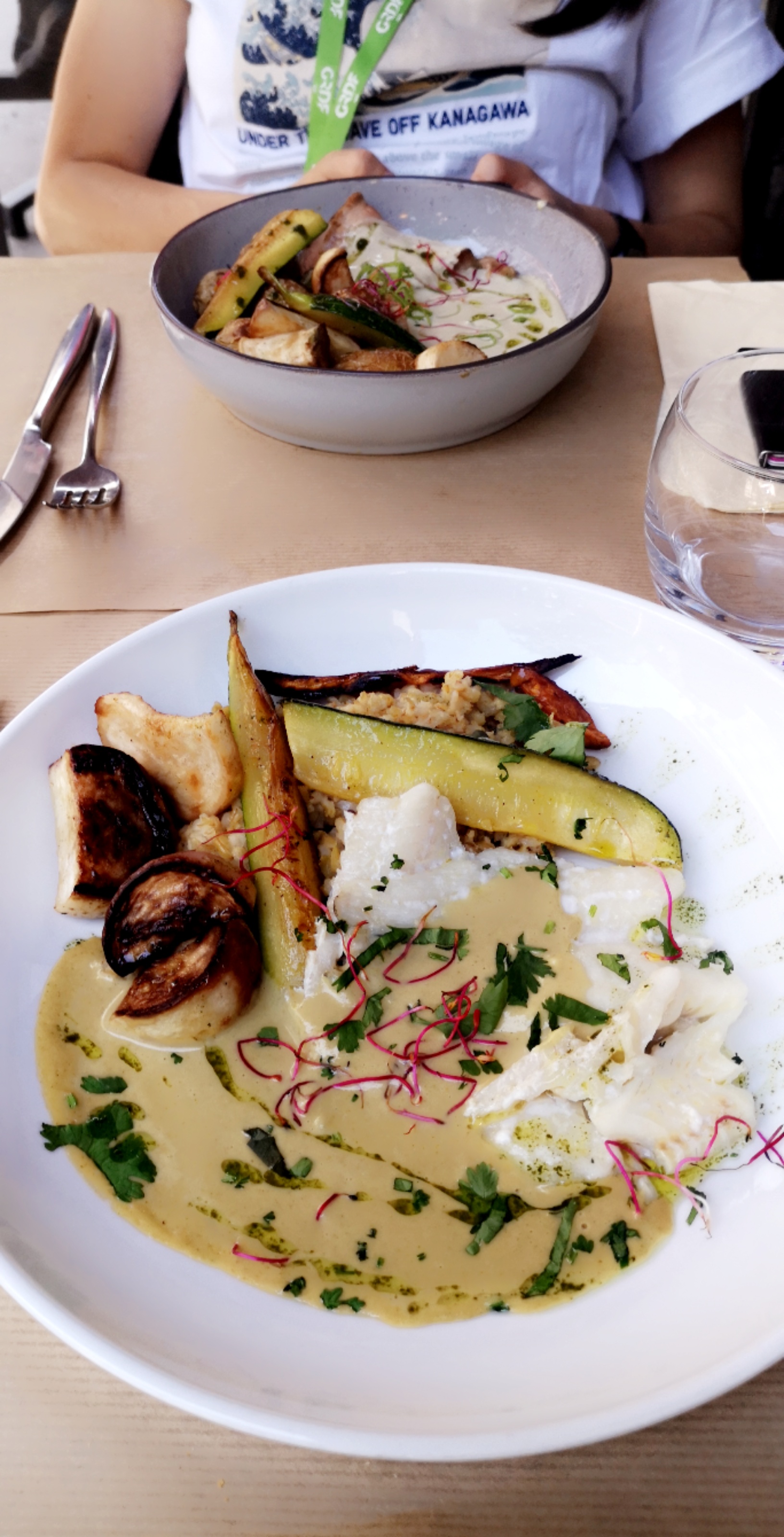 On est venu un jour où c'était poisson ou végétarien au menu. Mon plat végé à base de quinoa était délicieux, et le poisson choisi par mon amie lui a beaucoup plu. Dommage de ne pas avoir un second estomac pour les desserts, ce jour, j'aurais aimé goûter la brioche faite maison façon pain perdue... :) Le service efficace et rapide. Les serveurs très prévenants :) Mon amie et moi nous l'avons un peu choisi au hasard, ce jour, et nous ne regrettons pas ! Nous y retournerons à l'occasion ^_^