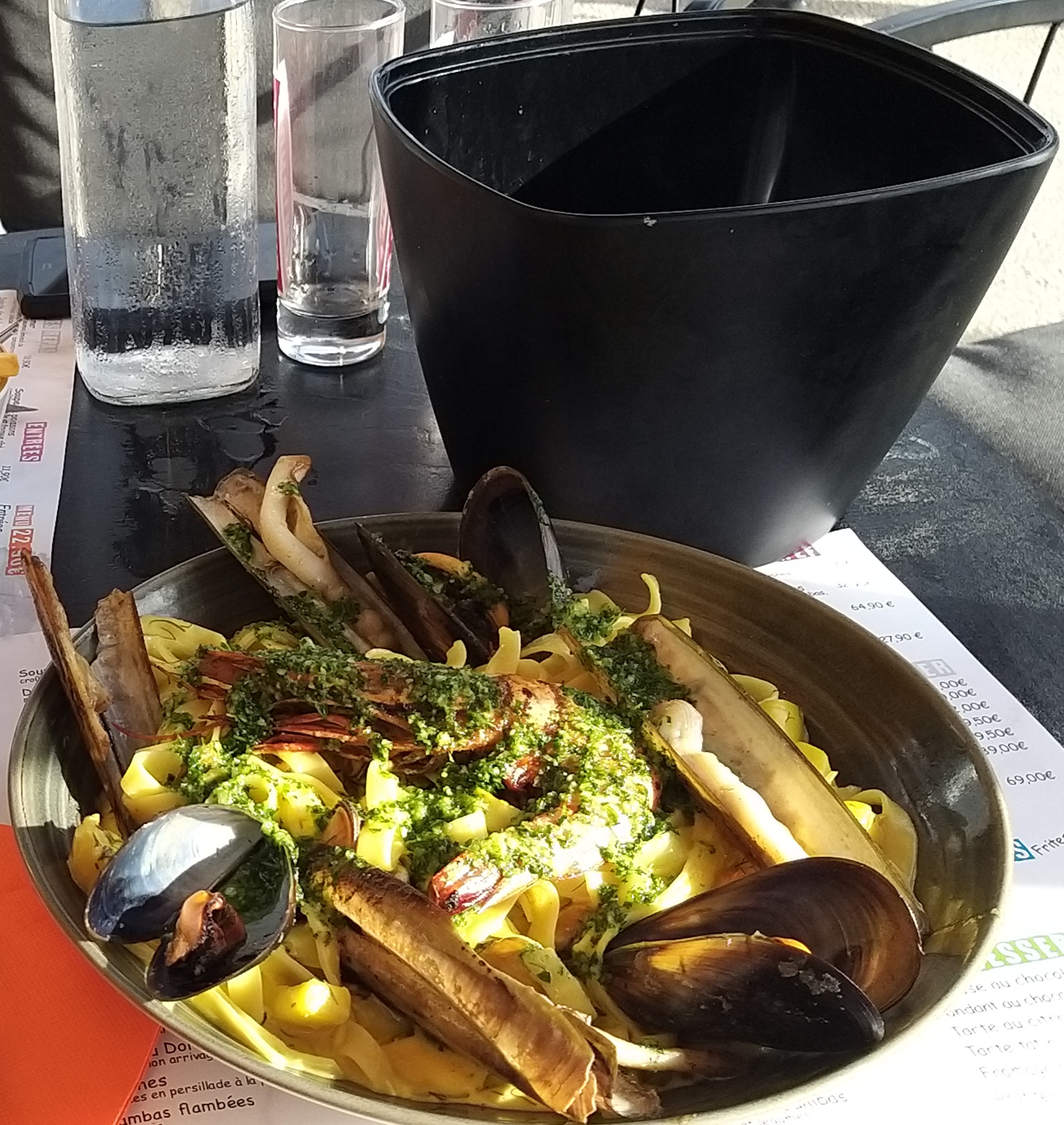 Un bon restaurant! Terrasse blindée de monde en ce dimanche ensoleillé en pleines vacances scolaires de fin octobre. Certes le service a été un peu long mais les serveuses très réactives faisaient vraiment tout leur possible pour satisfaire les clients. Très bonne cuisine, tagliatelles de la mer très généreusement garnies en fruits de mer et de très belles profiteroles😋 Merci à notre serveuse Smahane pour sa bonne humeur et son sourire.