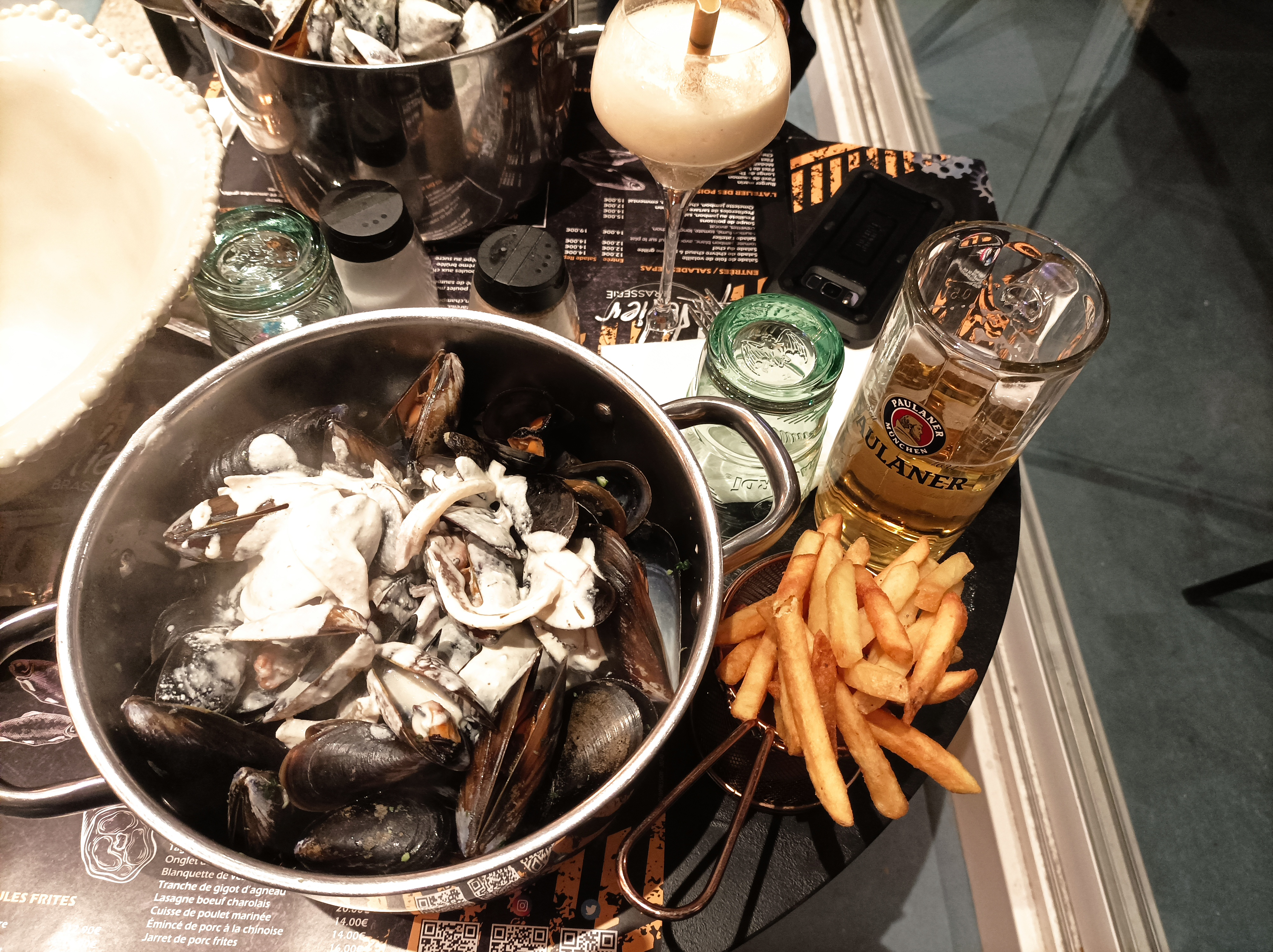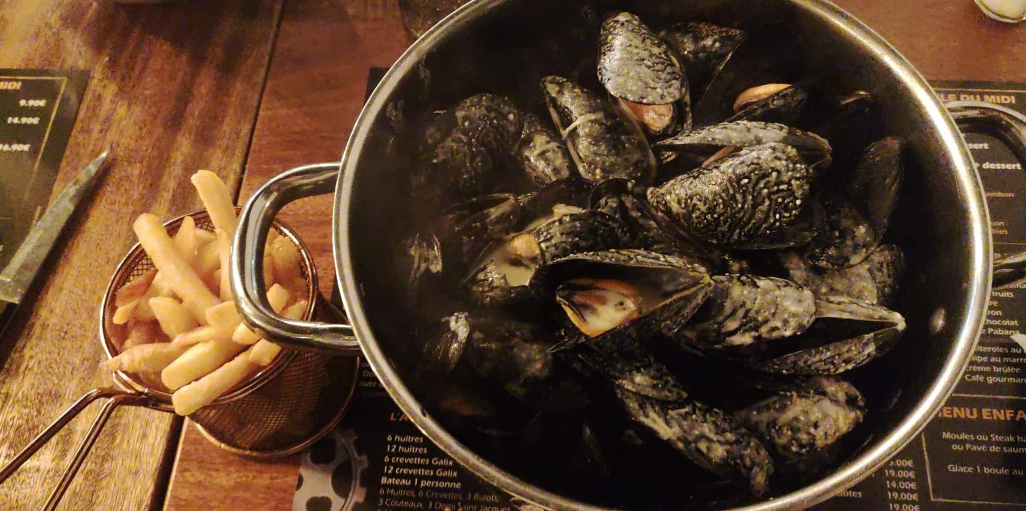 Bon emplacement , plat très généreux rien à dire sur la quantité . Par contre au niveau du service ça n’allait pas , j’ai du me lever deux fois pour demander du sel et un seau pour les moules ( qui sont censée être servie automatiquement il ne s’agit pas de demande particulière ) . J’ai du demander à deux serveurs différent le sel et me lever pour l’avoir . Puis j’ai du me lever à nouveau pour demander au comptoir à un serveur un seau pour les moules car celui qui s’occupait de ma table ne passais pas près de cette dernière, mais toujours rien , demandé à nouveau à celui qui s’occupait de ma table pour qu’il envoi après près de 20 minutes d’attente une collègue me ramener le seau ! J’ai l’habitude de manger dans cet établissement et n’ai jamais été déçu mais ce soir c’était vraiment pas correct du tout . Je comprend qu’il y ai beaucoup de monde et que les serveurs soir déborder mais le sel et le seau pour les moule sont des basic qui n’ont même pas à être demandée initialement , encore moins à mainte reprise et avec autant d’attente .
