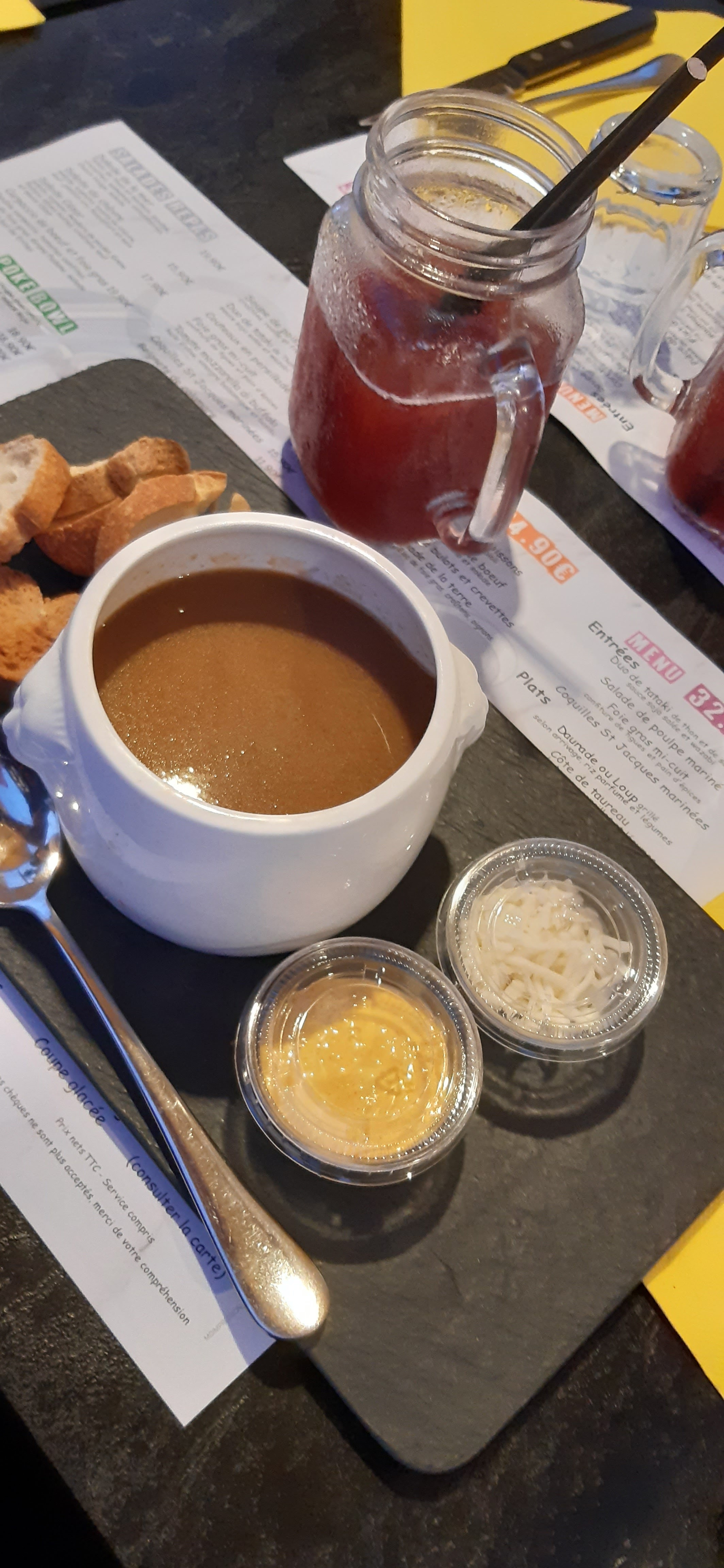 Bon ambiance et super menu . Du plus notre serveur était très sympa . Il nous a MM apporté du lait pour la soupe de poisson à notre demande ! Ils sont très sympa avec les enfant aussi.