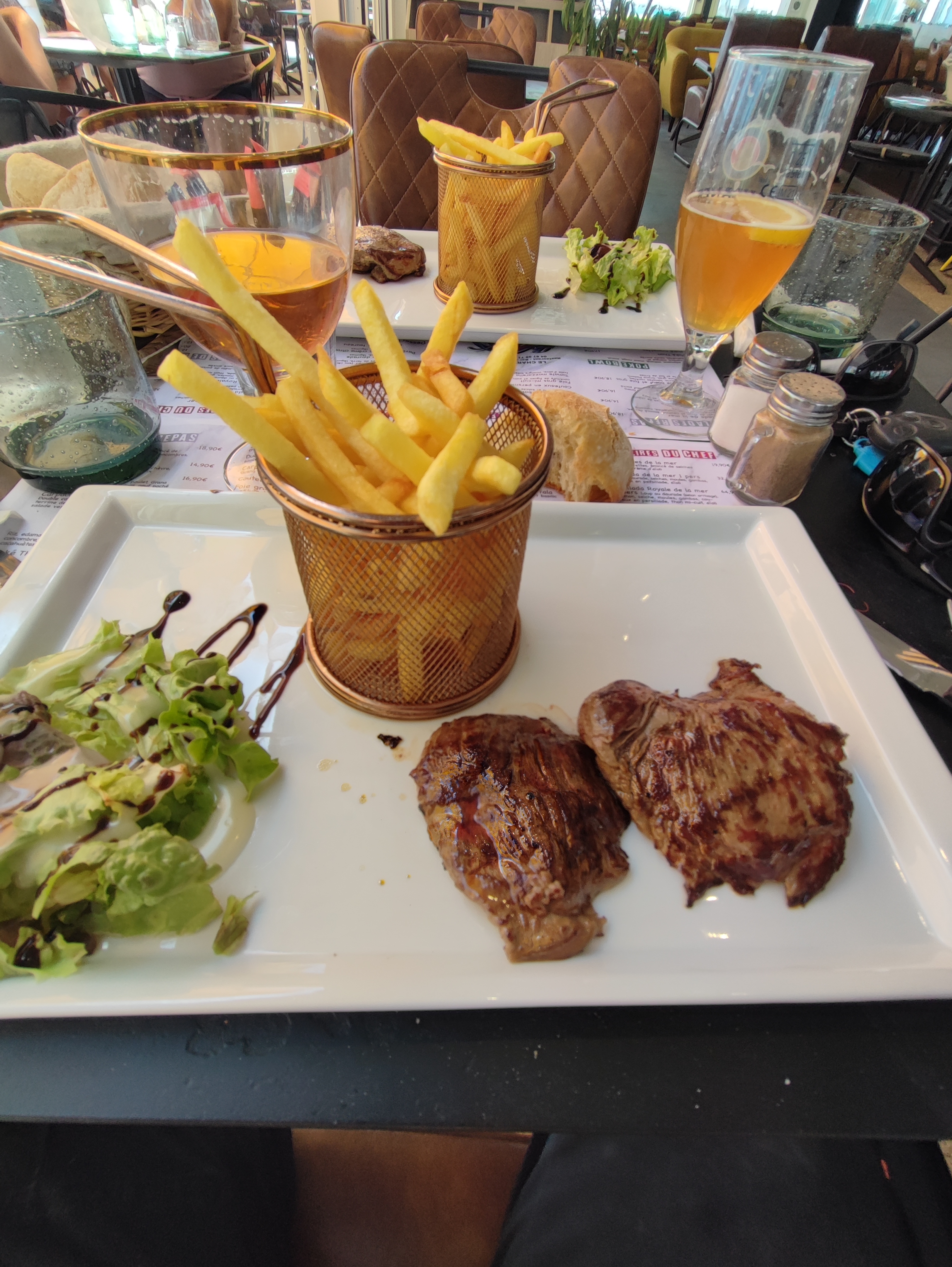 Restaurant correcte et serveur sympa, dommage que la viande commandée saignante est arrivé à point plus, la salade césar au top et les moules même pour un gros mangeur du mal a terminer