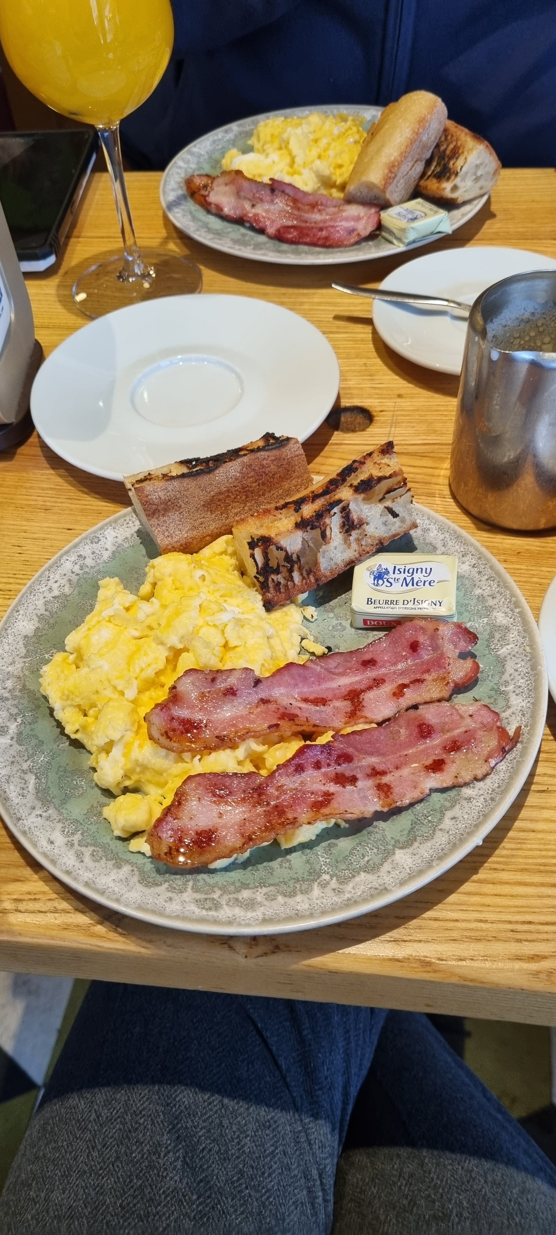 Chocolat chaud à l'ancienne, jus d'orange fraîchement pressé, œufs brouillés baveux; le petit déjeuner était tout ce qu'on voulait d'un café parisien. Le décor est très mignon, je recommande!