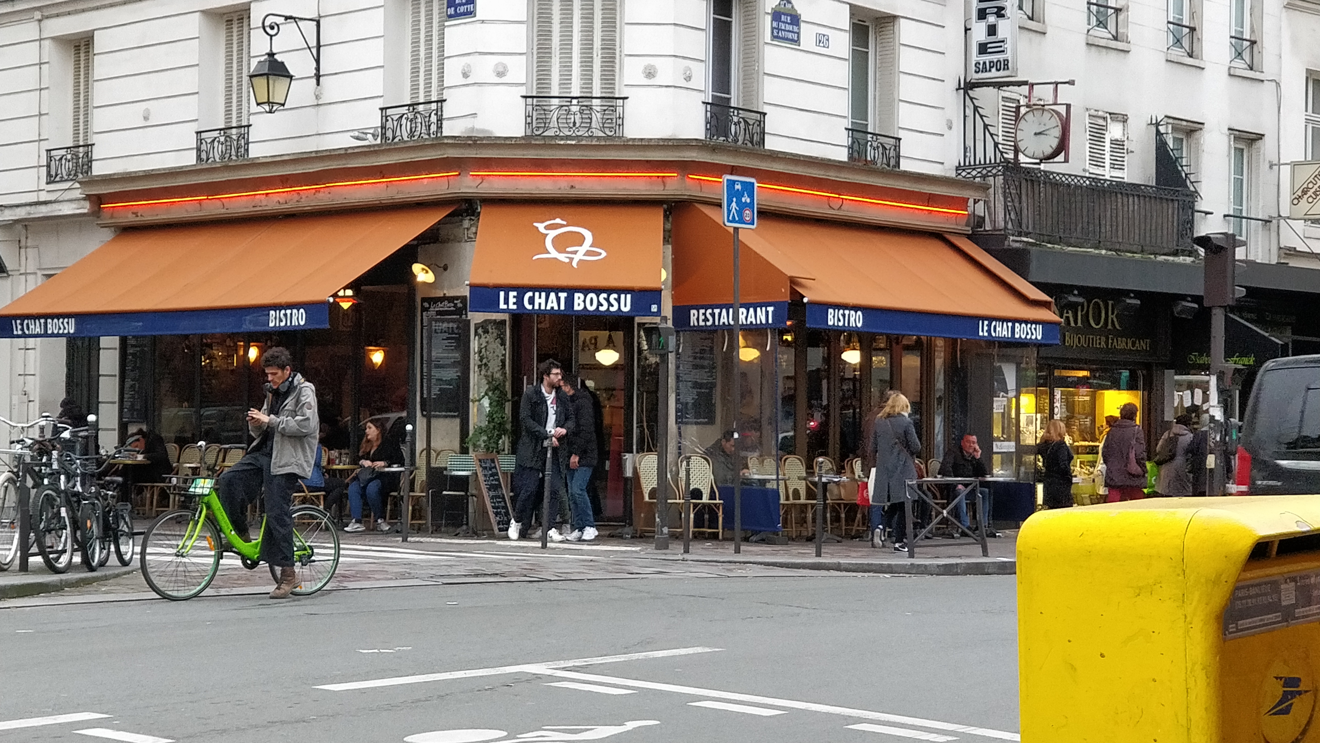 Nous avons eu deux dîners incroyables au Chat Bossu. Le canard confit ici était mon plat préféré dans tout Paris. Le personnel était sympathique et nous a fait sentir comme chez nous. Ils nous ont donné d'excellentes recommandations de vins et nous ont laissé pratiquer notre français. L'ambiance chaleureuse et la nourriture incroyable nous ont donné envie de revenir pour un troisième dîner. Même si vous ne séjournez pas dans ce joli quartier, je vous recommande vivement de prendre le temps de visiter cette merveilleuse petite brasserie.