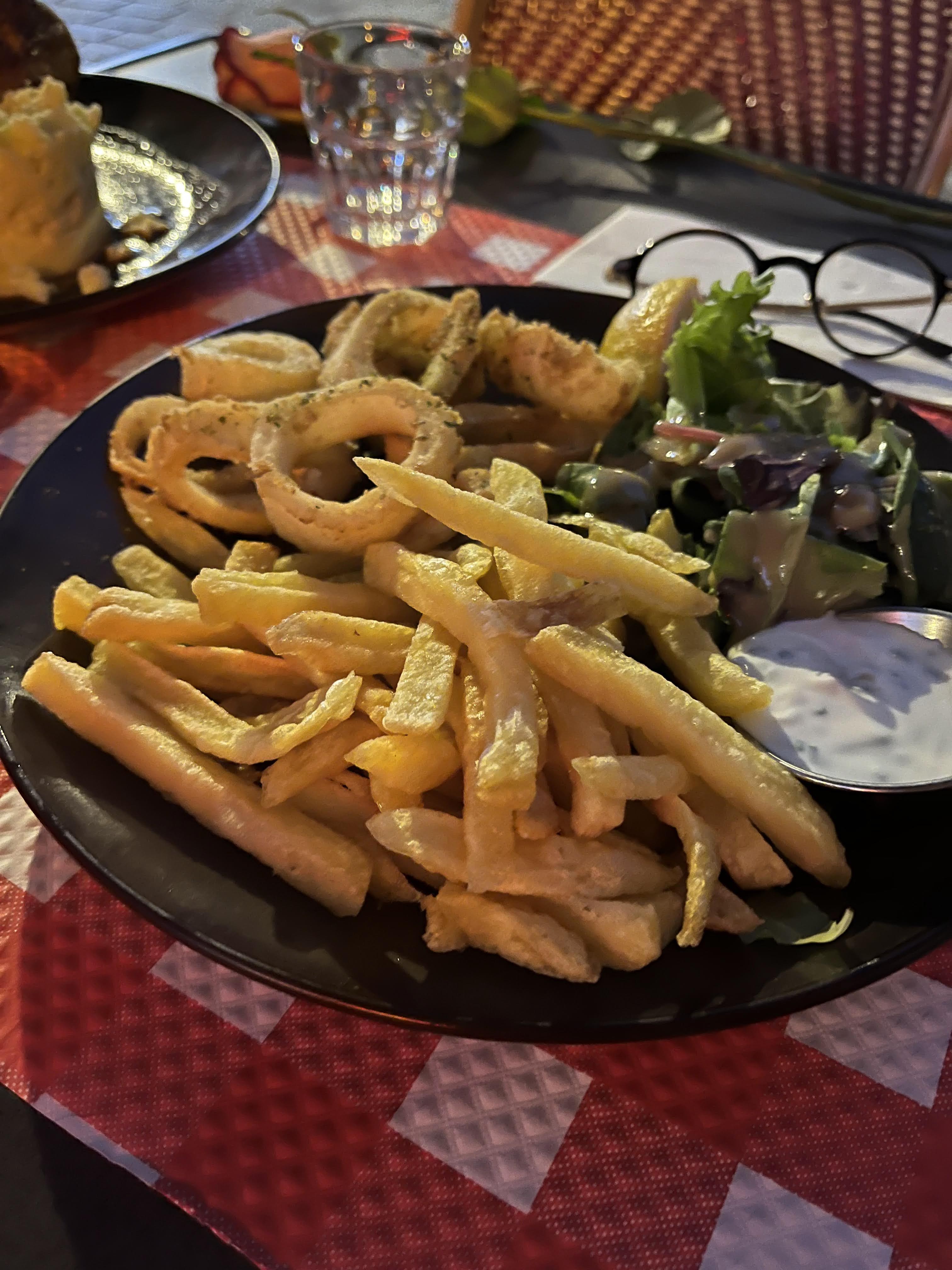 Très bon fish and chips mais j’aurais préféré des frites au lieu des pommes de terres surgelées