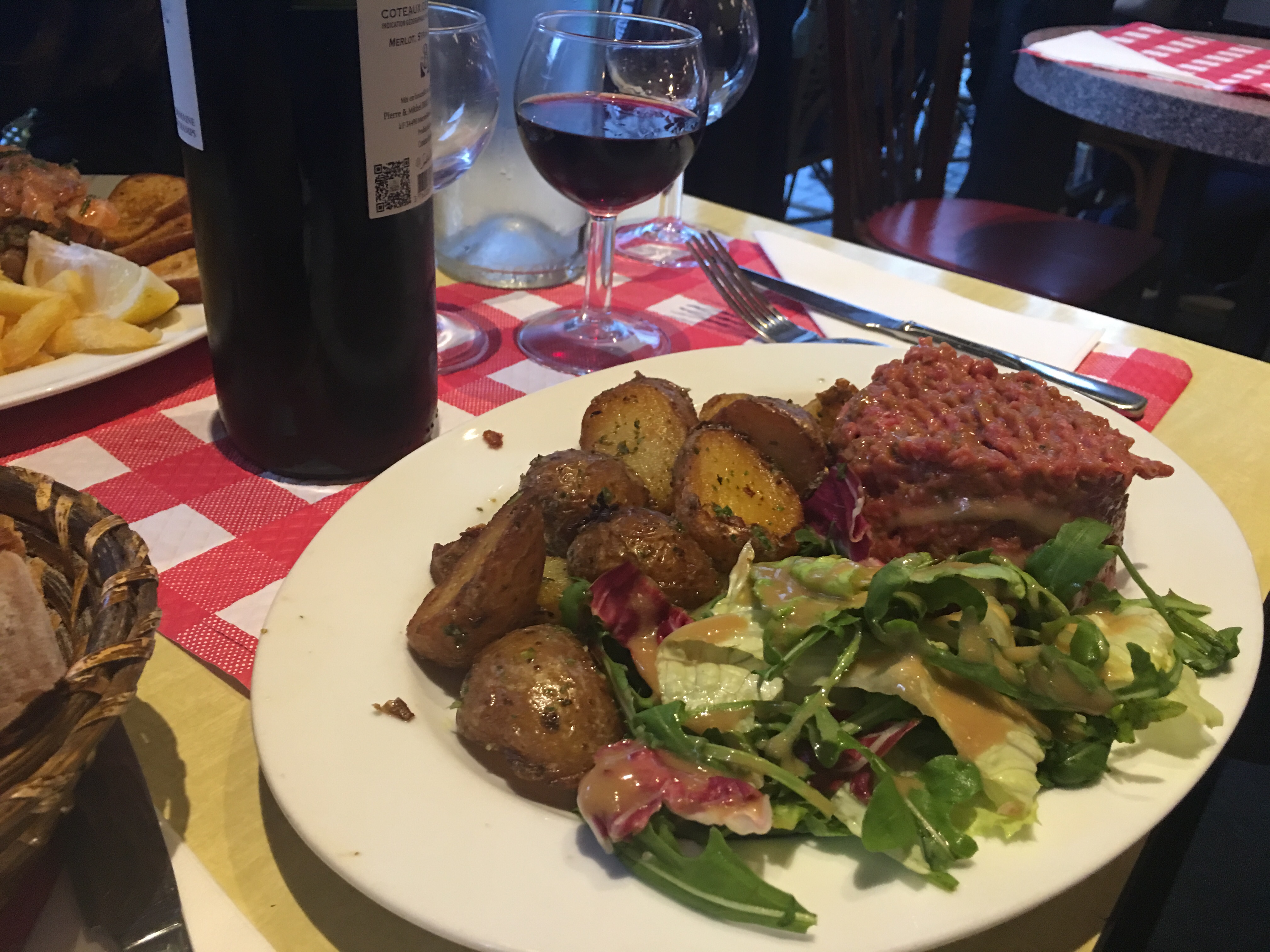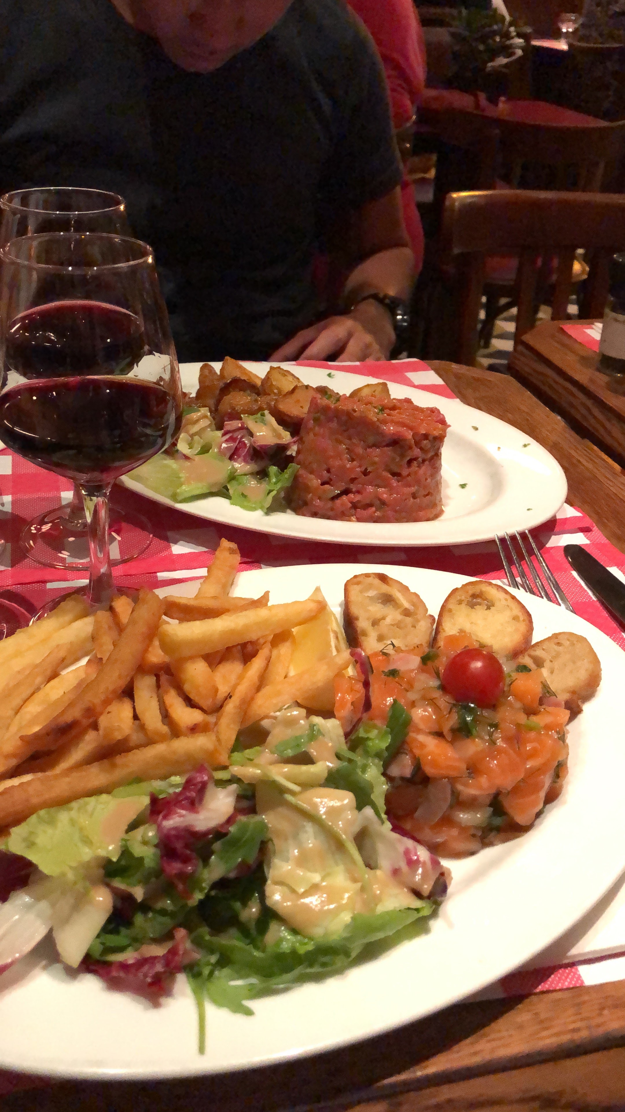 La nourriture était excellente - il y avait le tartare de saumon et mon petit ami avait le tartare de bœuf. Le service était attentionné, mais lorsque nous avons demandé plus de pain, nous avons reçu 4 morceaux à chaque fois, tandis que d'autres tables recevaient des paniers pleins de pain :/ Nous sommes asiatiques (de Singapour), alors peut-être que c'est peut-être la raison pour laquelle.