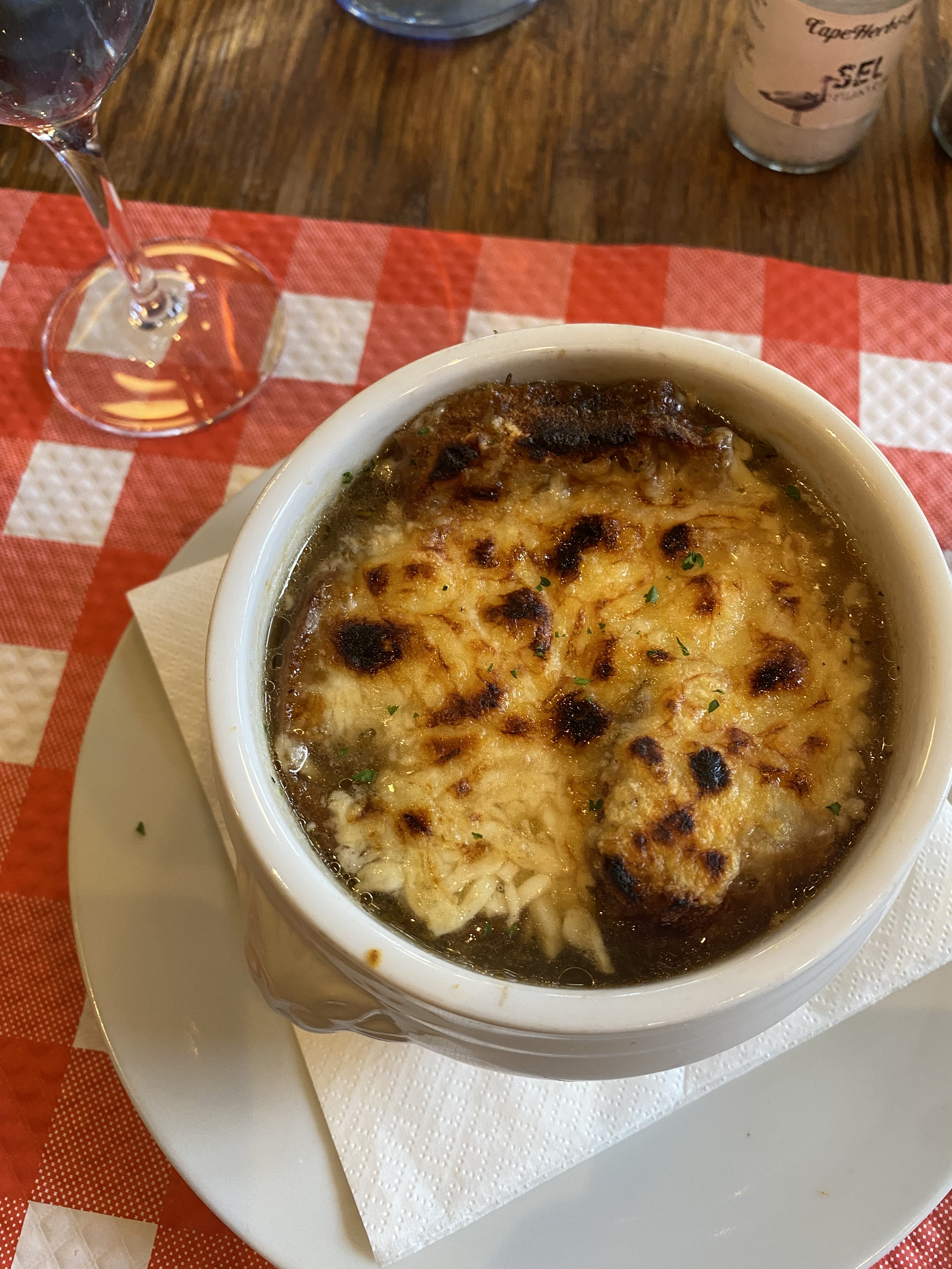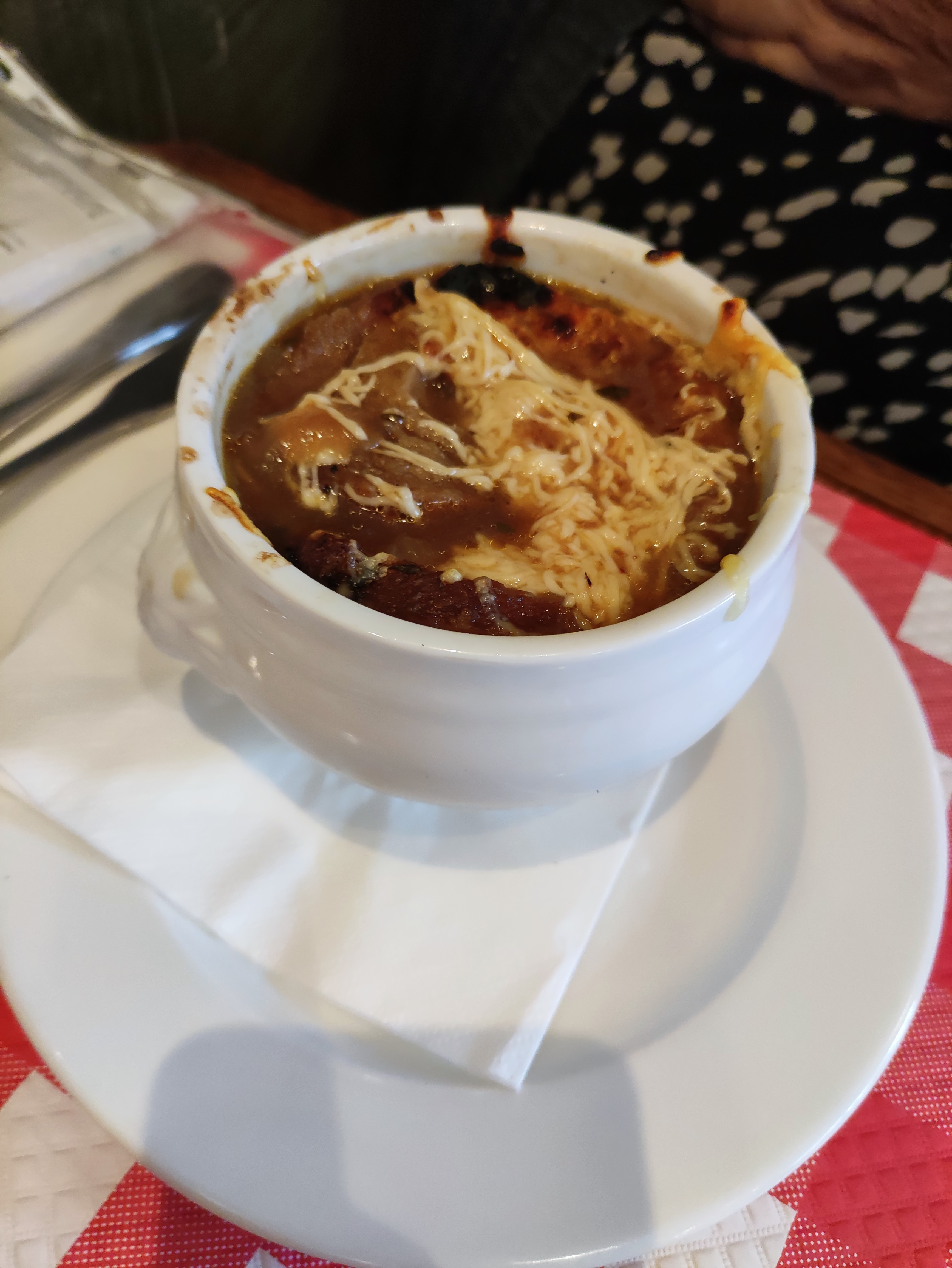 Excellent service, nourriture délicieuse, expérience française incontournable. Tout d’abord, les touristes doivent changer leur attitude à l’égard du service de restauration en France. Le service est lent partout car les Français prennent leur temps dans les restaurants. Ne vous attendez donc pas à un service rapide partout à Paris. J'ai eu de la soupe à l'oignon, du bœuf bourguignon et de la panna cotta. Un dîner français classique. Ils étaient tous délicieux. Vous pouviez sentir à quel point le vin était infusé dans le bœuf avec des heures de cuisson lente pour aboutir à la perfection. Même si j'étais la seule personne à ne pas parler français, nous avons pu bien communiquer