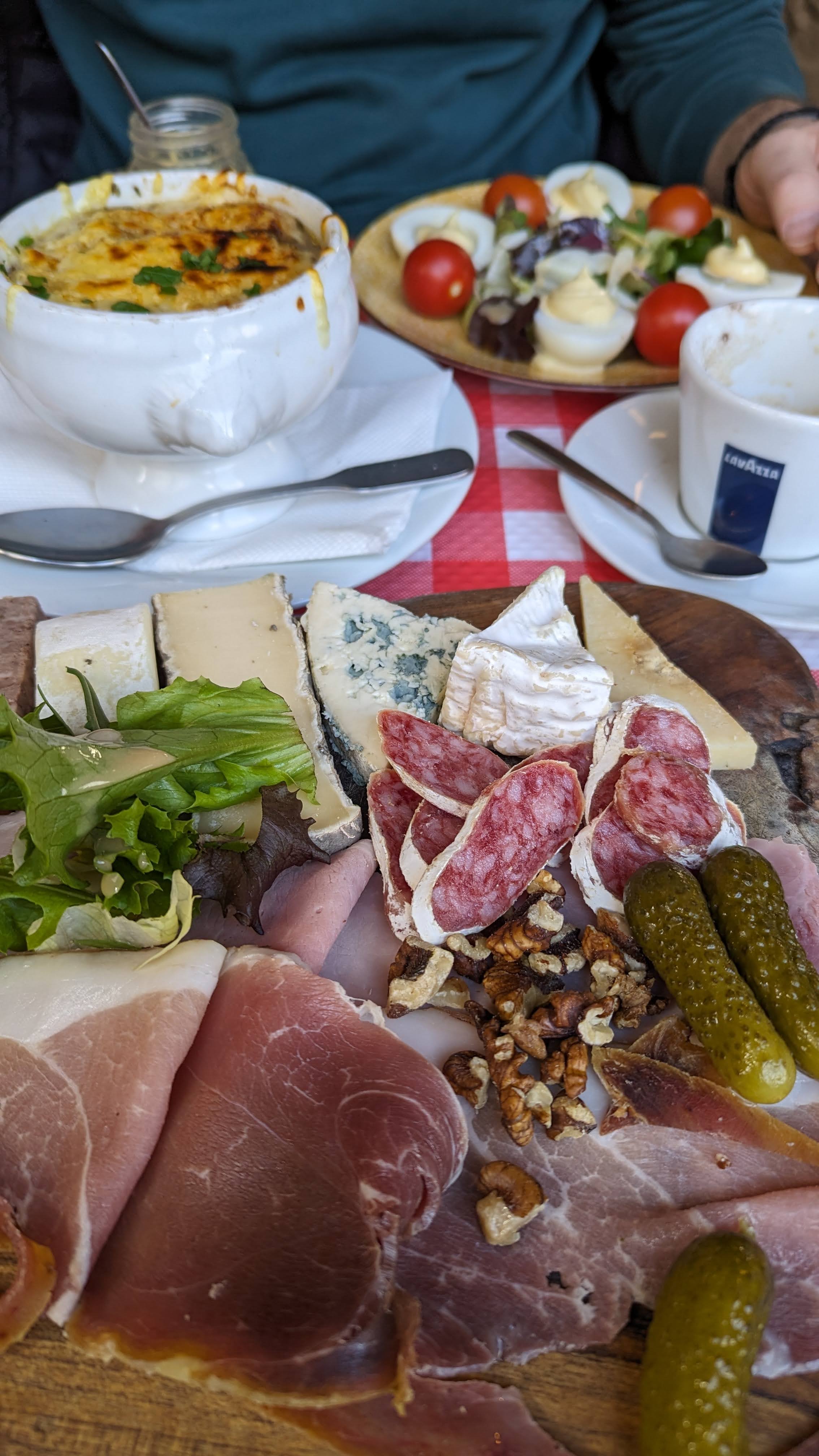 Recommandé par notre hôte AirBnB et à seulement 10 minutes à pied - nous avons essayé cet endroit lors de notre première nuit à Paris. Un poulet rôti au thym pour moi, un steak et des pommes de terre pour ma femme, accompagnés d'un Côtes du Rhône onctueux et d'un cidre sec, nous avons vraiment démarré notre voyage du bon pied. Le plateau de charcuterie ne contenait pas un seul morceau de viande, de fromage ou de cornichon médiocre. Le personnel était très gentil et arrangeant, et l'atmosphère était à la fois confortable et chaleureuse.