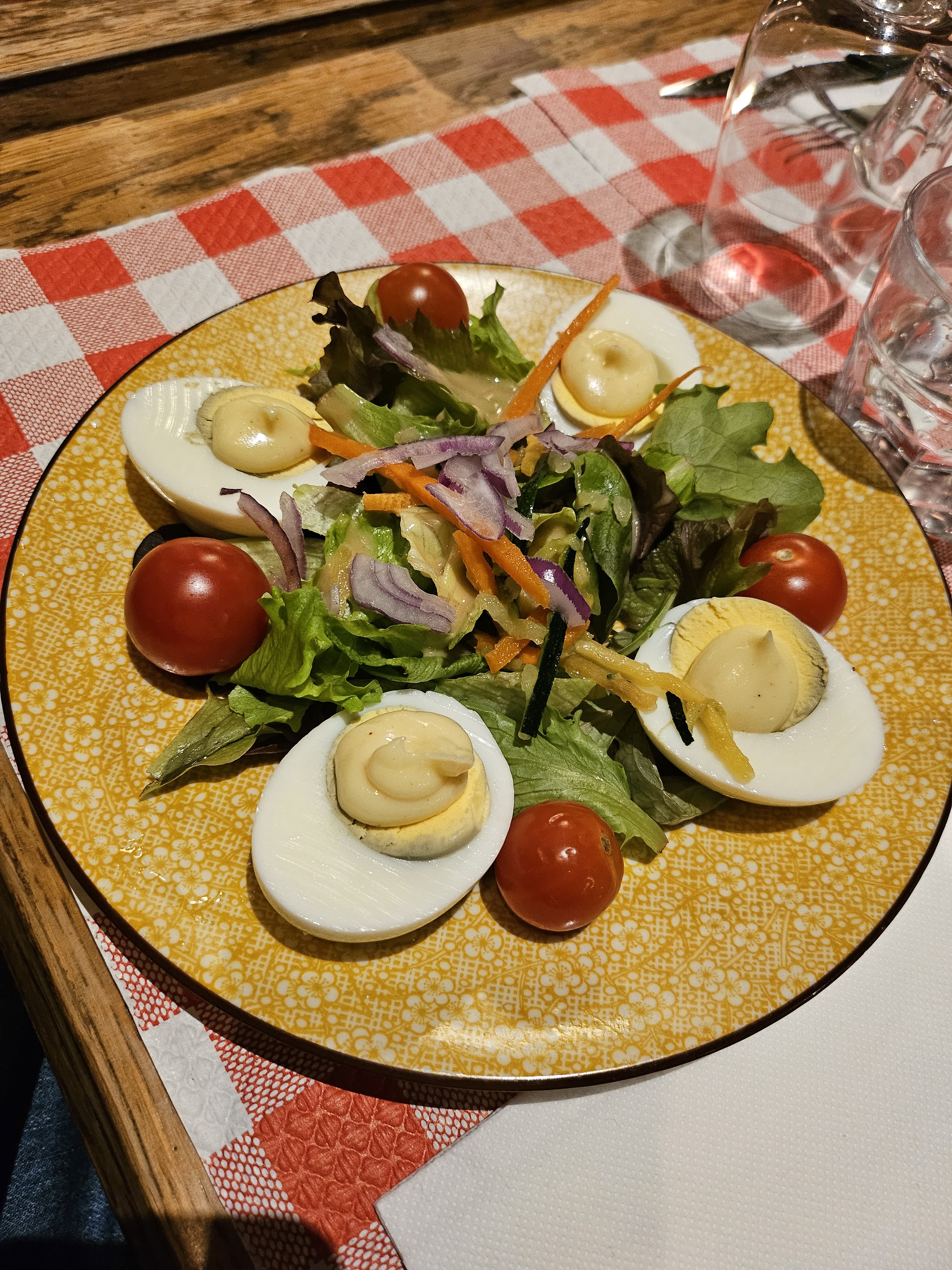 Véritable catastrophe. 45min pour être servi, cheveux dans l’assiette, et vin qui pique. On est sorti avec un mal de ventre tous les 4… Je décommande ce restaurant.