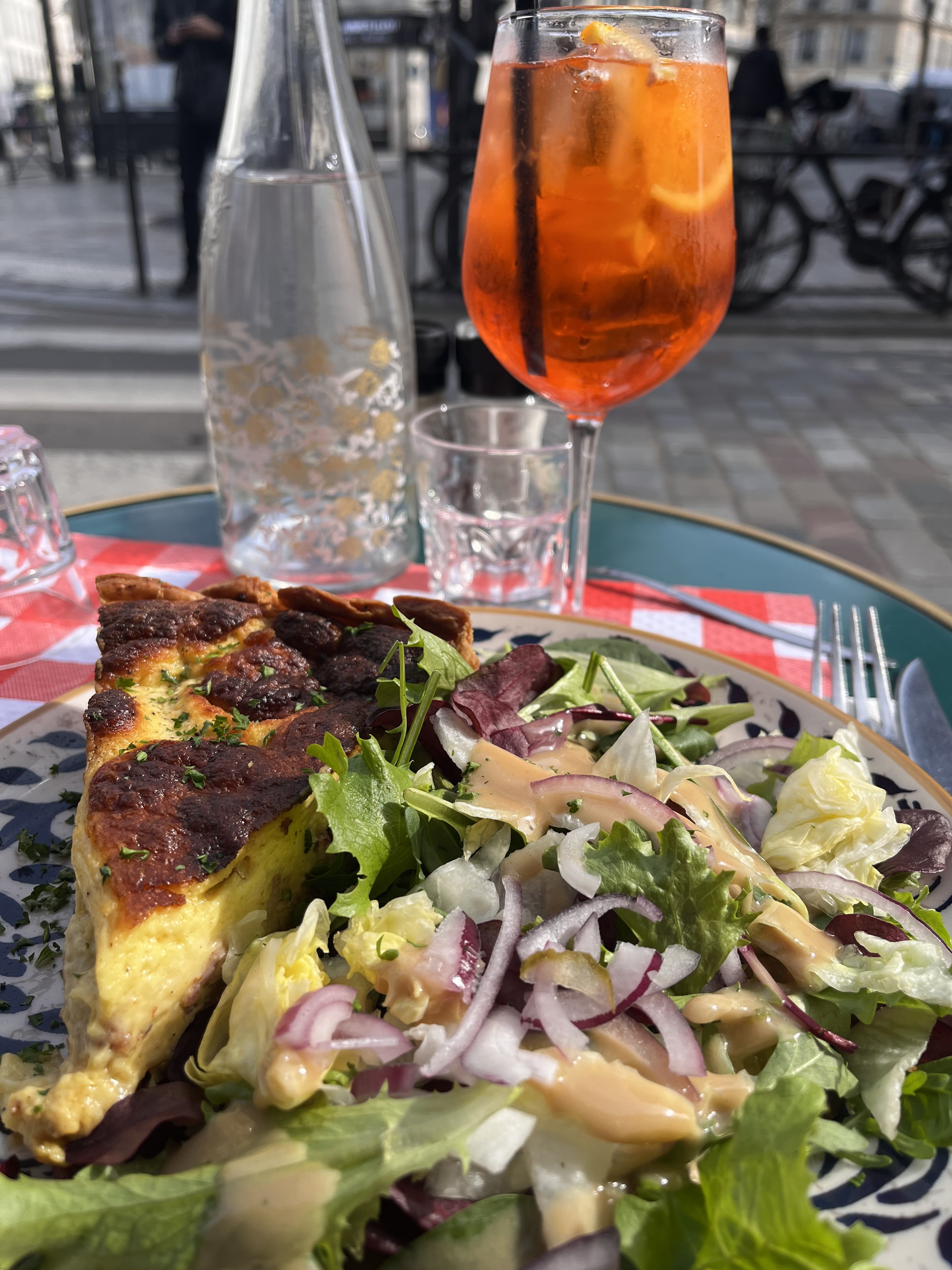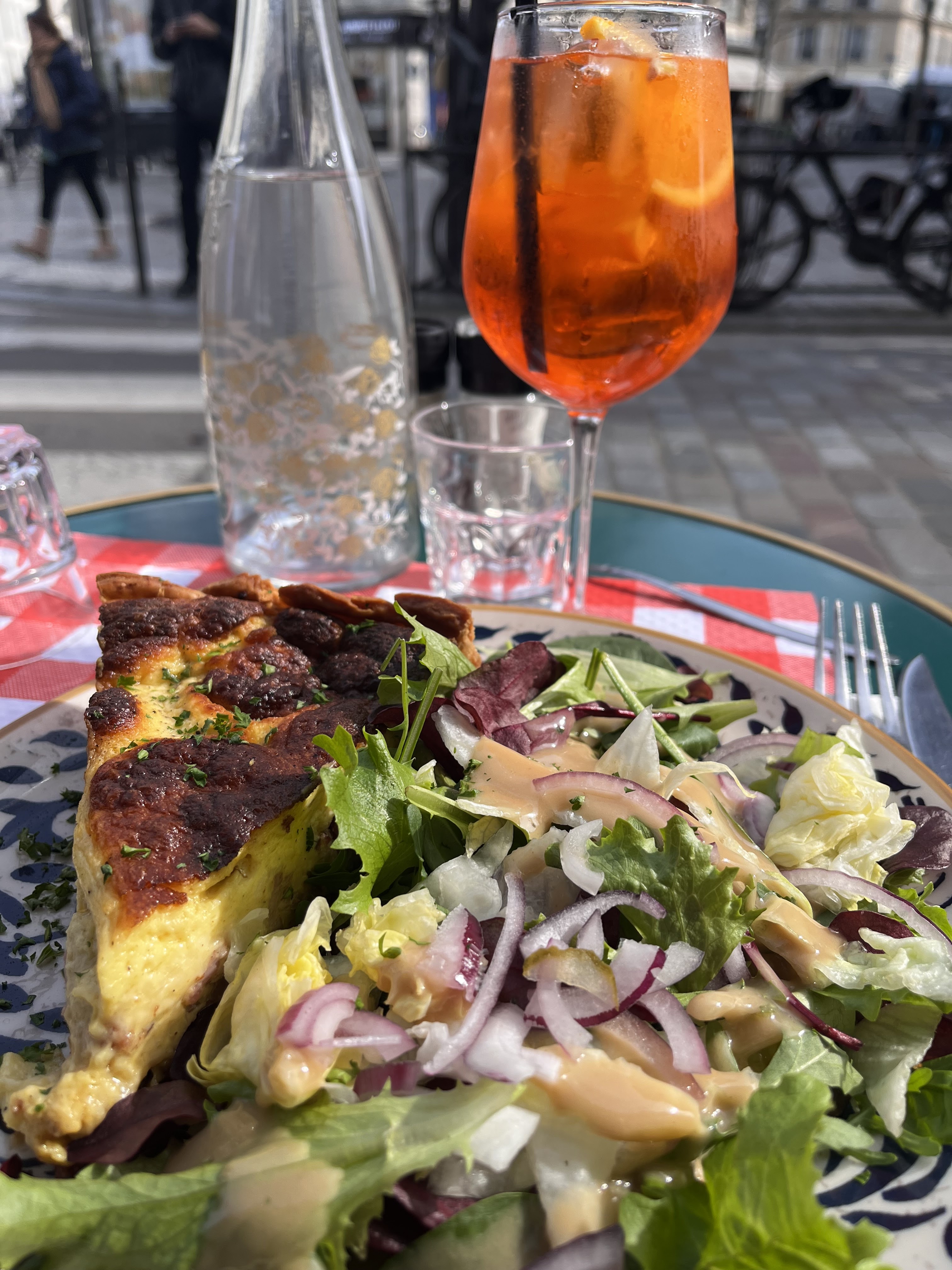 À chaque fois je visite cet endroit je passe un très bon moment, cette fois ci la quiche était un pur délice! Bien moelleuse et bien garnie. Assiette jolie. Le spritz était bien dosé et délicate. Le pain à table ! Alors la on va bien que le restaurant fait attention aux choses importantes. La dame qui nous servait était magnifique et exceptionnelle, je lui remercie de tout cœur. Bravo ca fait plaisir 🧑🏻🍳❤️