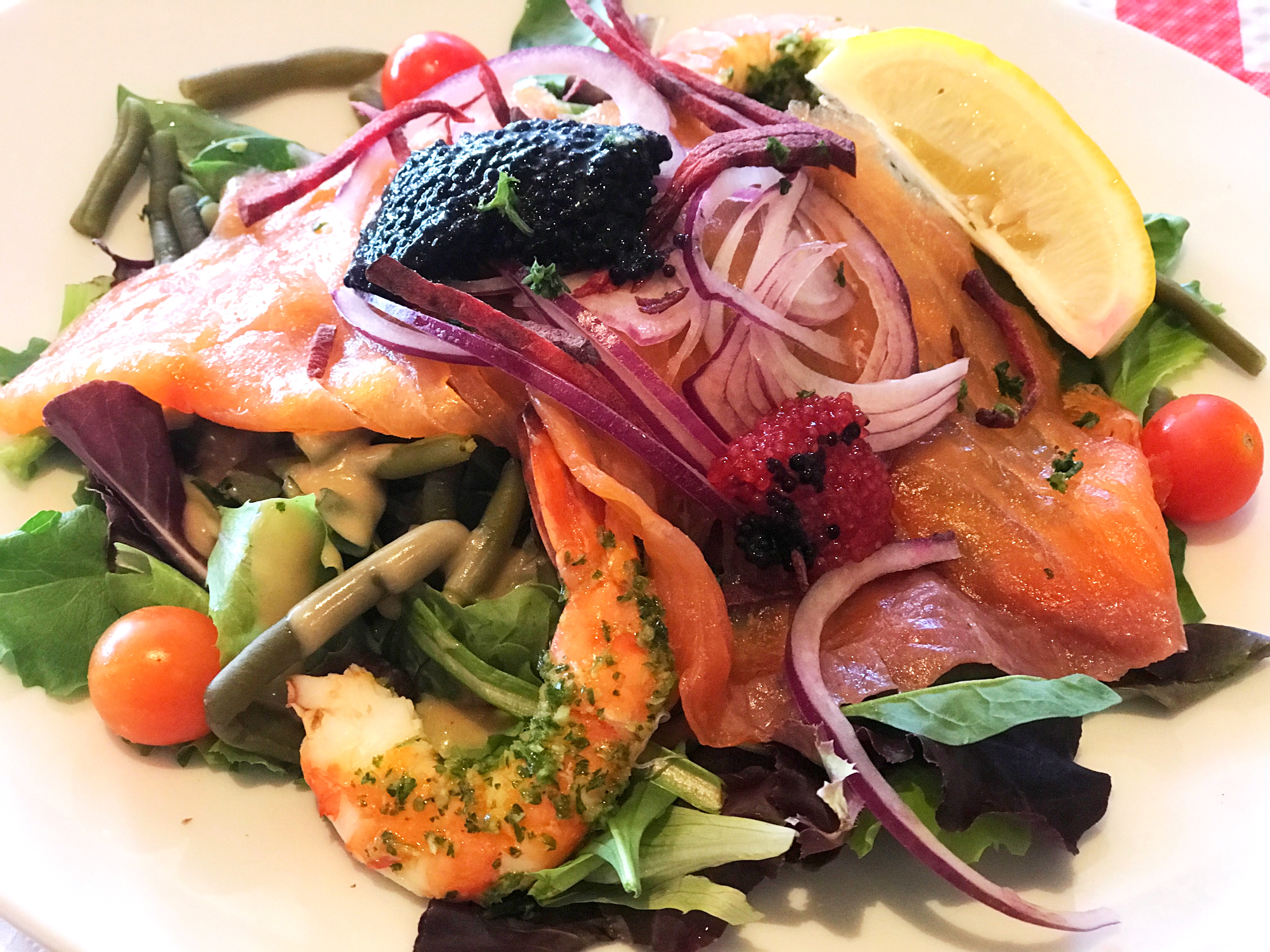 Le patron et le personnel de cet établissement vous réservent un accueil très sympathique. Le plat du jour, une salade norvégienne aux gambas et saumon fumé, était bonne.