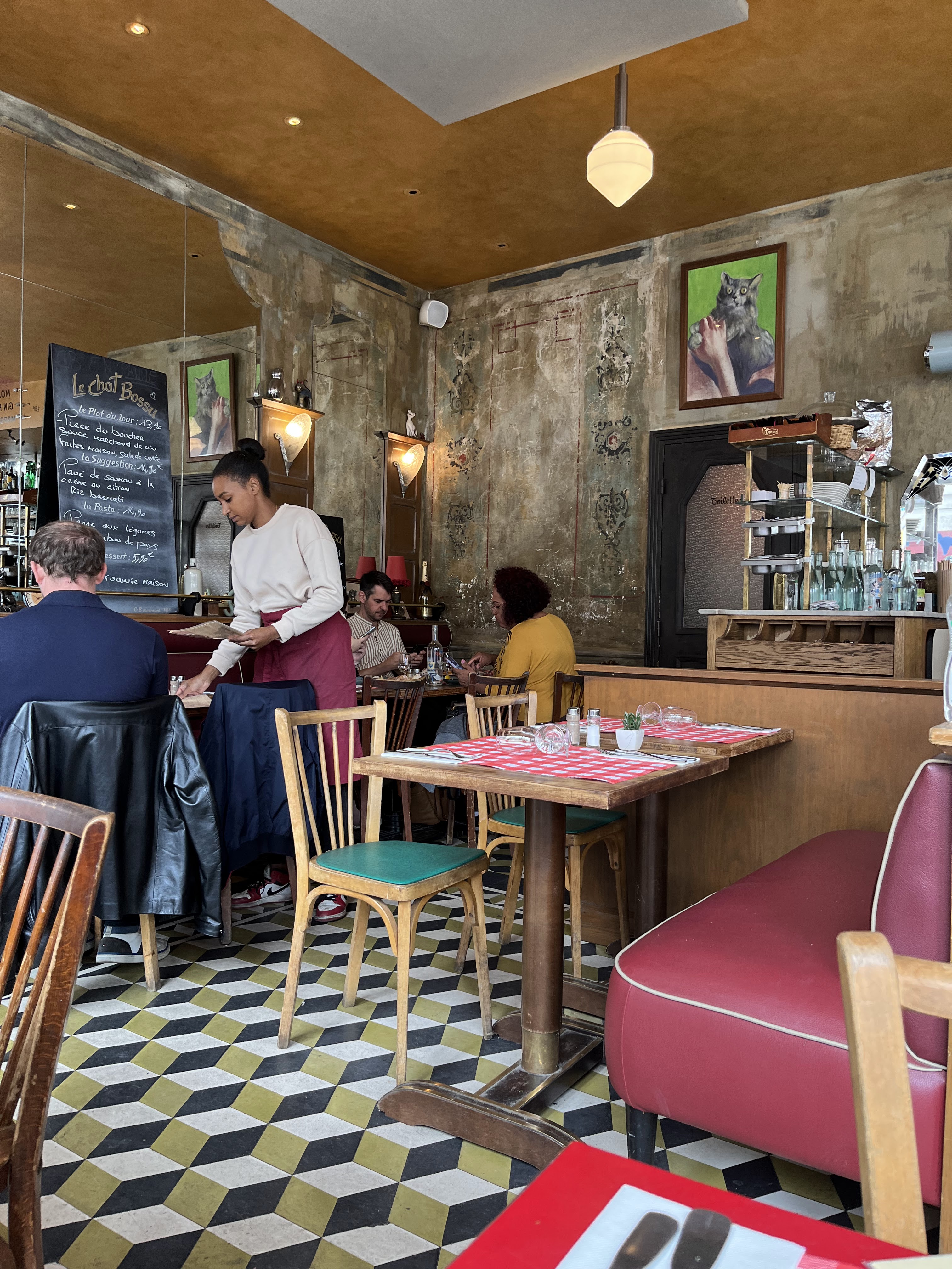Mon café préféré dans le quartier. Je viens au Chat Bossu dès que je passe par là depuis pas mal d’années et c’est un lieu que j’ai toujours adoré. J’y viens surtout pour le café ou un verre de vin entre amis mais la cuisine est savoureuse et il y a plein de petites choses à grignoter pour l’apéro. Le personnel y est toujours très sympathique et l’atmosphère en général, typique d’un café parisien, est envoûtante !