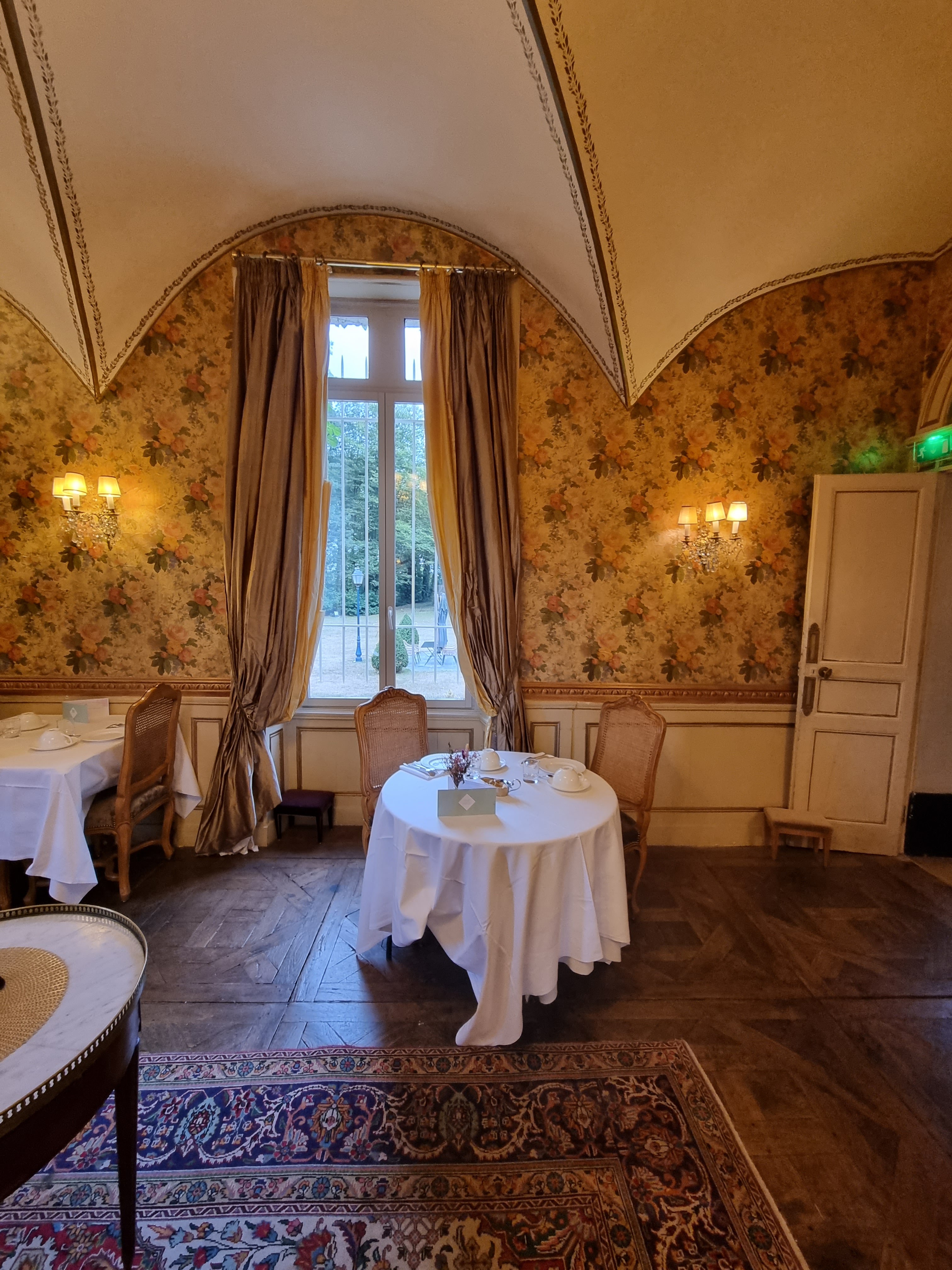 Cadre digne d un château, accueil sympathique, restaurant excellent, gastronomique, très vegetalisé, service excellent, chambre très bien literie excellente. Un petit bémol le petit déjeuner trop simple . Nous aurions apprécié plus de choix digne d un 5 étoiles.