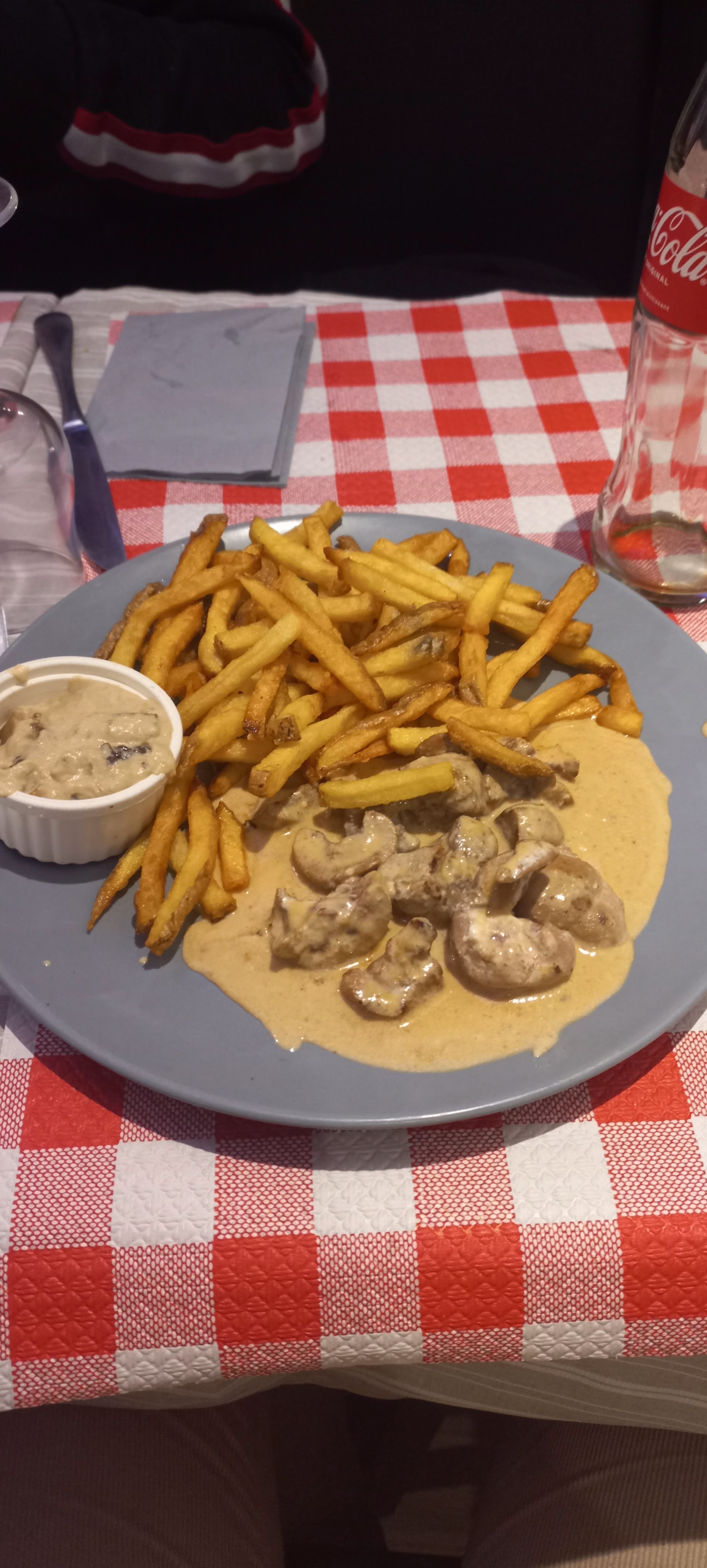 Il est évident que ce n'est pas un établissement axé sur la grande gastronomie, cependant, le rapport qualité-prix ne m'a pas déçu. En ce qui concerne les sauces, elles étaient clairement en quantité insuffisante. En revanche, les frites étaient particulièrement savoureuses. Je recommanderais également d'améliorer la qualité des couteaux, et je tiens à souligner la gentillesse de la serveuse.
