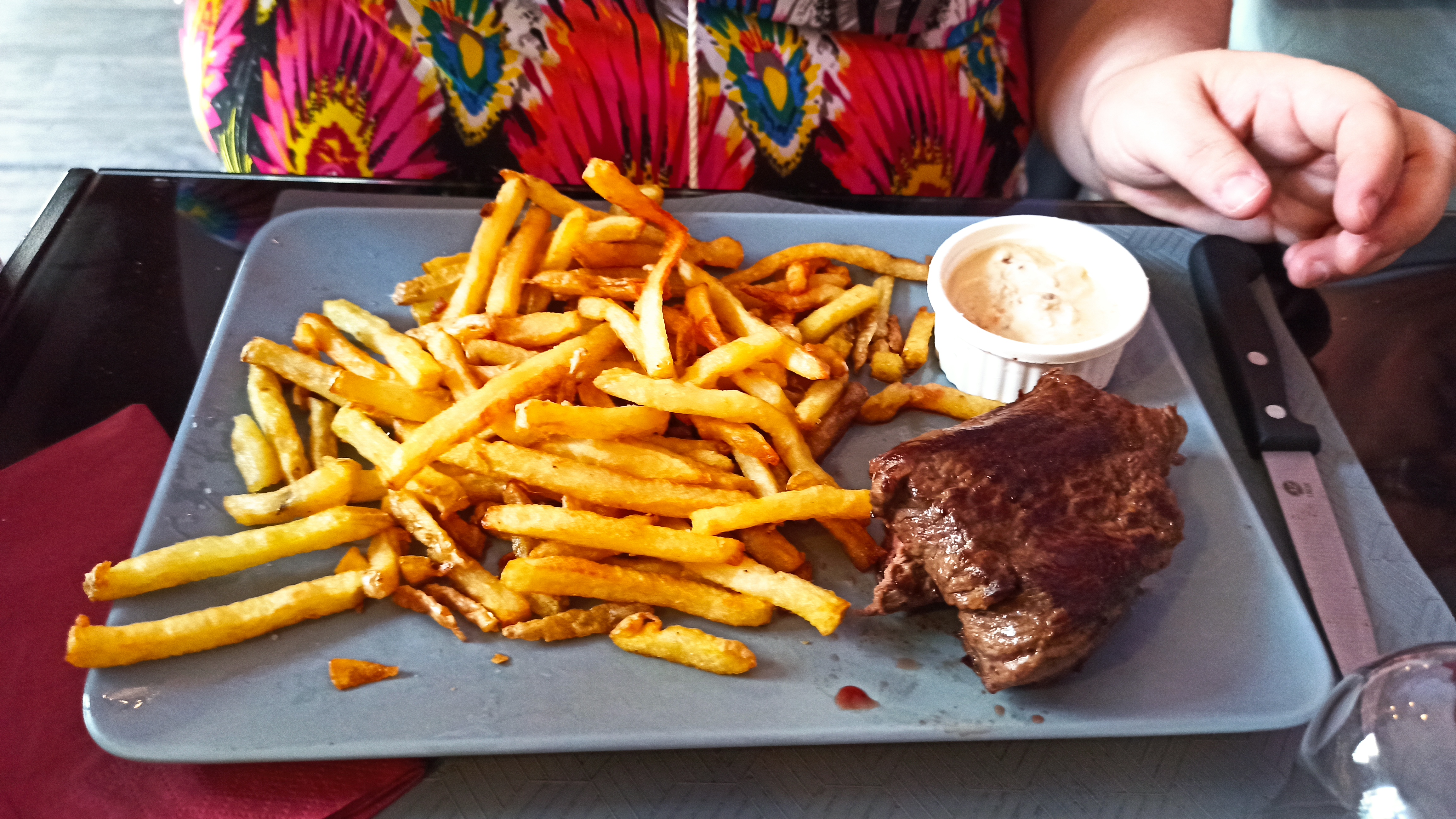 Nous avons très bien mangé. La viande était tendre et les frites très bonnes, juste comme il faut.