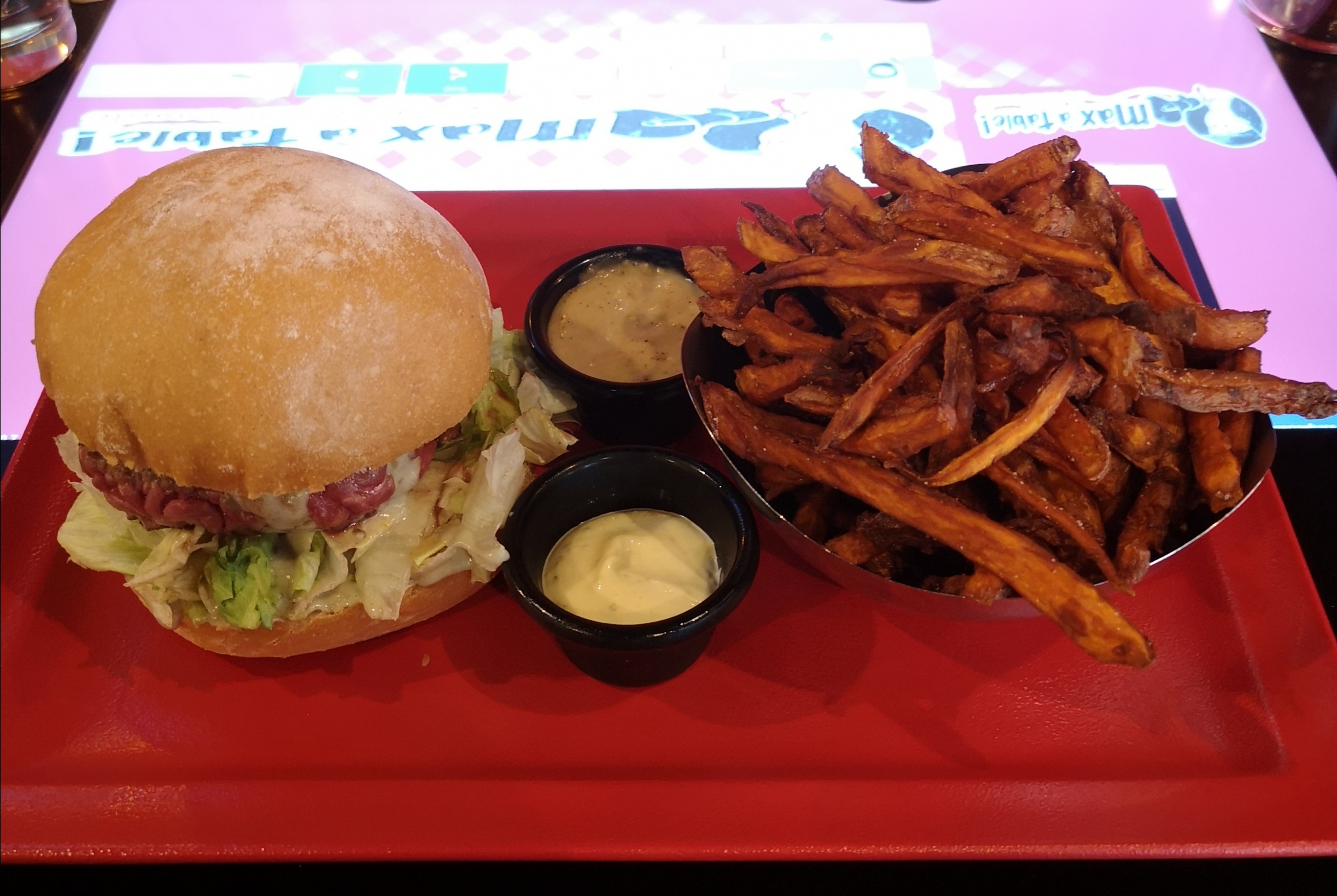 Très bonne adresse ! Les produits proposés par Max à Table sont de très bonne qualité avec des ingrédients soigneusement sélectionnés et ça se voit et se ressent au niveau du goût dans le hamburger 🍔 Le pain est très aéré et c'est vraiment agréable de croquer dedans 🤩 et les frites de patates douces sont un vrai plus ! Je recommande ! 🍟