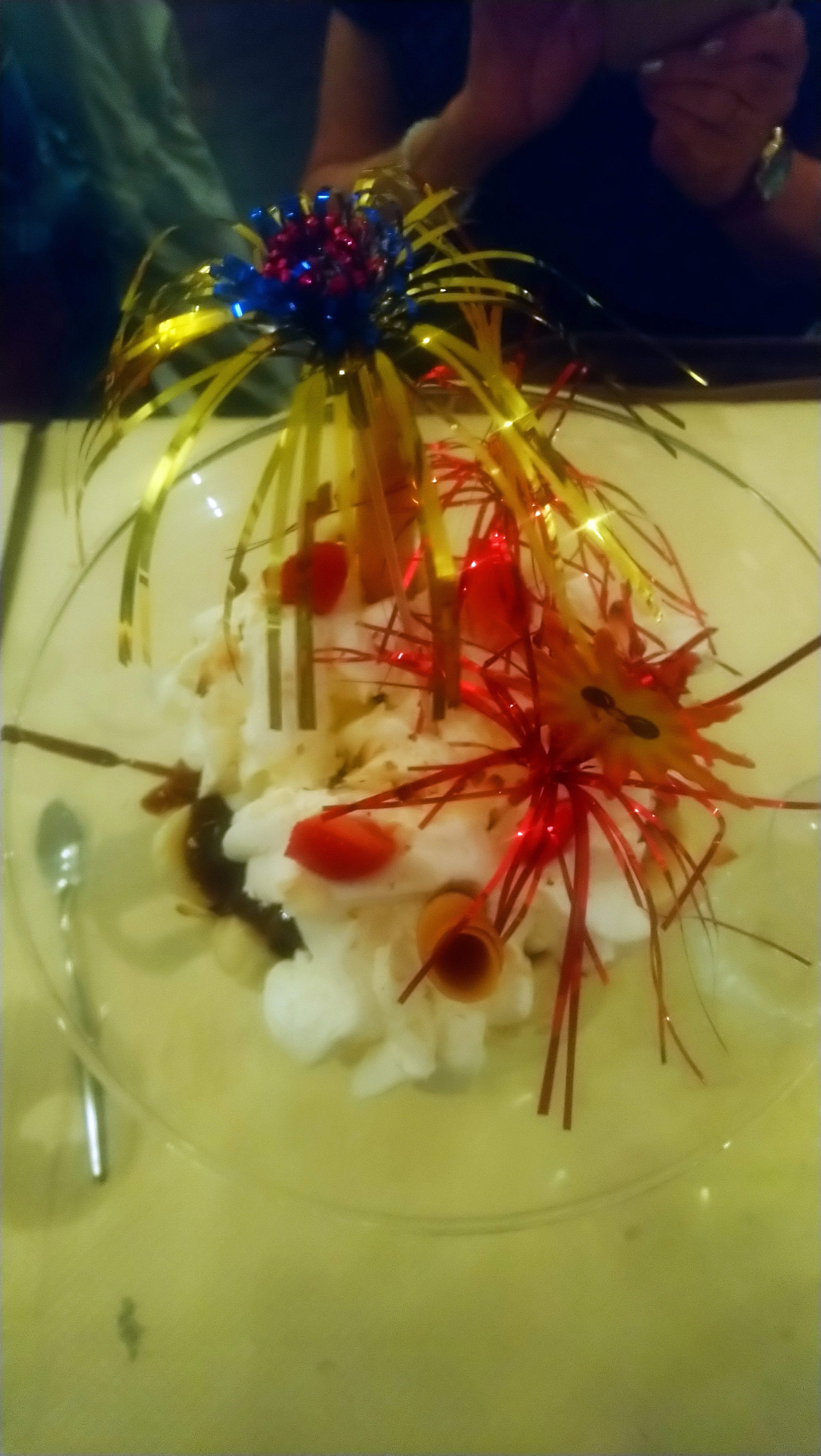 Nous étions une grande table familiale (12 per), mais le service mal accueilli, le patron pas aimable nous servait en faisant glisser les boissons sur la table et fait tombé une verre n'a pas l'amabilité de remetre du sirop dans le verre renversé, et sert des verres d'eau dans des verres à liqueur !!!
