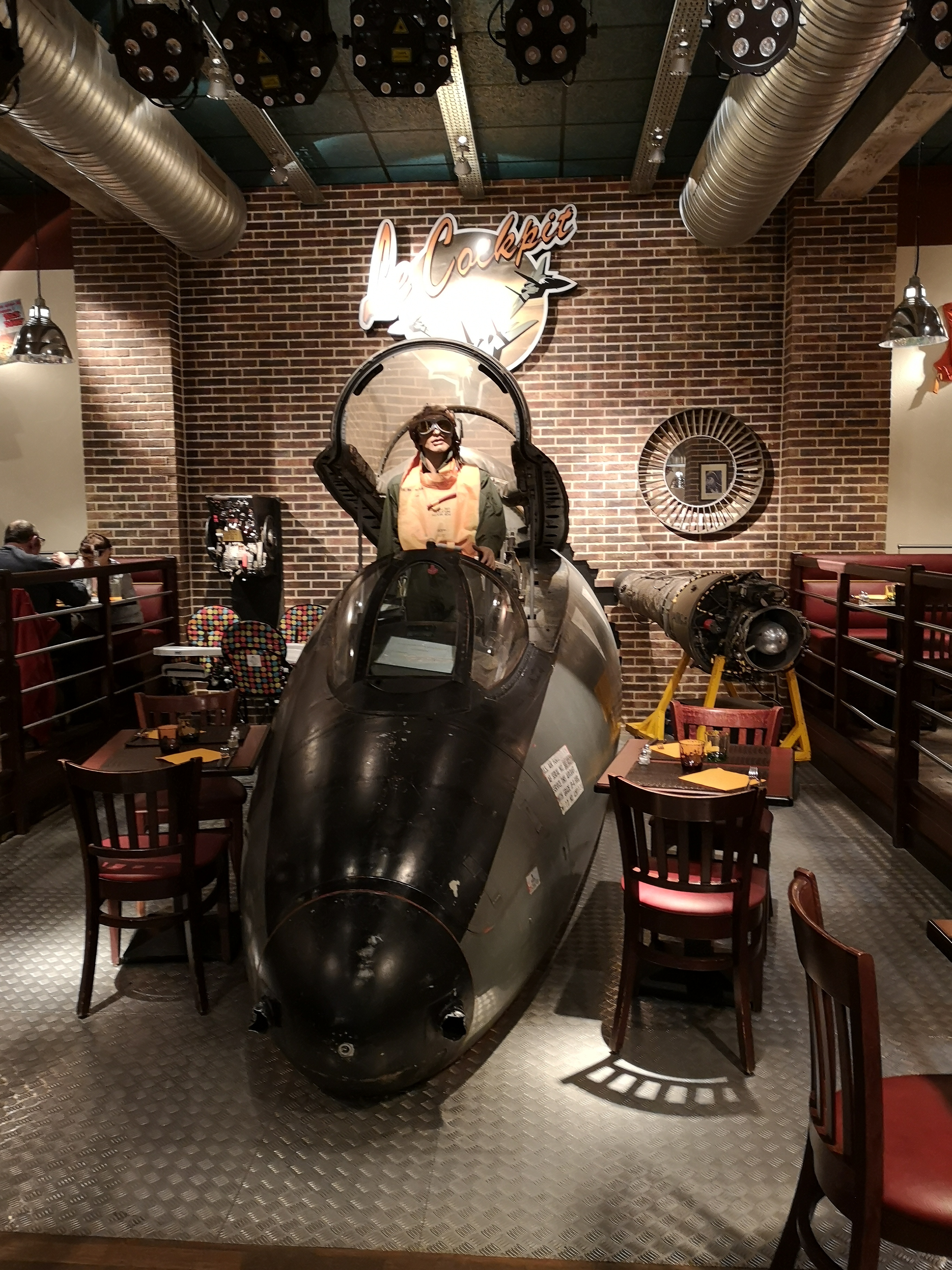 Endroit sympa avec une déco atypique. Un cockpit d'avion de chasse dans le milieu du restaurant, marrant. Nourriture très correcte et bonne. Les serveuses sont sympathiques. Client régulier je passe de bons moments.
