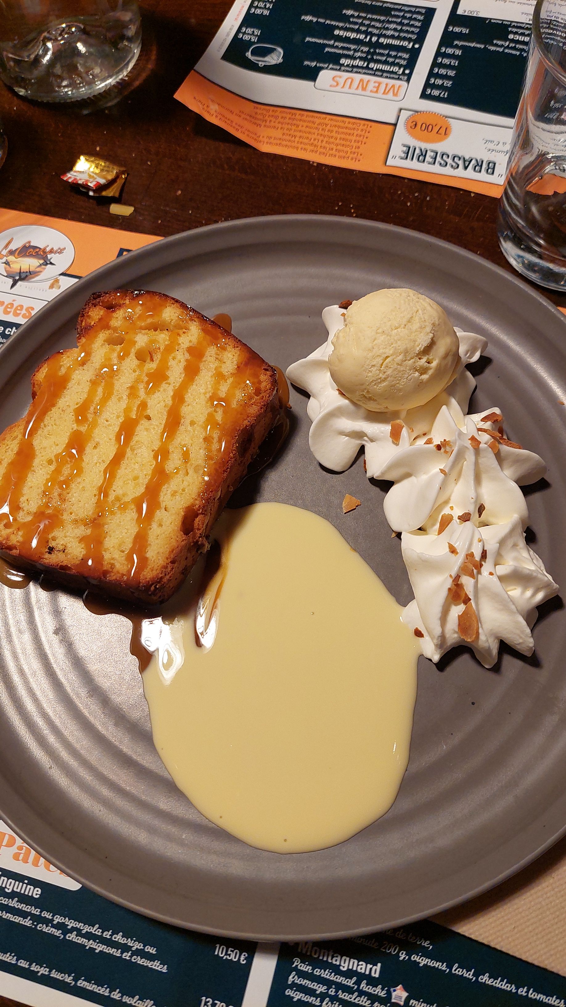 Cadre superbe, serveuse et serveur sympathique, la tartiflette normande excellente.