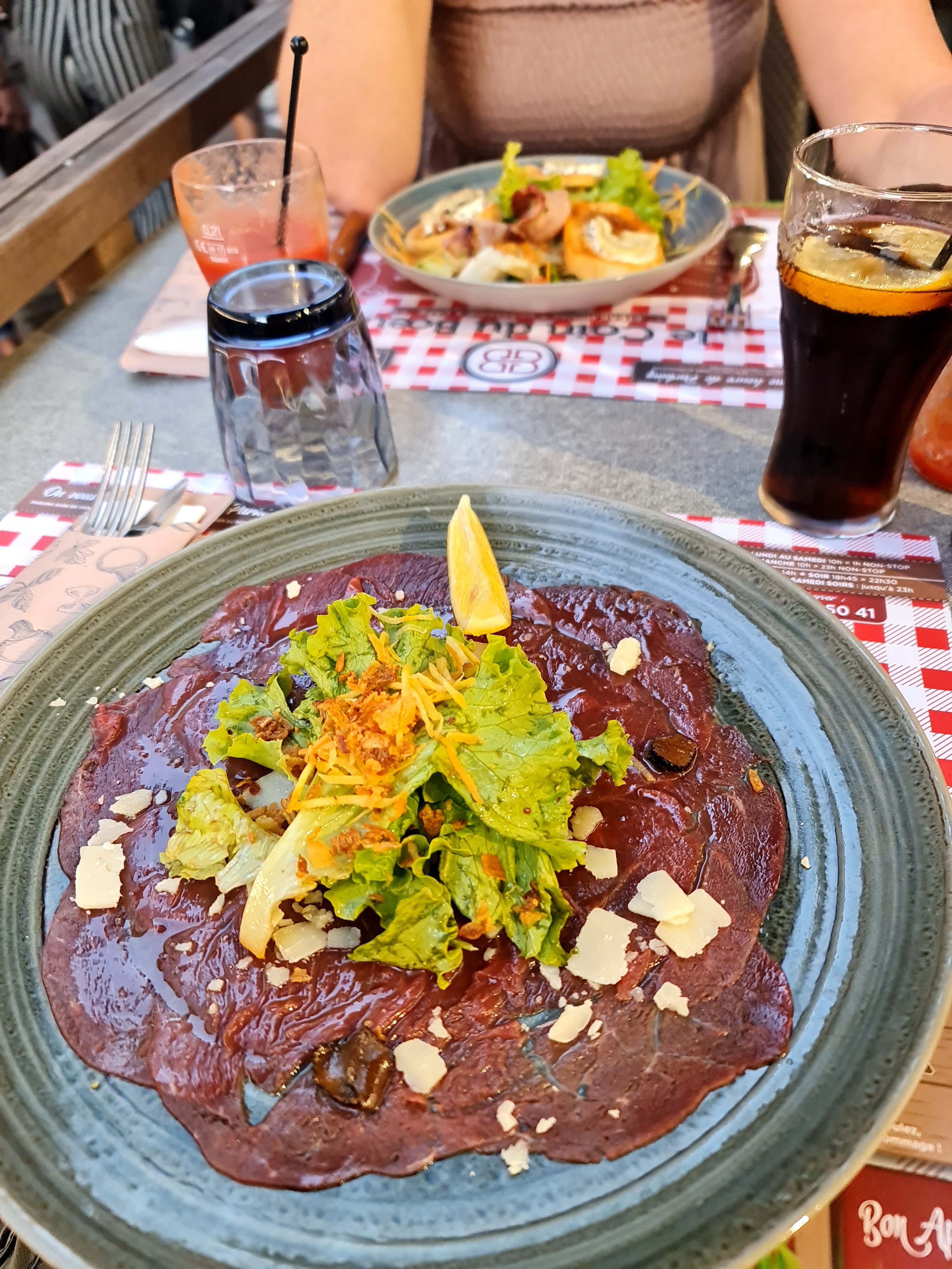 La serveuse était très souriante et avenante. J'ai choisi le menu entrée+ plat à 22€. Après je n'avais plus faim. Os à moelle et bavette frites. J'ai vraiment apprécié le service simple mais chaleureux et la serveuse accessible souriante. Merci.