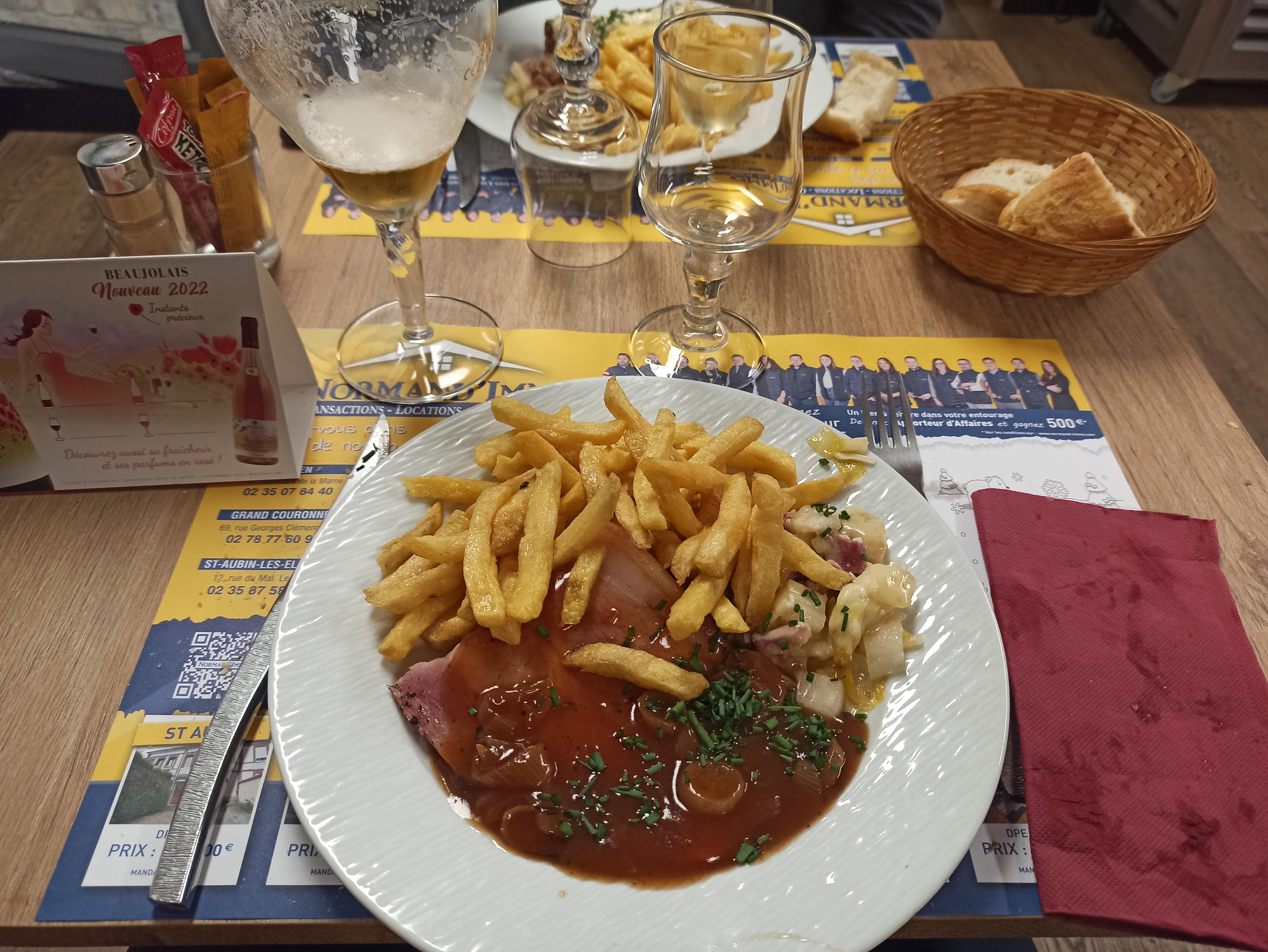 Bon repas. Dommage qu'il n'était pas signalé qu'il n'y avait plus de steack mais uniquement du jambon braisé.