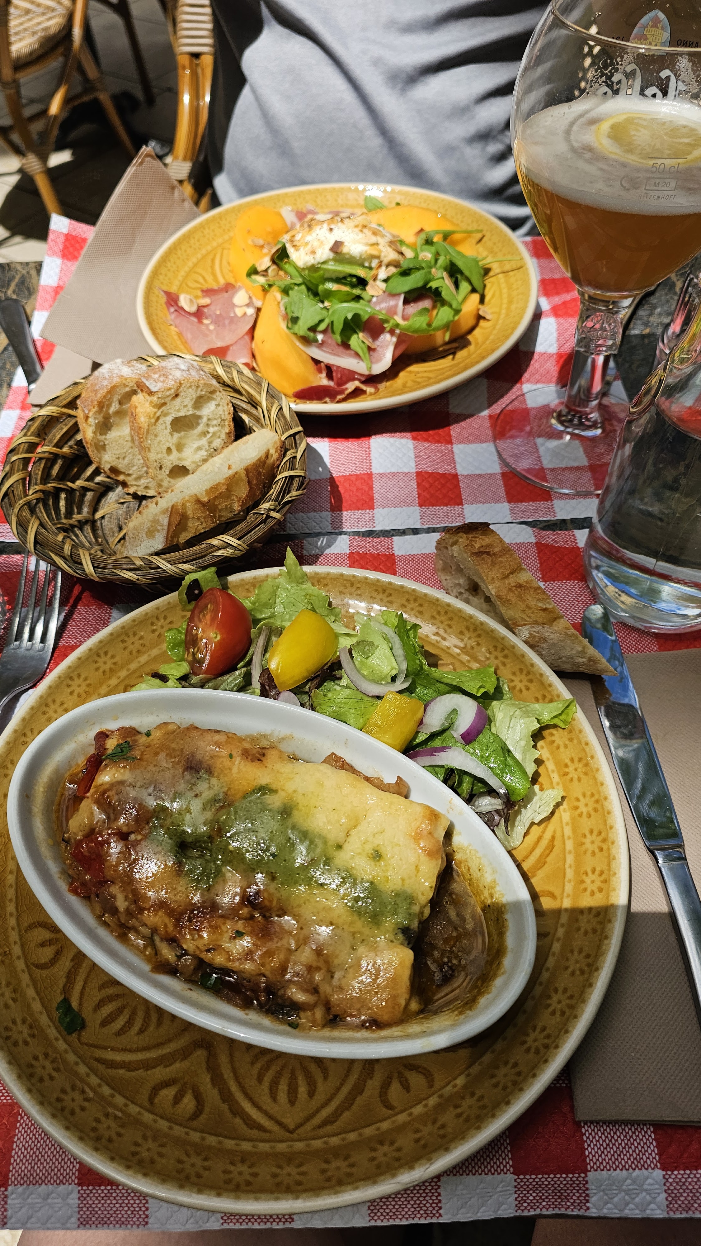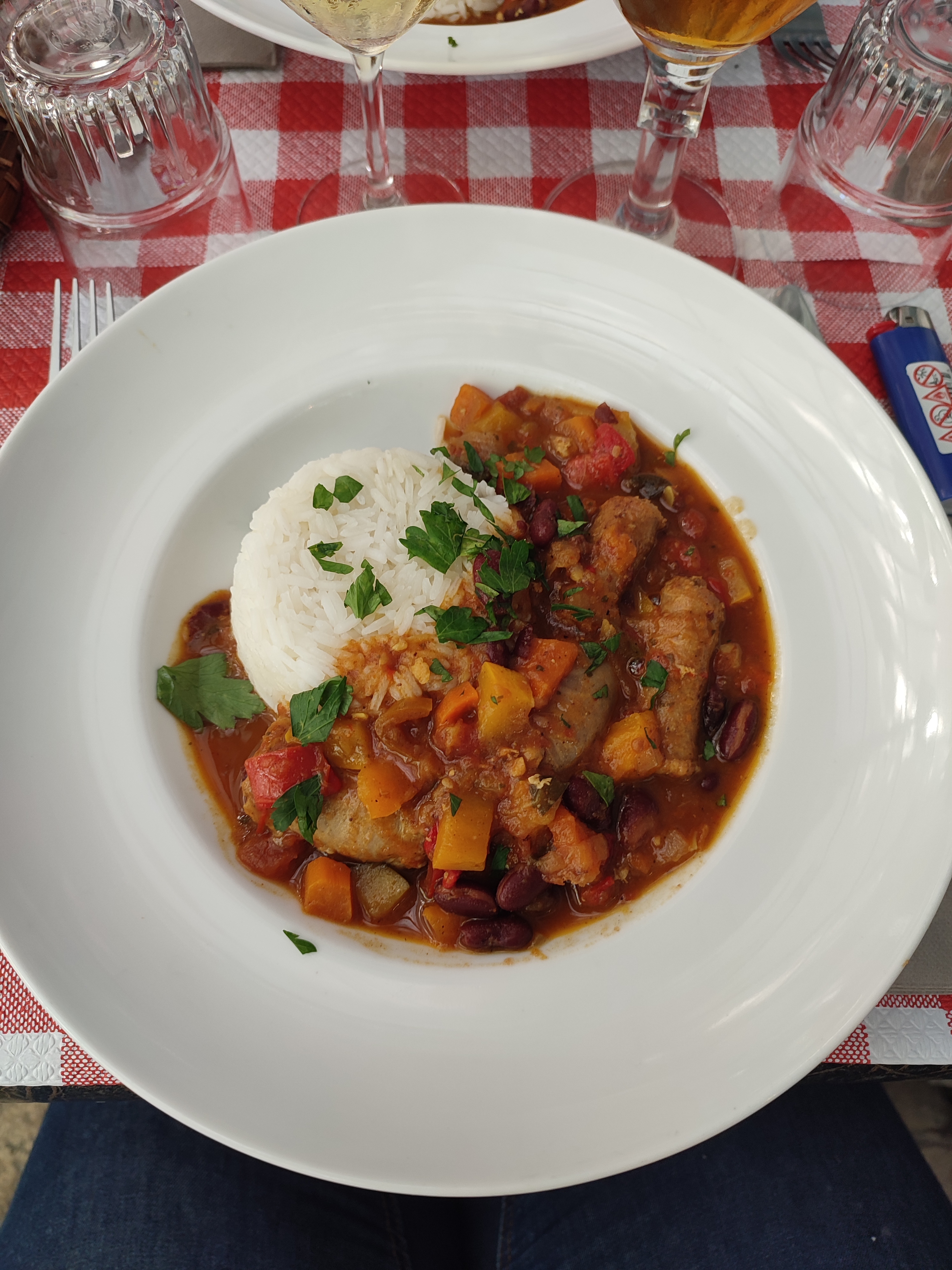 Cuisine familiale tout a fait sympathique et bon accueil malgré l'afflux de touristes ce dimanche à Uzès ! Nous avons pris une gardianne de toro et des lasagnes d'été. Belle surprise pour les lasagnes !