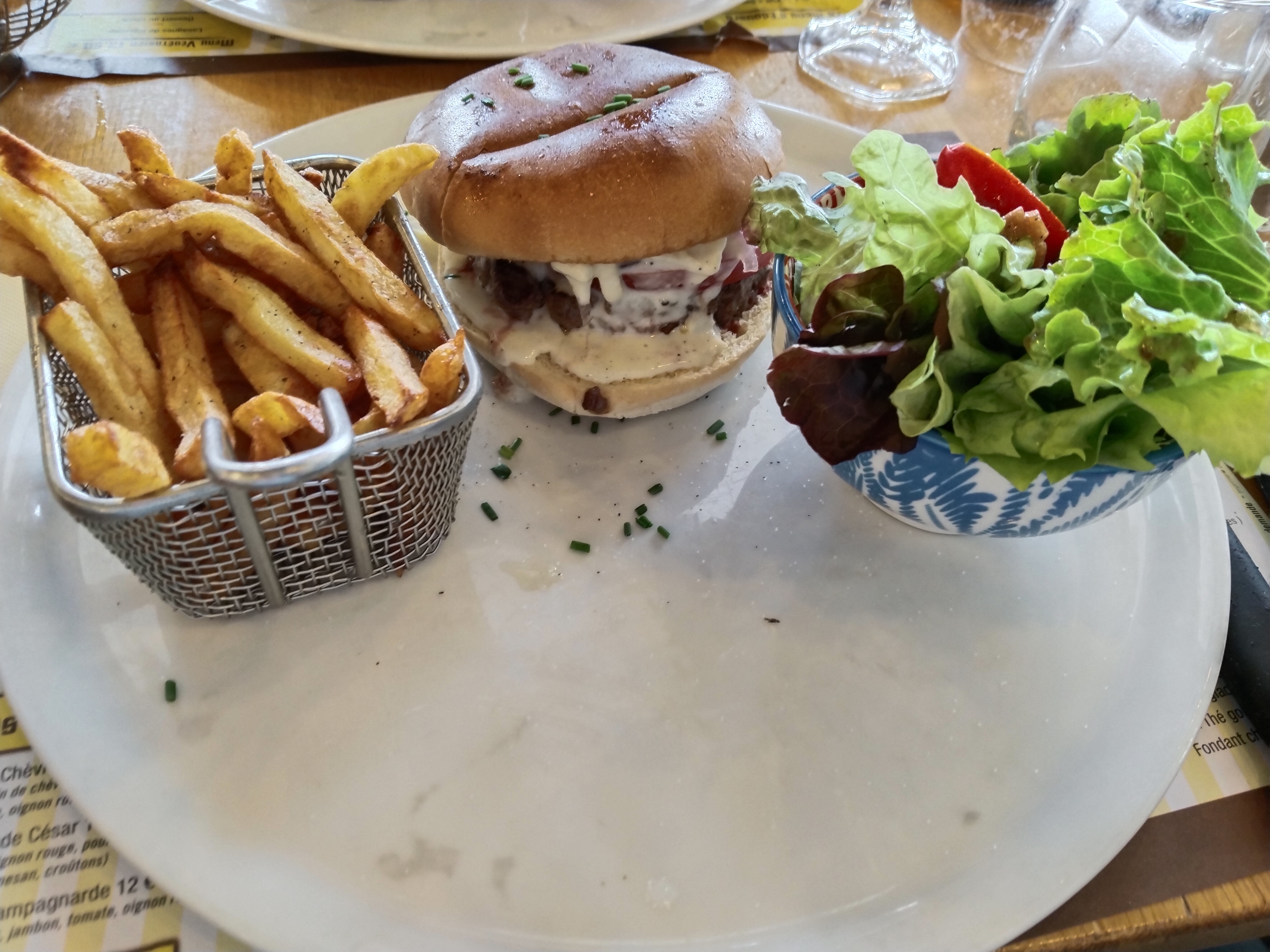 Lundi 6 Novembre nous sommes allés déjeuner à 3 personnes nous avons super bien mangé alors que à côté de nous une table de vieilles taupes aigris et mal embouchés pour moi je pense qu'elles viennent de la banlieue parisienne pour avoir un langage pareil et être aussi infecte avec le personnel. Personnel a l'écoute du client ( de vrais amours ) quand a la patronne elle est très professionnelle je recommande cet établissement