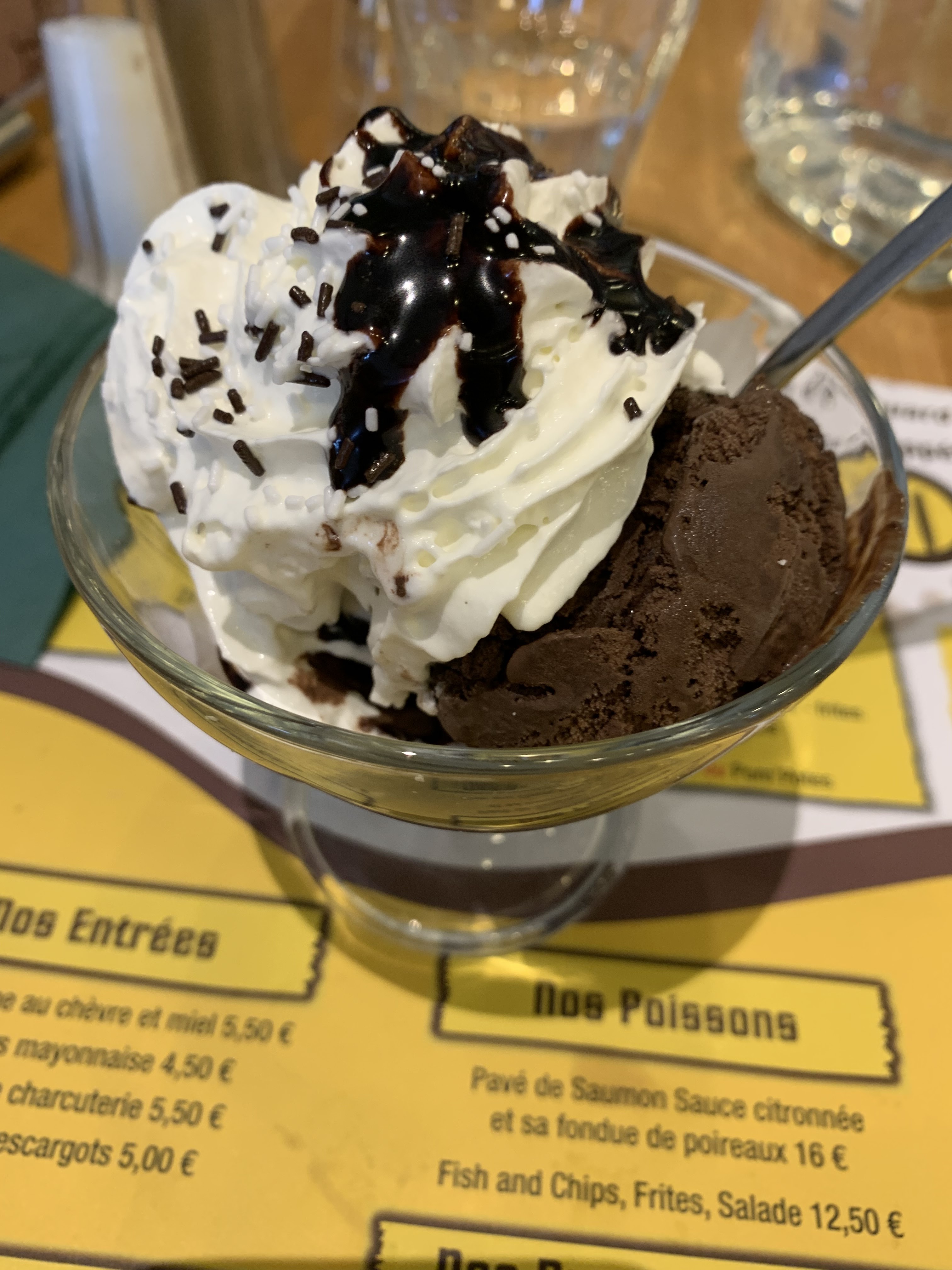 Commander un chocolat liégeois en dessert et se retrouver avec 2 boules de glaces et de la chantilly C’est plutôt moyen 5,60€ Ça fait un peu beaucoup cher Je suis venu une fois Eh bien j’ai compris que je reviendrais pas