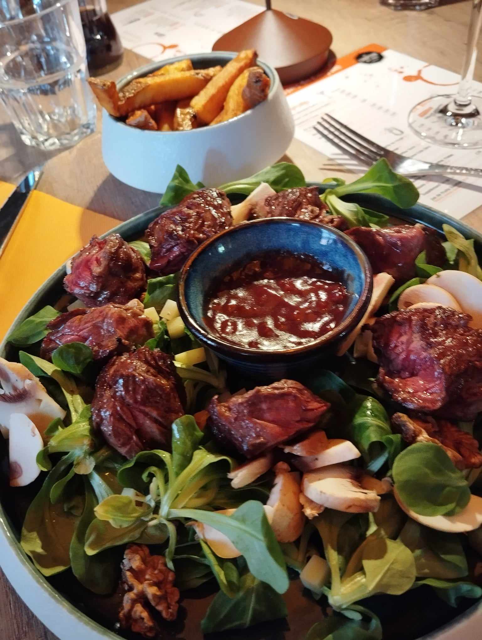 très agréable moment passé ici. cuisine au top et service agréable. Nous avons testé le Burger, l'onglet ainsi que le magret et c'est Top! de plus les tarifs sont raisonnables. Adresse où je reviendrai sans aucun doute.