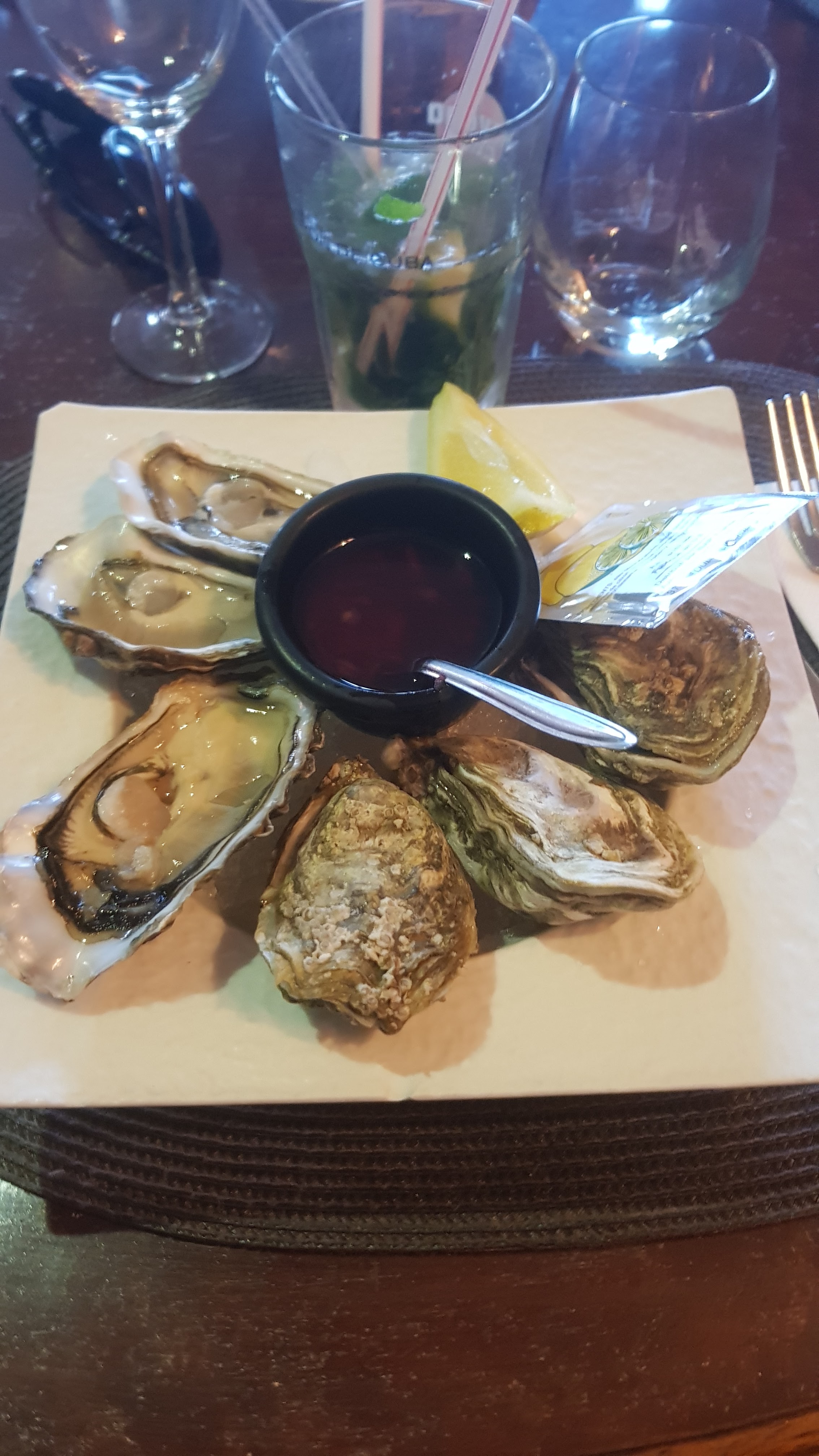 Personnel sympa. Au moment de payer, le patron m'a demandé avec une drôle de sollicitude ça a été les huîtres?. Sauf que la dernière n'est pas passée... et je n'ai pas eu le réflexe de la recracher (trop bien élevée). Résultat 3 jours d'intoxication alimentaire. Pour un restaurant de fruits de mer, c'est plus que léger de m'avoir servi ces huîtres pas fraîches...