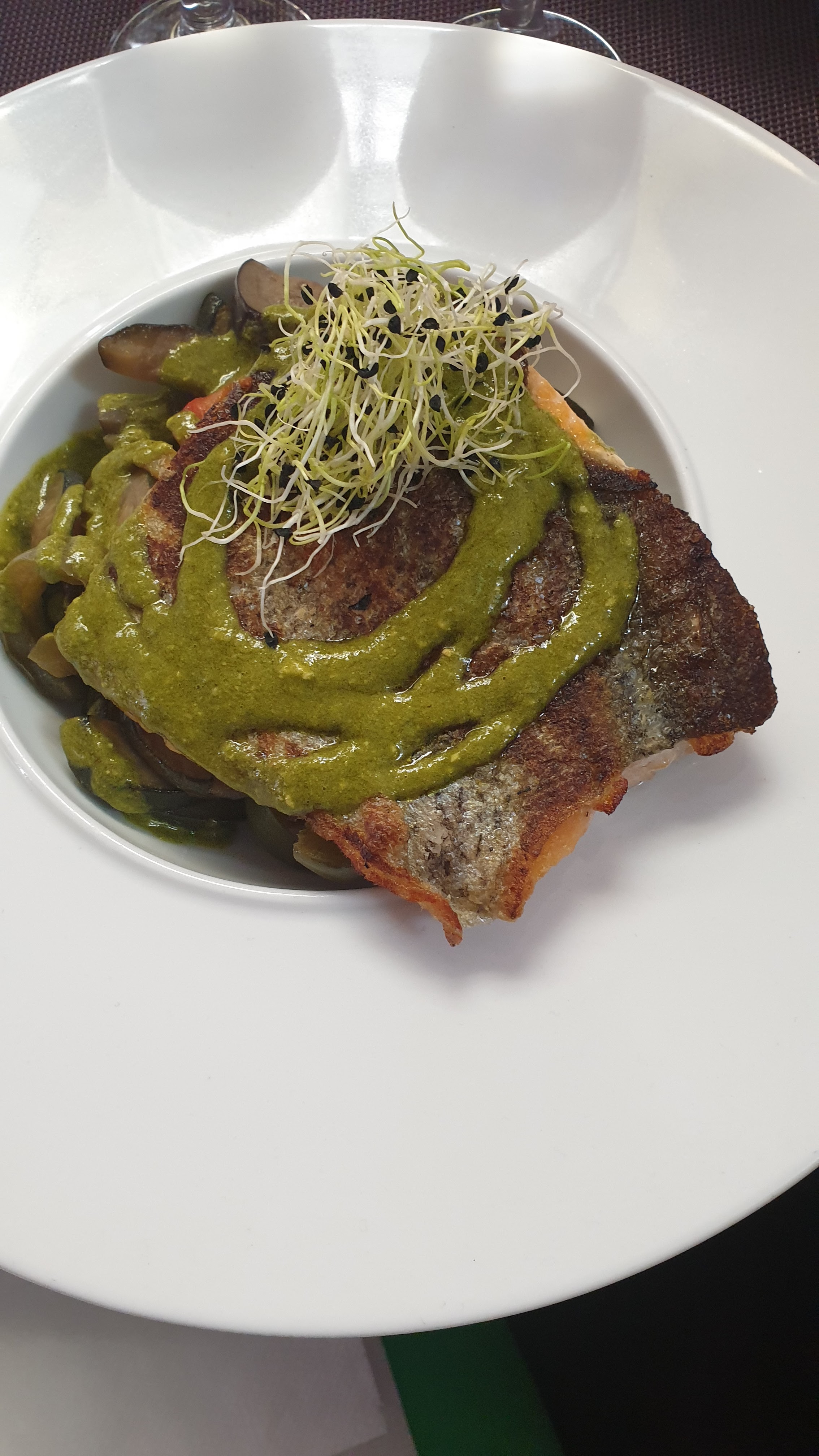 Le repas etait bon mais l'accueil moyen et le serveur derrière un sourire me prend de haut. Le conseil du vin au verre n'est pas très clair et on me sert un verre deux lignes plus bas et deux fois plus cher. En résumé bilan mitigé et je n'y retournerais pas.