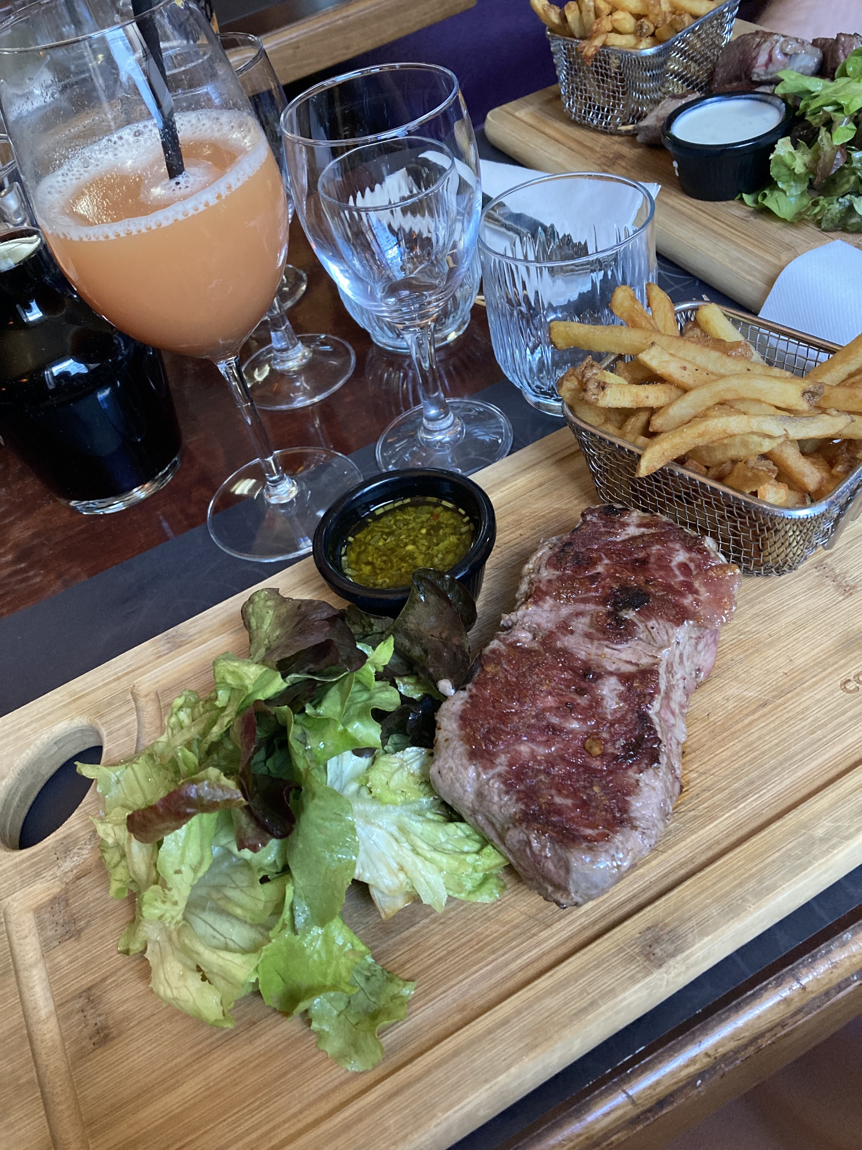 Un très bon restaurant, mais quelques petits points sont à améliorer (service trop rapide entre l’apéro et le repas, une erreur de saisie de plat lors de la commande, la musique un minium trop forte). Sinon rien a redire sur la cuisson de la viande ainsi que sur les plats proposés.