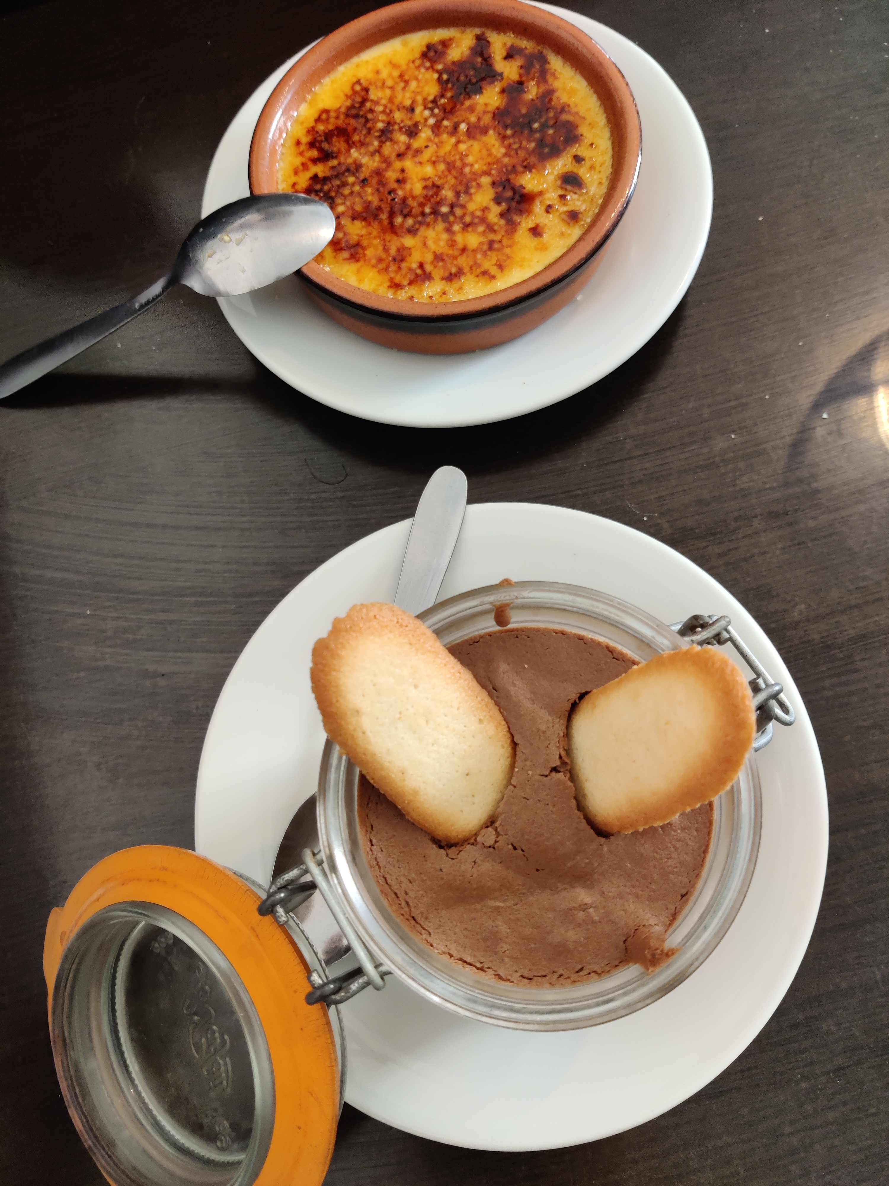 Service très sympathique. On sent que Fatima est heureuse de vous accueillir à sa table. Le déjeuner était très bon. Je n'ai eu le temps de prendre que le dessert en photo - mousse au chocolat et crème brûlée. Bref, on recommande.
