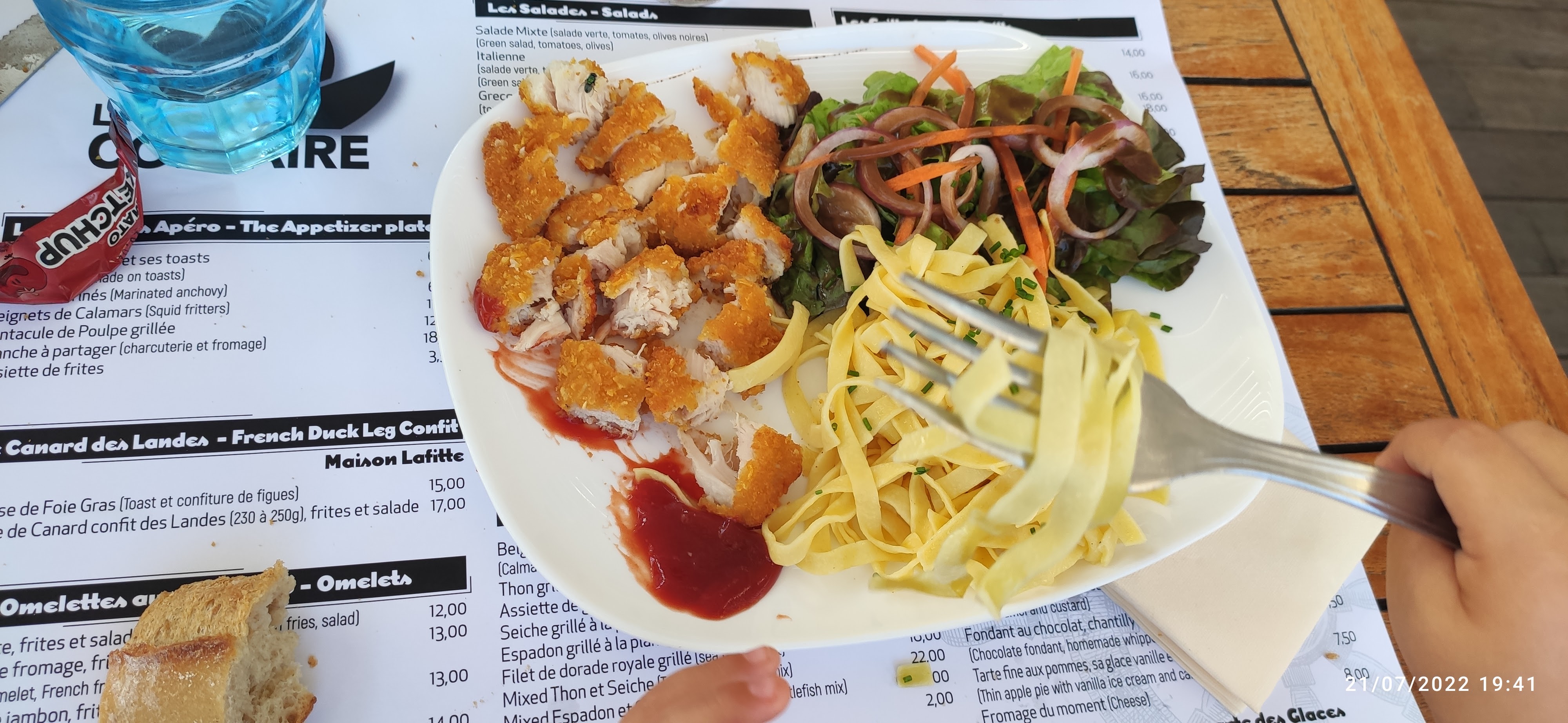 Deuxième année que nous venons mangé. Nous avions réservé une table. Carte réduite mais annoncé lors de notre réservation. La dorade etait parfaite ! Les nuggets pour les enfants très bien. La pizza était correct. Apres dommage elle a 20h50 il n'y avait plus de fromage de chèvre pour avoir une pizza 4 fromages. Avant 22h il n'y avait plus de pizza.... Les glaces toujours aussi copieuses. Parcontre dommage au menu enfant les glace sont des cônes.... Mes enfants auraient préféré une boule de glace. En ce qui concerne le service, il y avait du monde mais très bien. Juste dommage la serveuse qur nous avions etait assez froide, alors ok elle était dans le speed mais un sourire et plus accueillante ne coûte rien.
