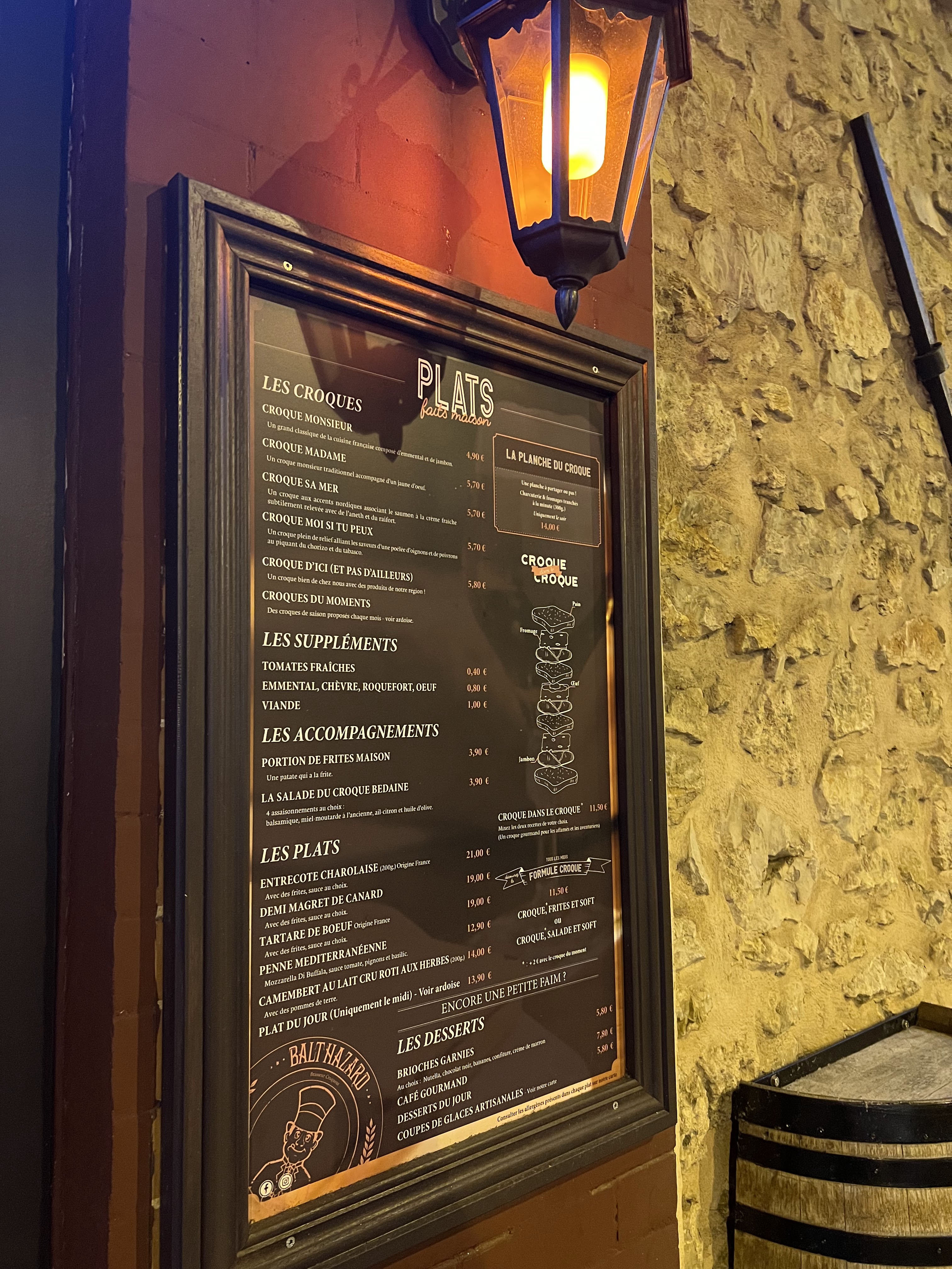 Commander à emporter, pas mauvais mais beaucoup trop cher pour ce que c'est, 9€ et quelques le croc sans les frites en accompagnement??? Je trouve que c'est abusé....
