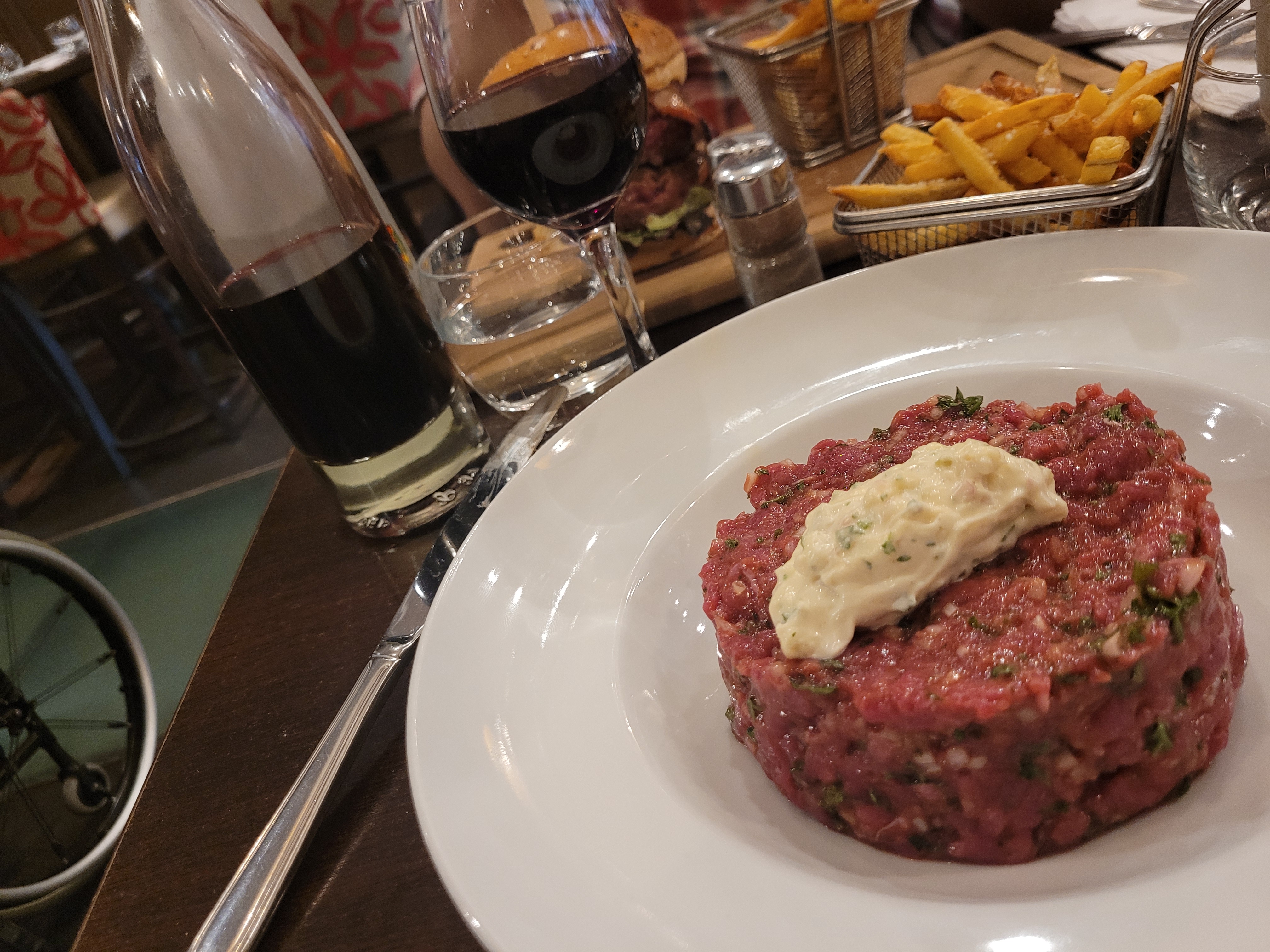 2 diners et toujours un plaisir. Très bon tartare version 240gr. Poisson et viande. Terrasse très agréable. Tout comme le personnel qui n hésite pas à vous refaire une portion de frites même si vous êtes les derniers clients et cuisine presque fermée.