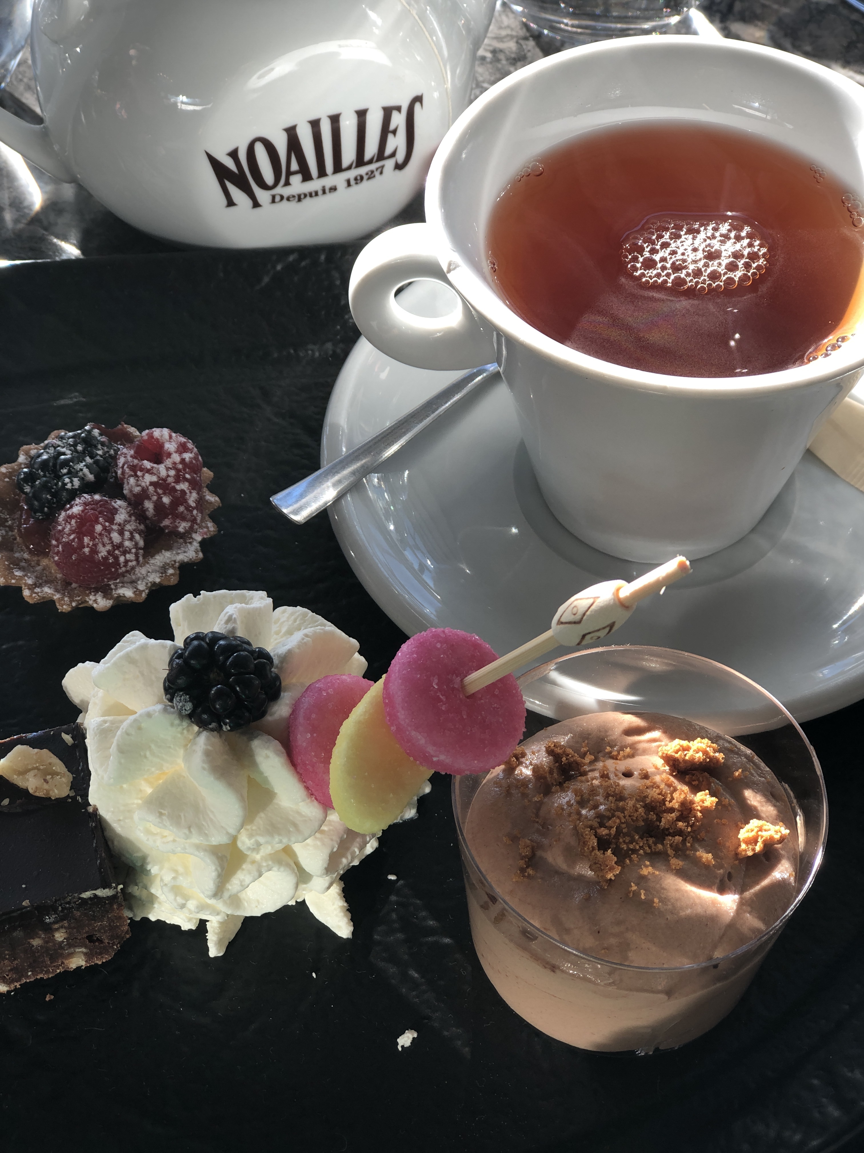 Points positifs : Plat du jour et thé gourmand délicieux. Service rapide Points négatifs : manque d’écoute client, demande de pass sanitaire militaire, oubli de transmettre la carte, store ne fonctionne plus, soleil dans les yeux pendant 1/4 d’h, chauffage en hauteur tombe directement sur les clients (prévoir le maillot de bain). 😀