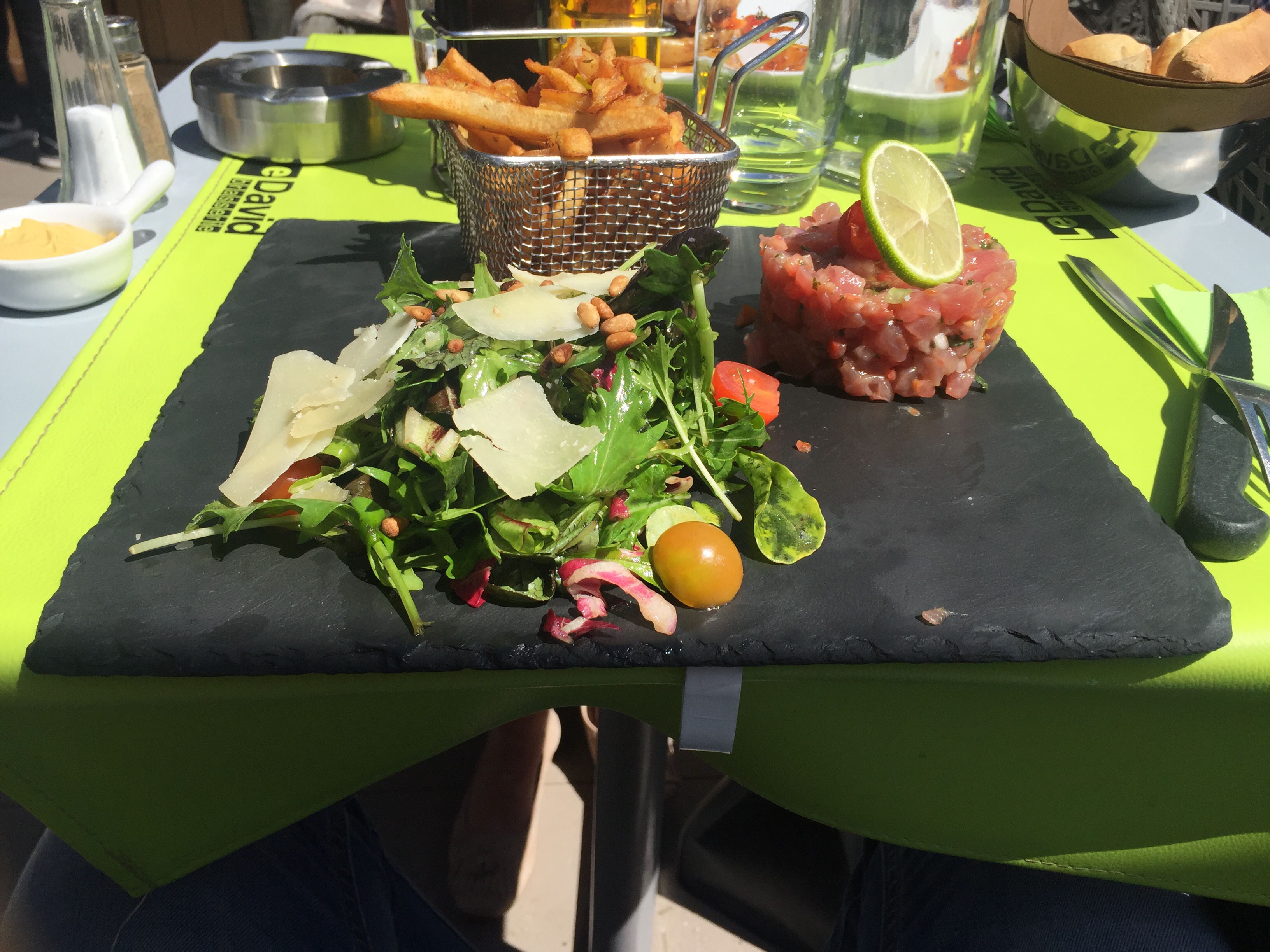 Tartare de thon moins bien que d'habitude. Pas de salade, pas d'oignons, pas d'avocat, des frites molles et grasses et du personnel qui s'engueule derrière le comptoir. Et j'ai été malade le soir