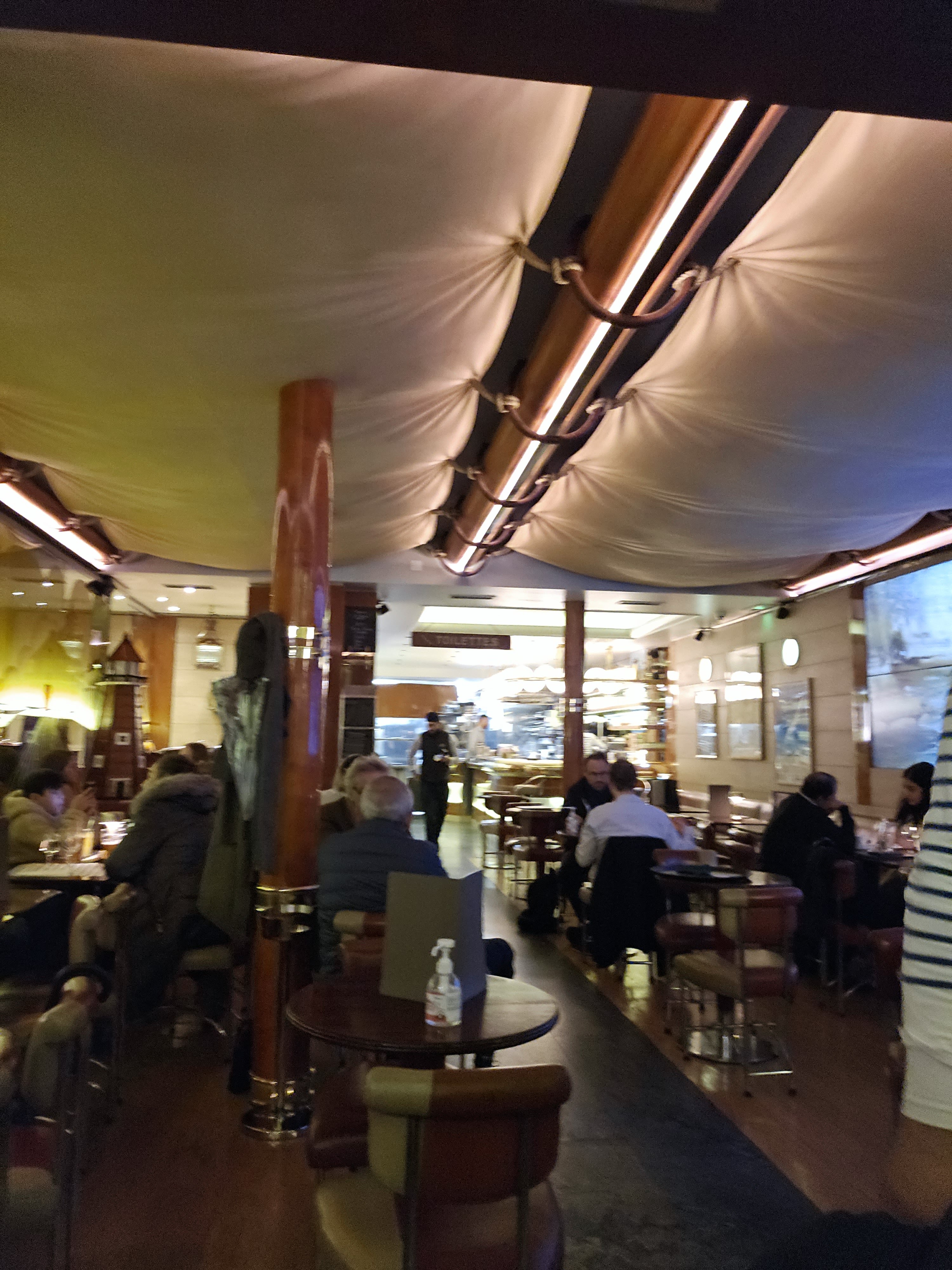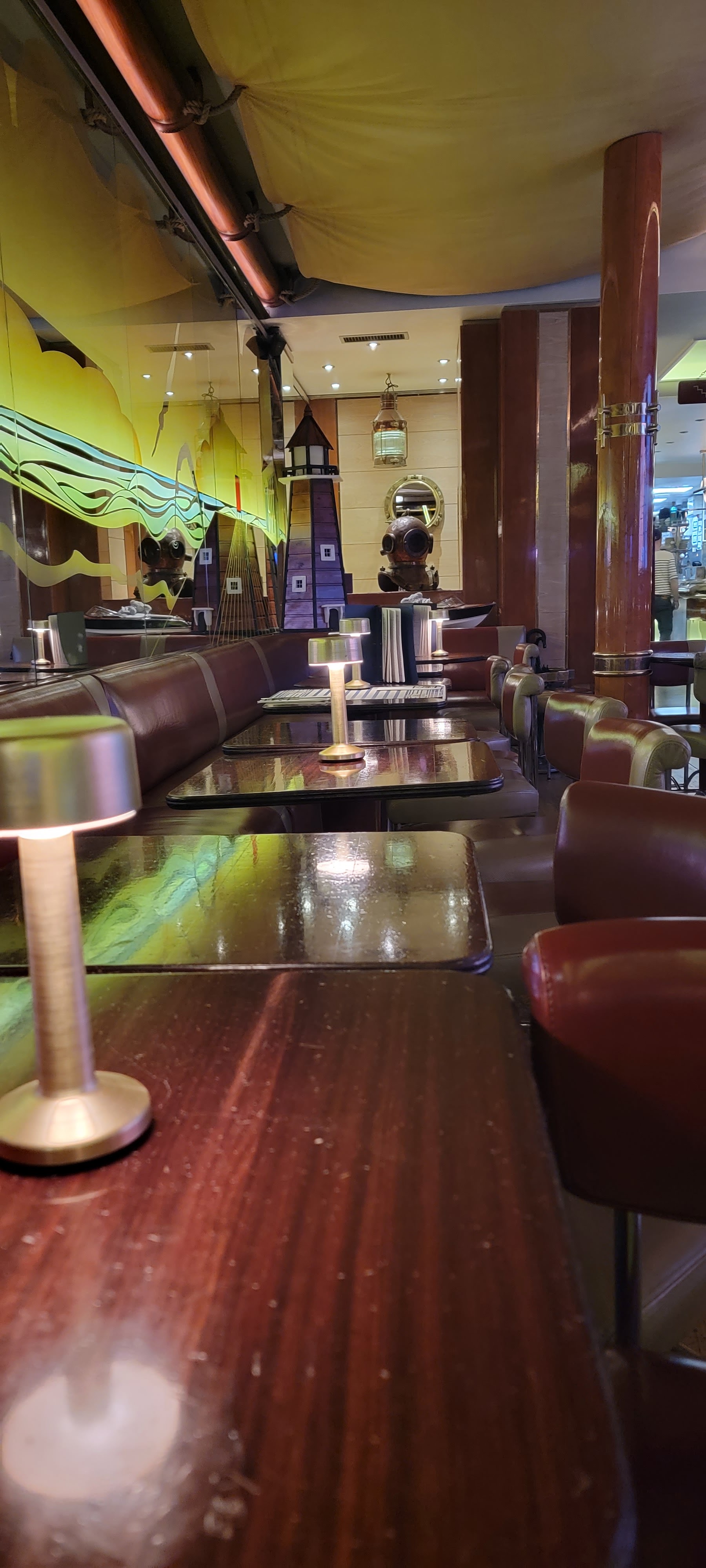 Très bon restaurant. Les plats sont très bons surtout pour leur Crème brulée faite maison qui est absolument délicieux, on peut même voir les petits grains de vanille dans la crème. Le décor est magnifique, on se sent comme si on était dans un bateau au bord de la mer à Deauville. Les serveurs sont aimables et tous en tenue de marins super sympa qui rend l'ambiance encore plus excitant et agréable.
