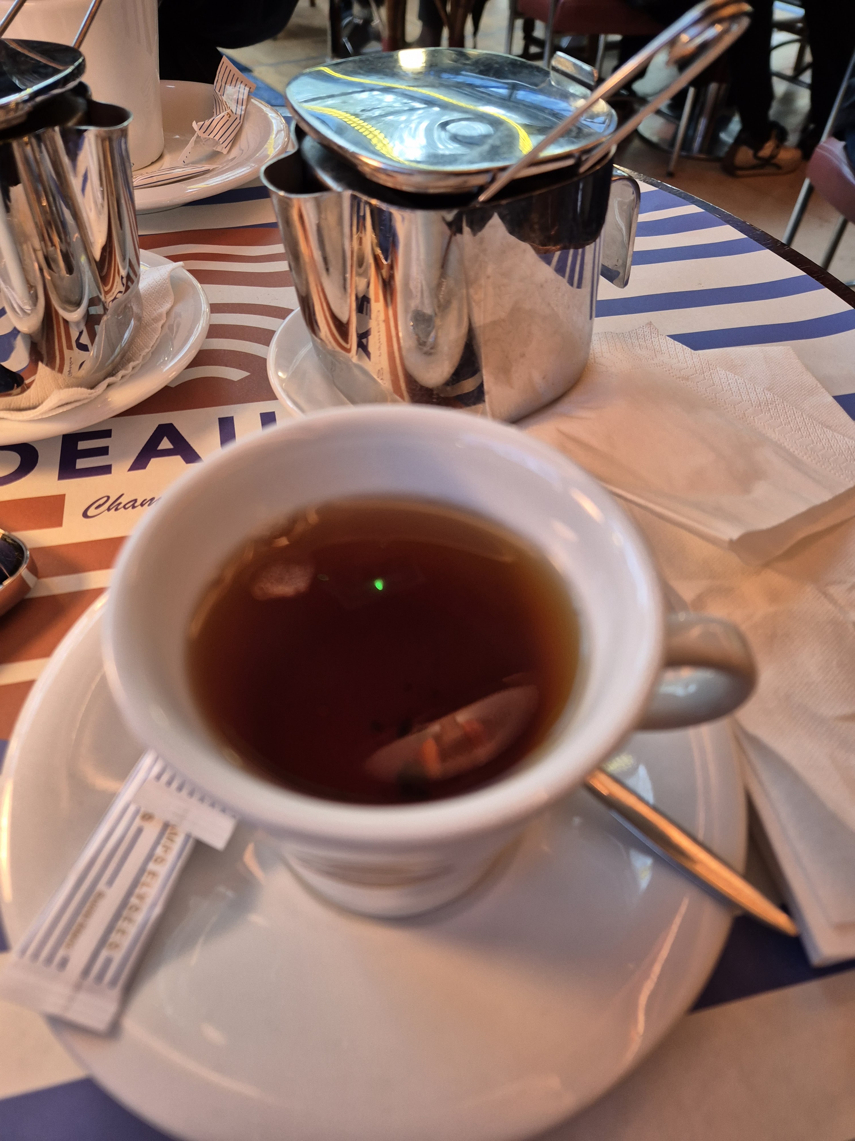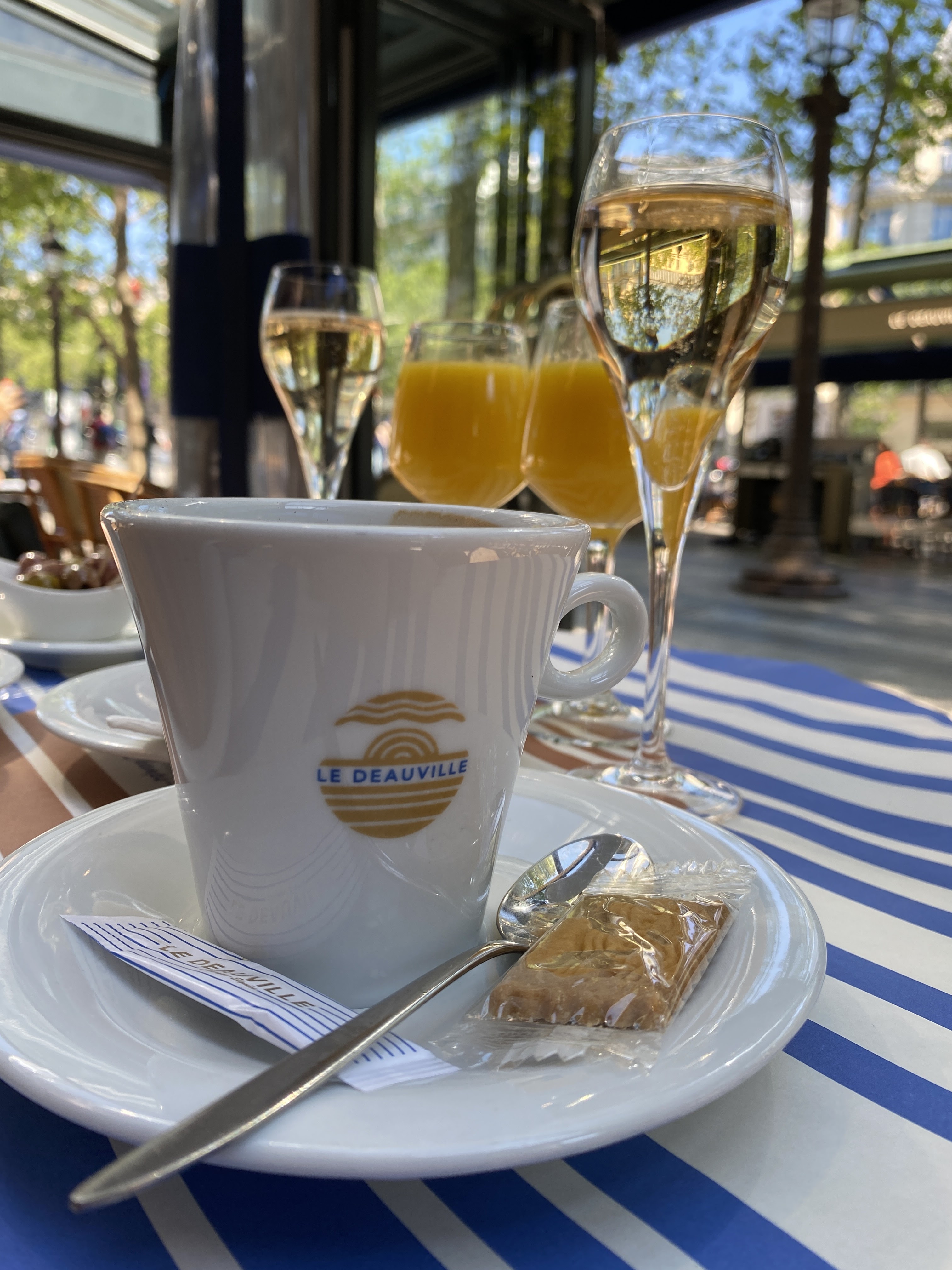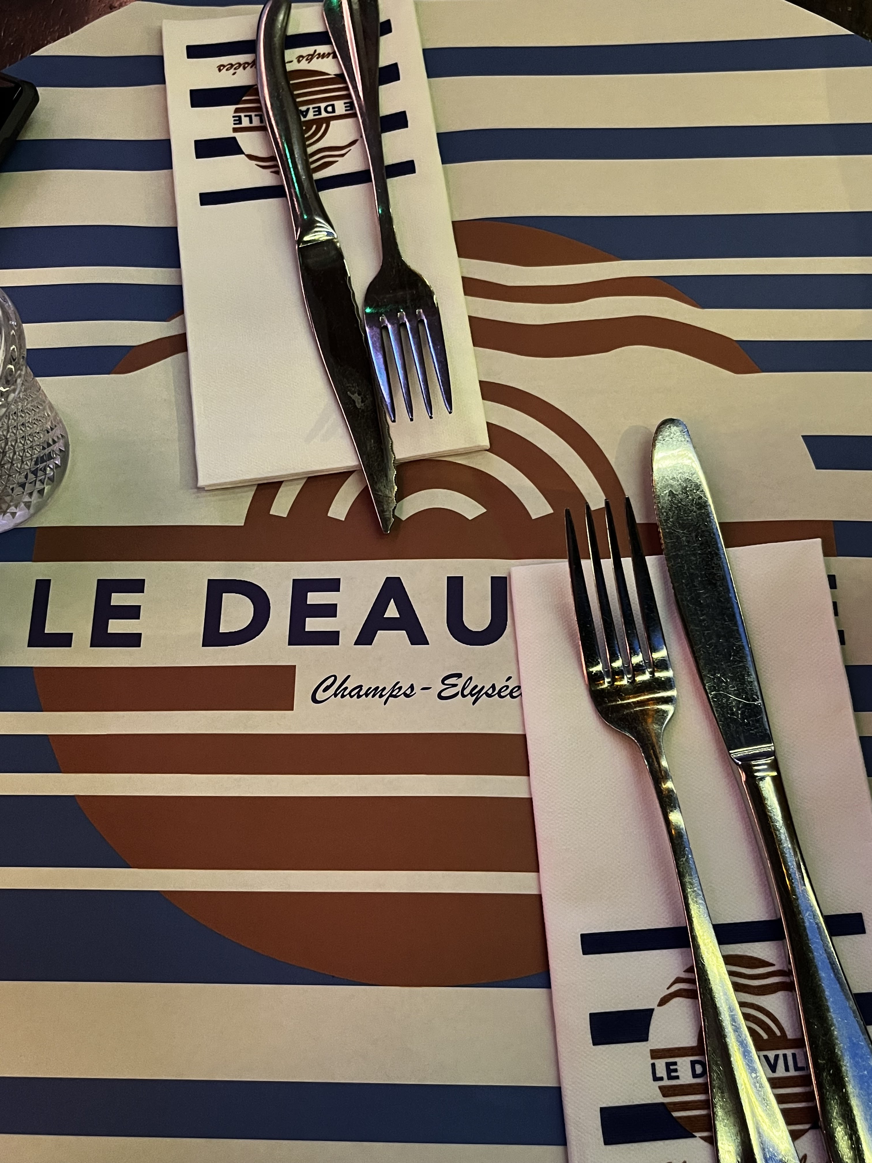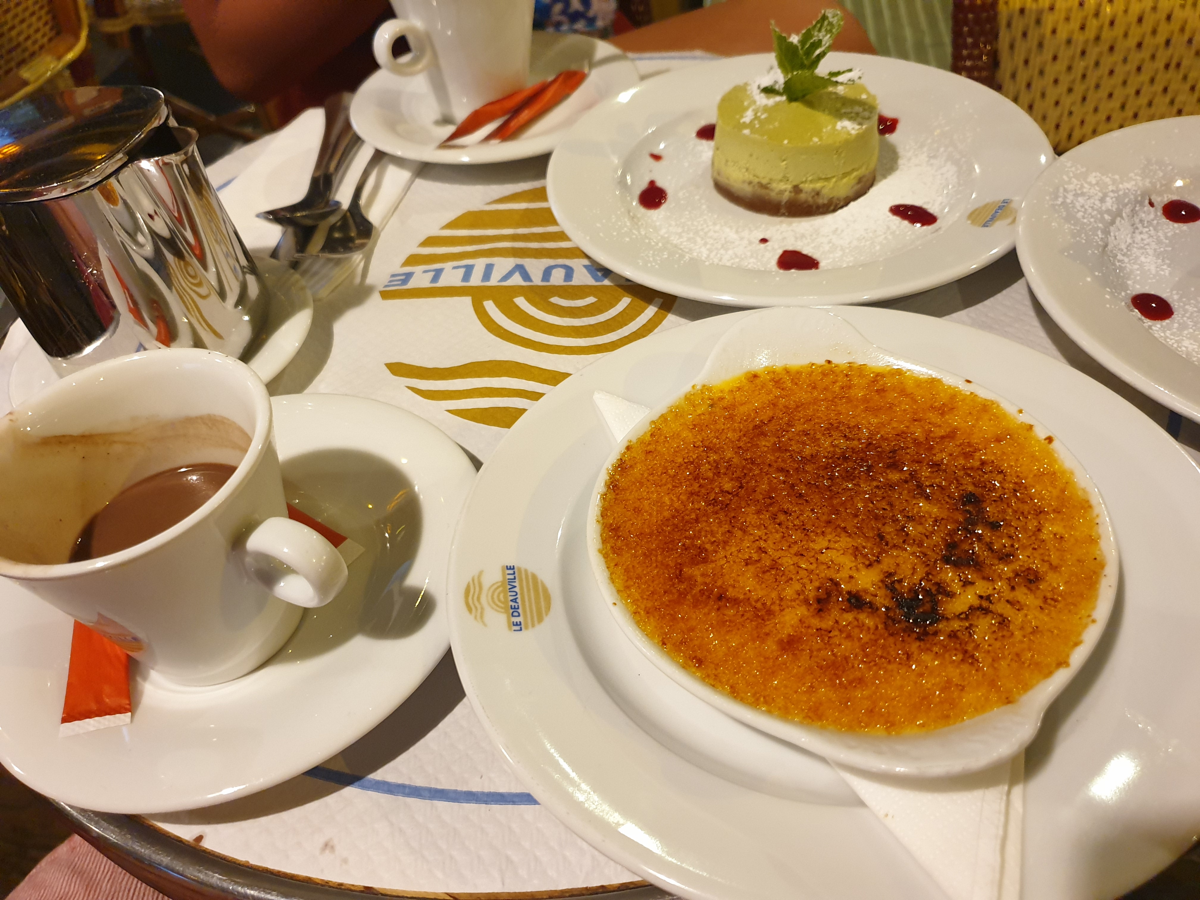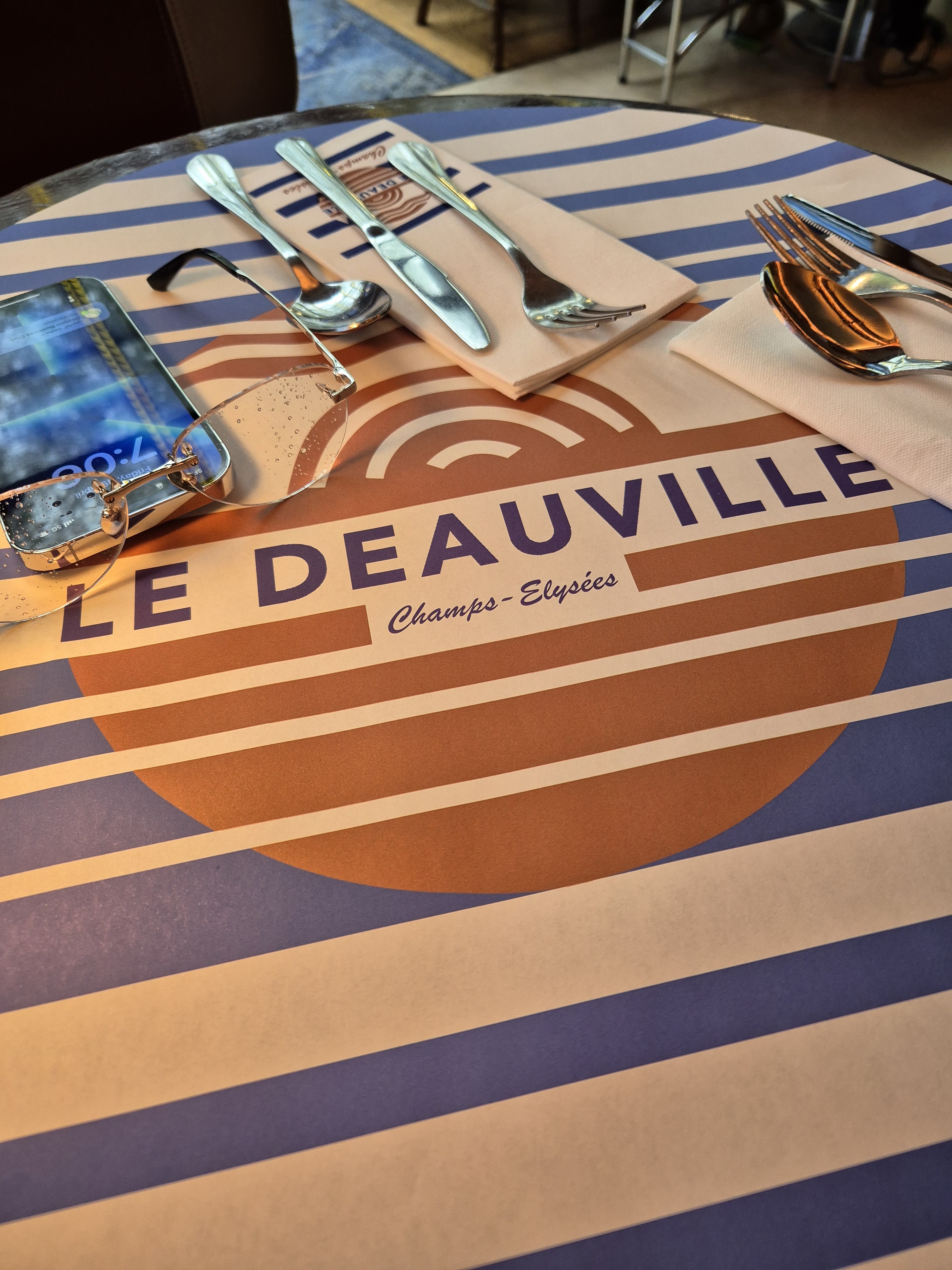 J'ai visité Le Deauville pour une tasse de café et une collation légère en marchant sur les Champs de Elysées, car le personnel était très accueillant et le menu était en anglais et en français (!). Les sièges extérieurs sont agréables par une journée ensoleillée si cela ne vous dérange pas de vous asseoir dans une zone fumeurs, les sièges intérieurs sont également chaleureux et confortables. J'ai commandé le gâteau fait maison et un café Americano. Bien que le prix soit plus élevé, cela vaut la peine de faire une pause lors de la descente de l'Arc de Triomphe jusqu'au Concorde. Conseil aux voyageurs : ils disposent de superbes toilettes à l'étage inférieur, si vous souhaitez vous rafraîchir avant de continuer votre visite.