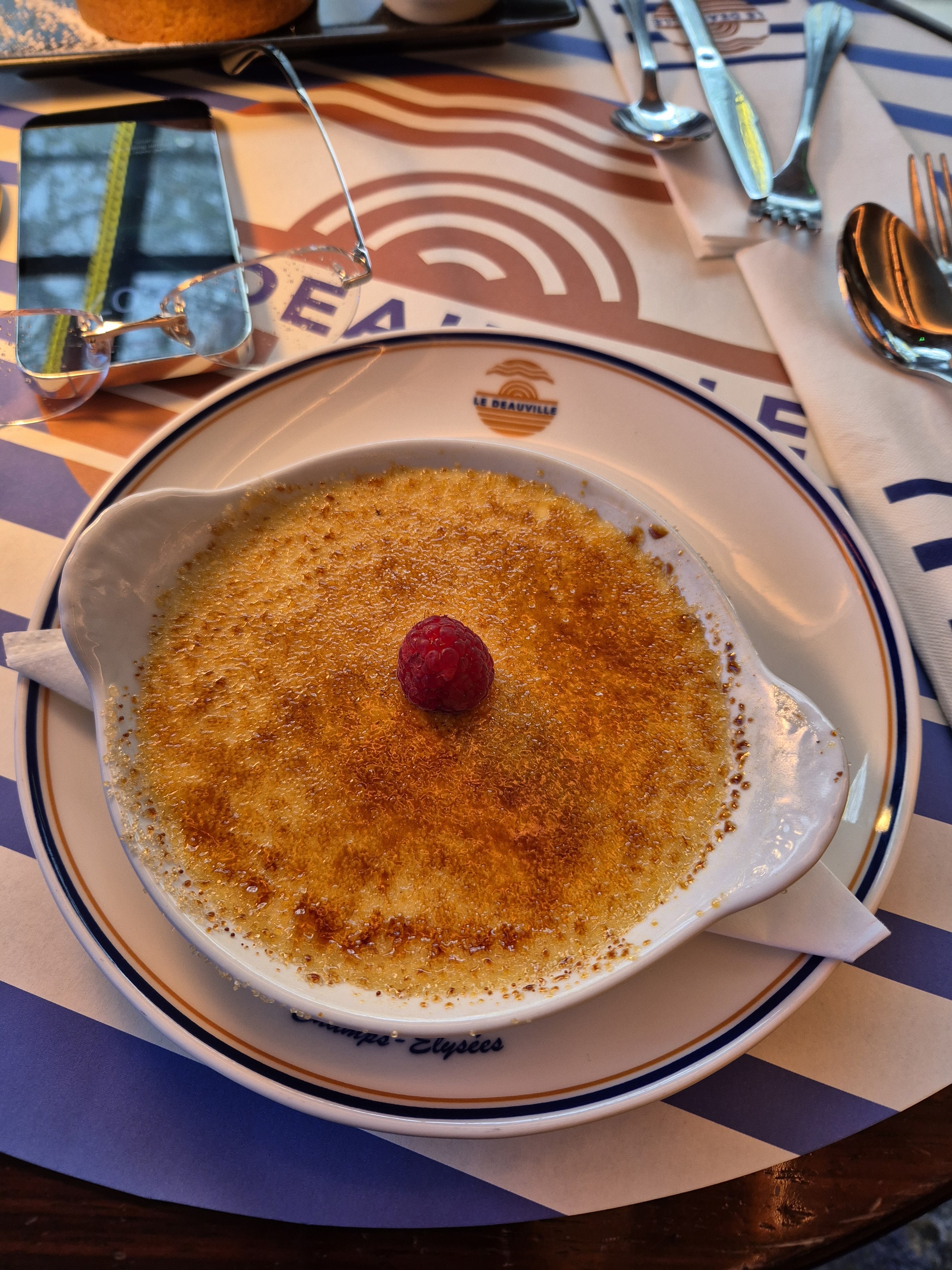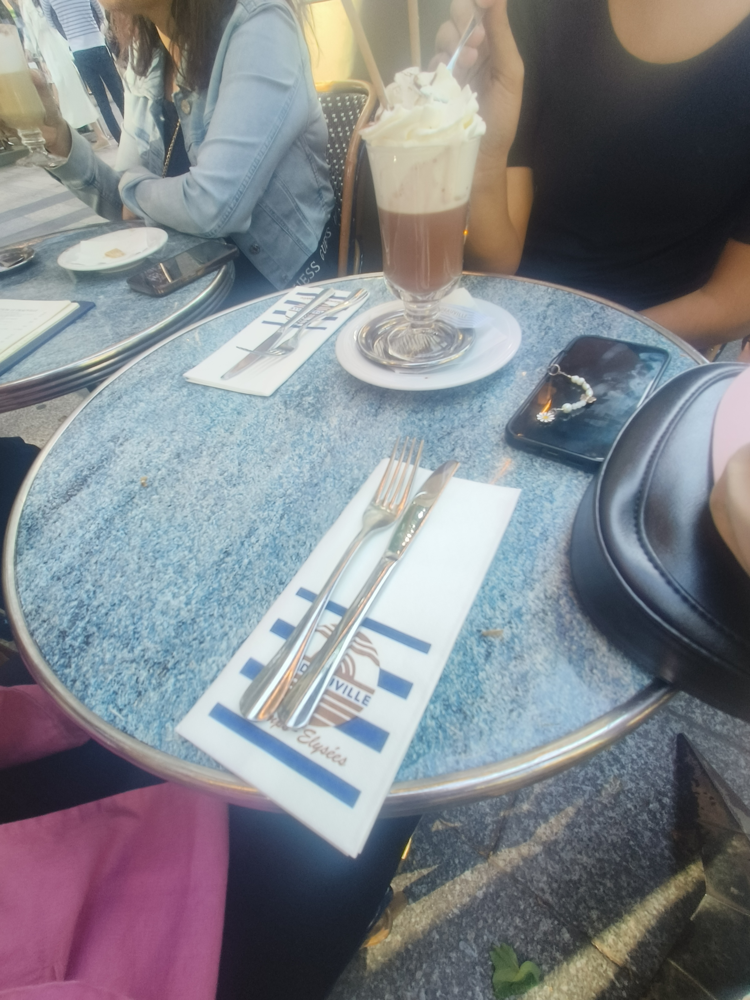 C'était génial en plein milieu des Champs Elysées. Un bon endroit pour faire une pause et prendre un repas ou un verre et un dessert. Une des meilleures crème brûlée que j'ai eu depuis un moment. Il est recommandé de s'asseoir en ville.